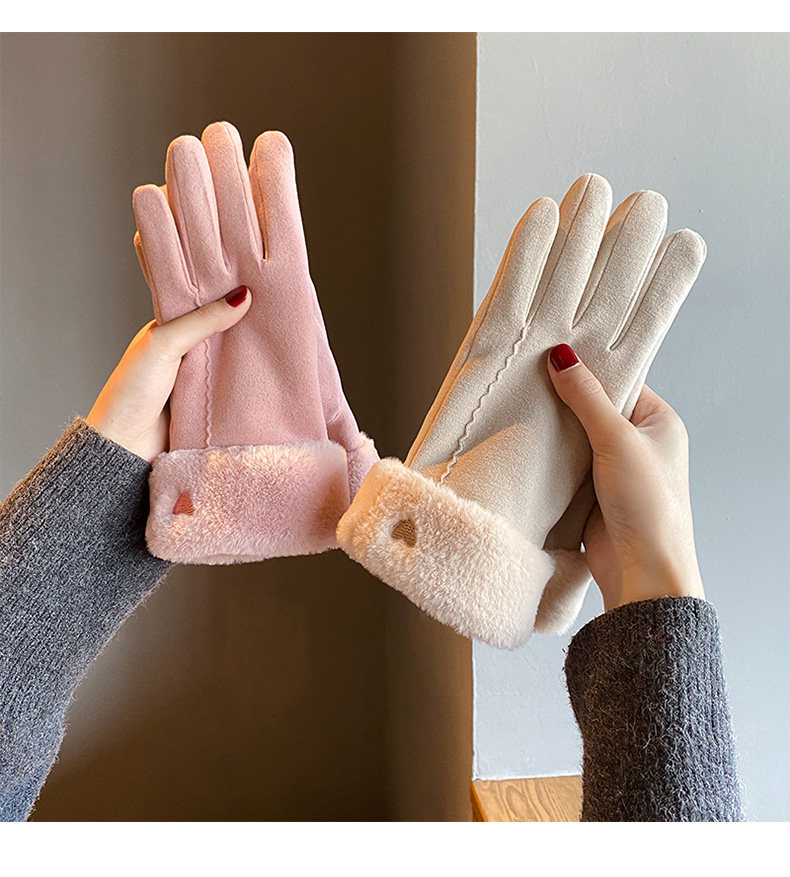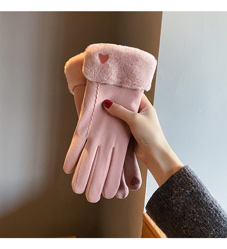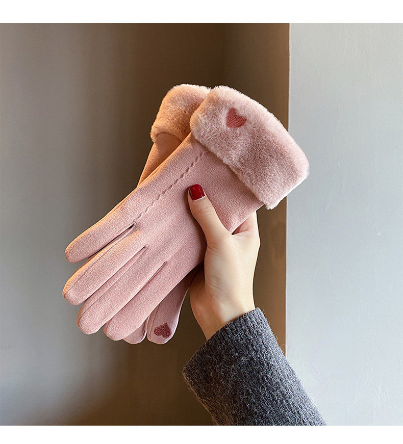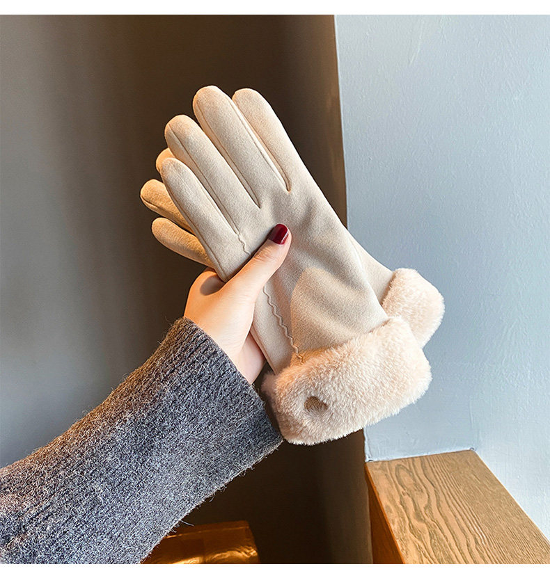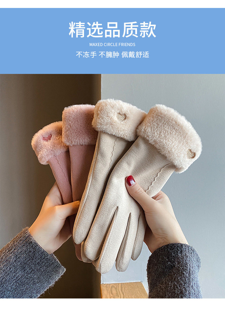 Handschuhe für Damen im Winter, mit Samt verdickt, warm, süß, Wildleder, modisch, Touchscreen, winddicht, Elektrofahrzeug, Kälteschutz