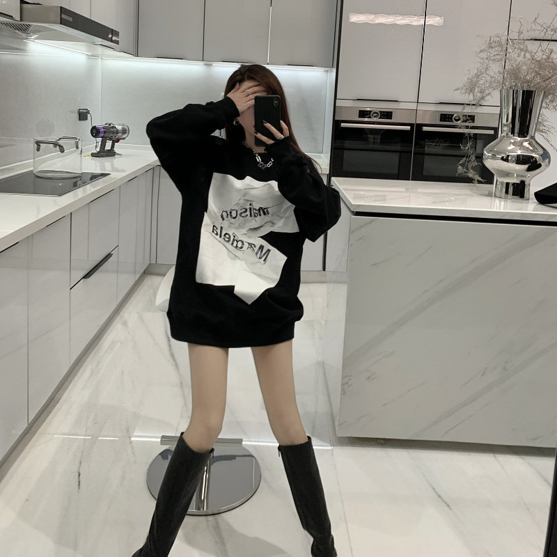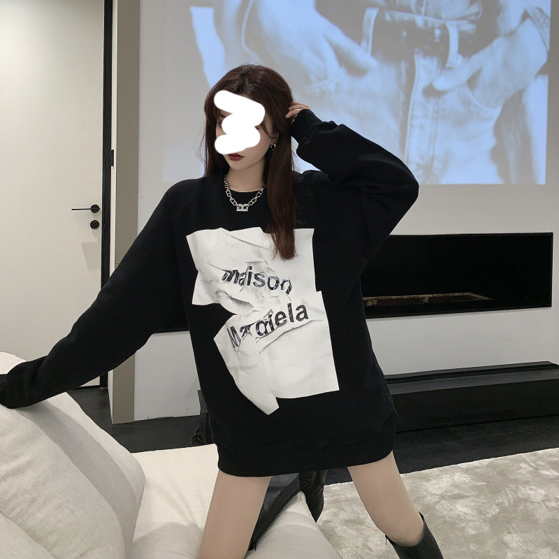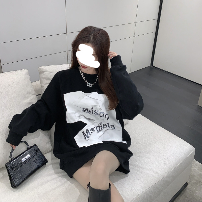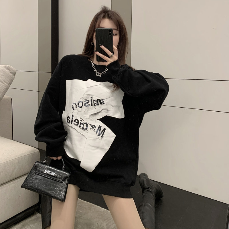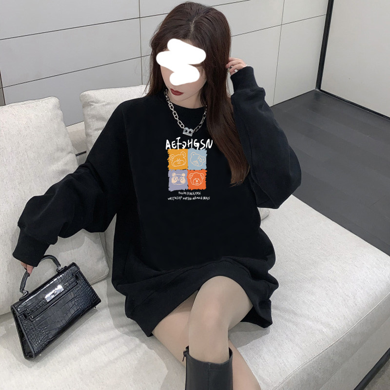Ins super hot sweatshirt women's autumn and winter oversize round neck student jacket Korean style loose mid-length lazy top