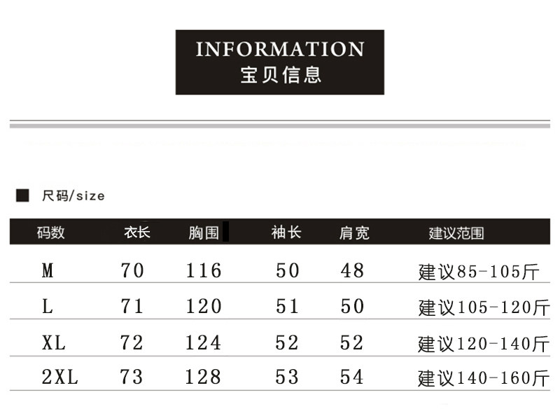 China (cm) 165 / 88-90 170 / 96-98 175 / 108-110 180 / 118-122 185 / 126-130