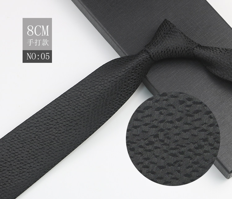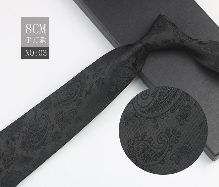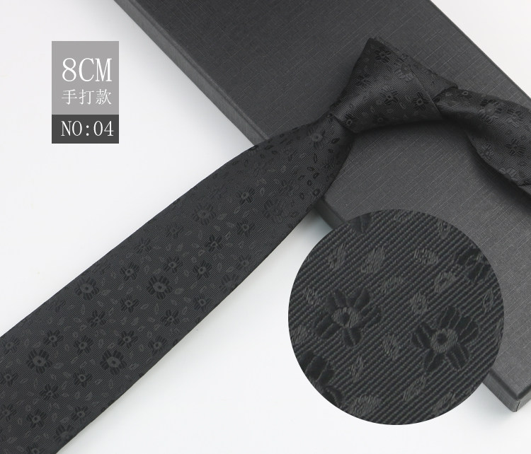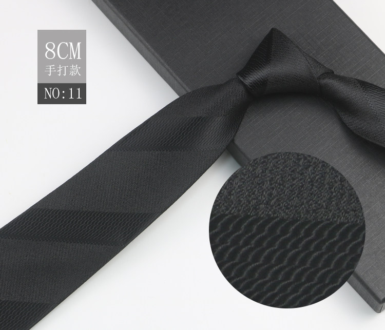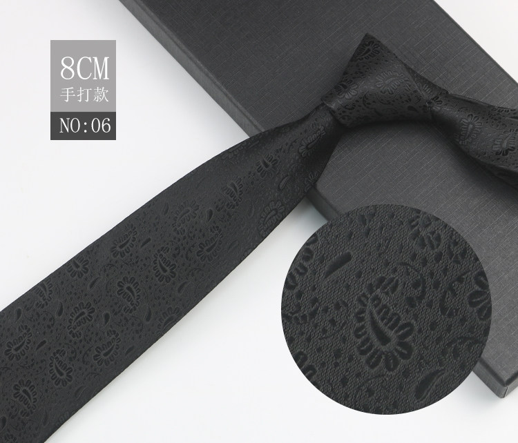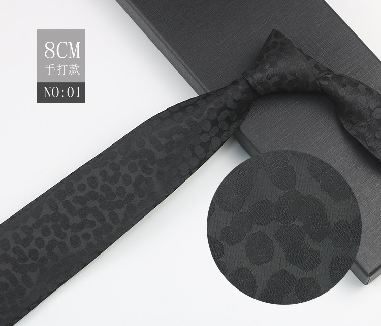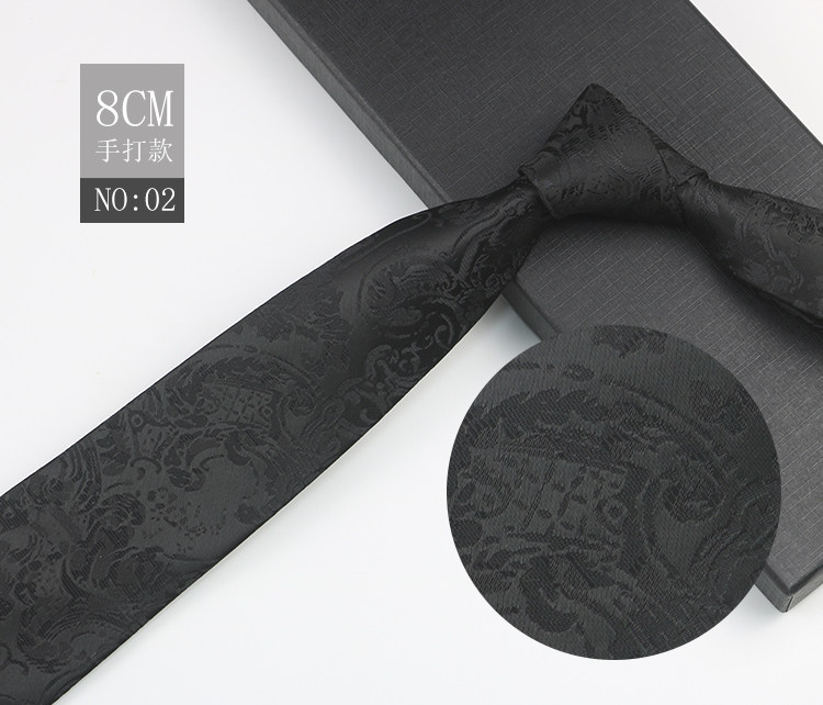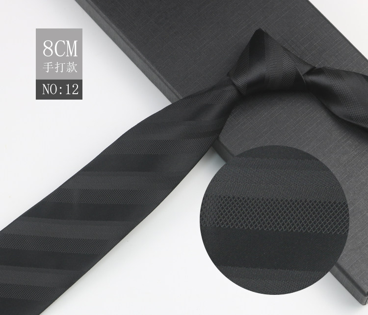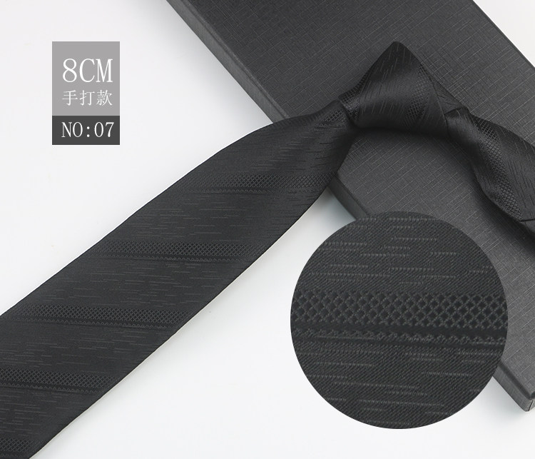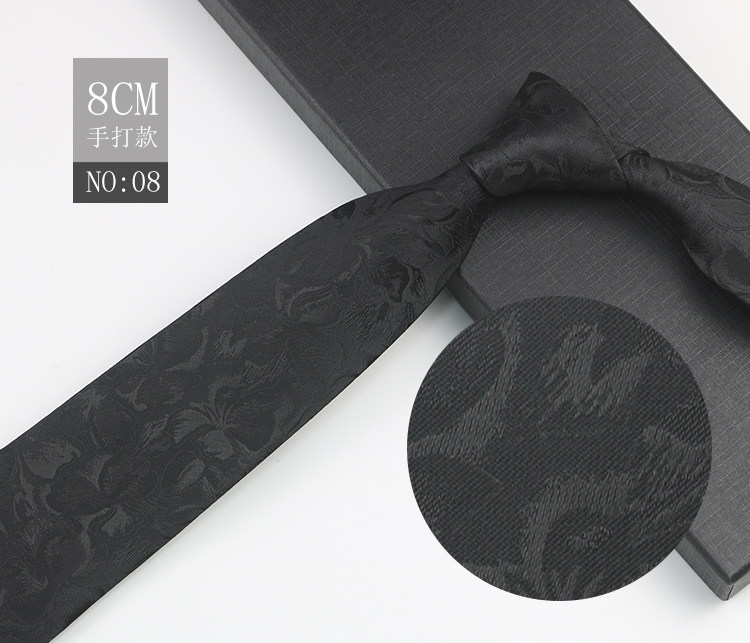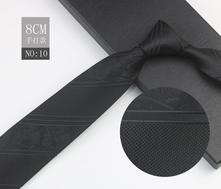 Black patterned tie for men, business gentleman shirt, professional formal wear, high-end jacquard 8cm striped hand-tied tie