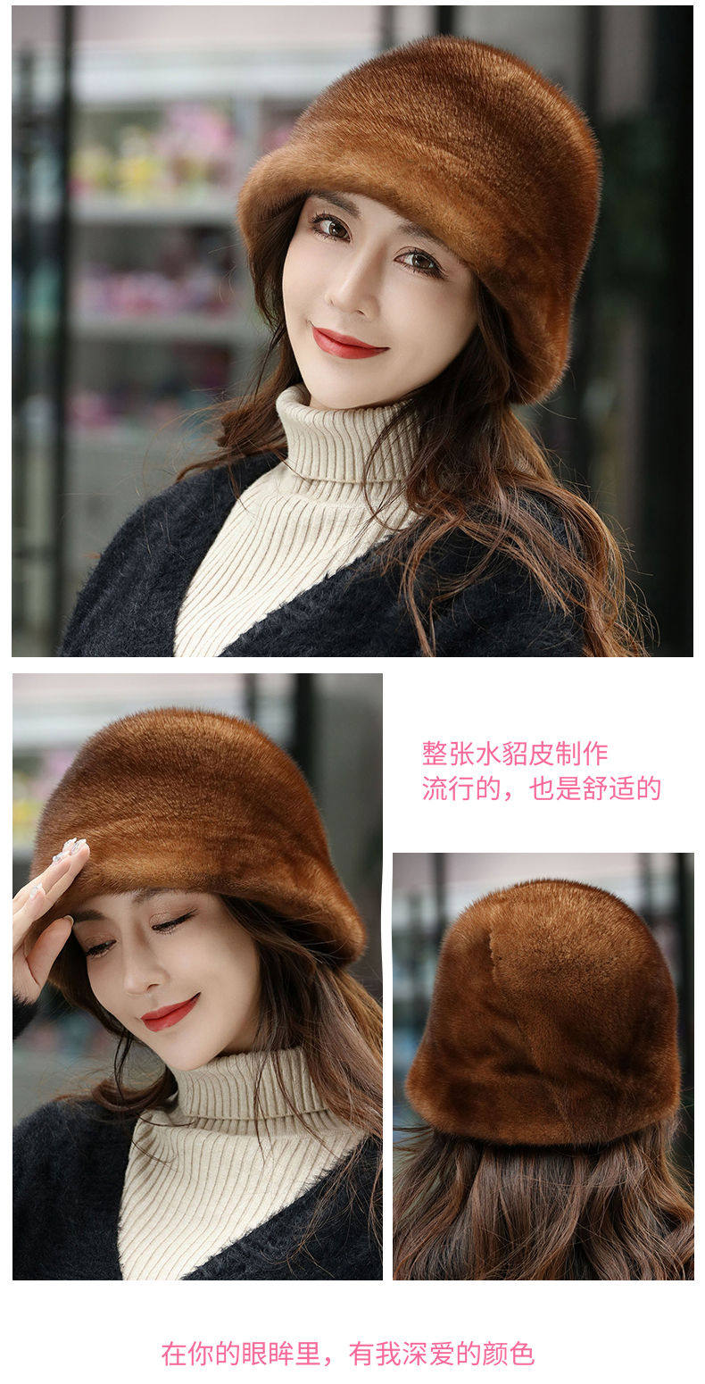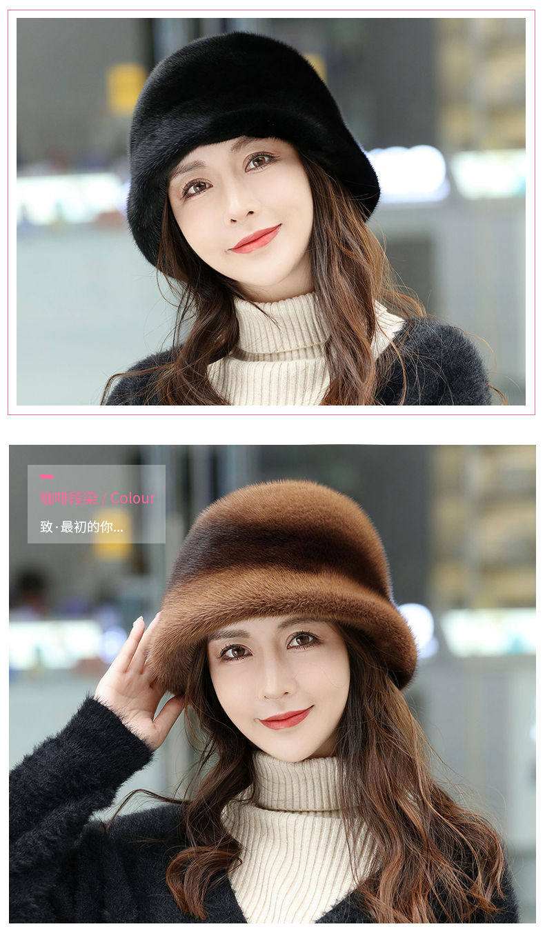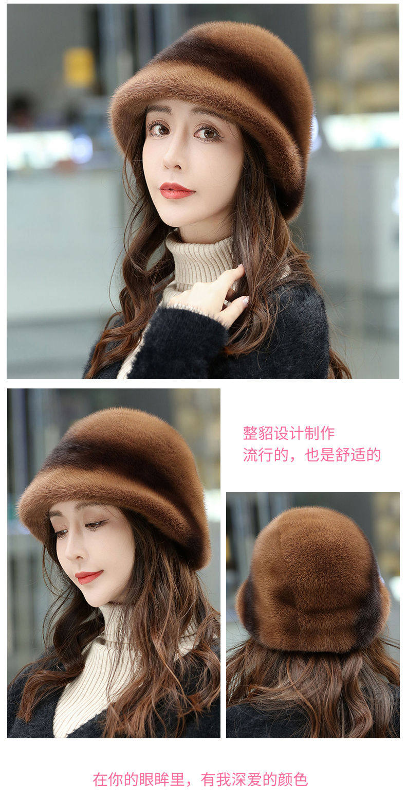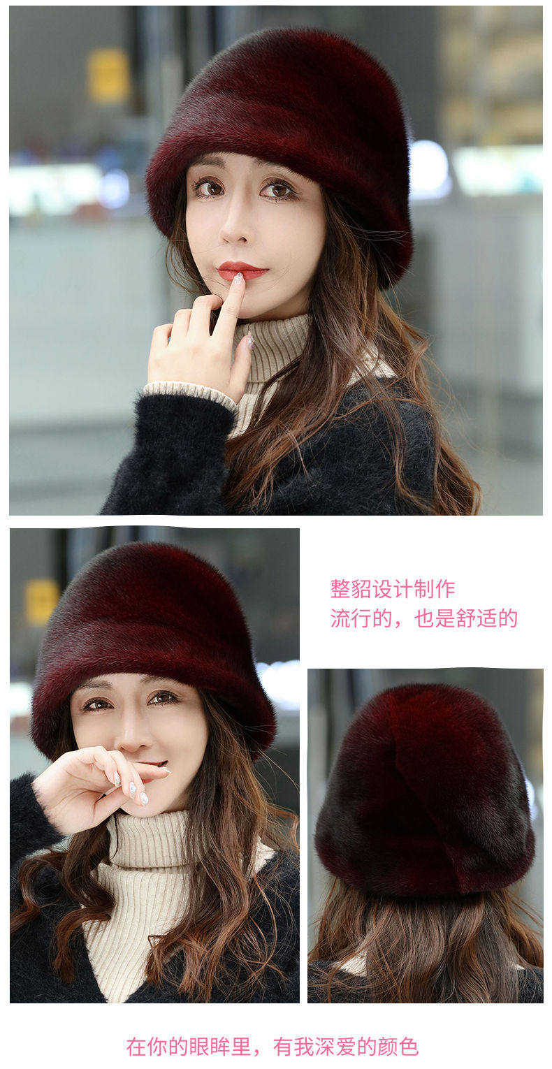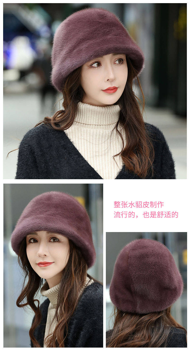 Mink Fur Hat for Women in Winter, Middle-Aged and Elderly, Full Mink Fur Ear Protection, Warm and Fashionable Mink Velvet Mother's Fur Cotton Hat