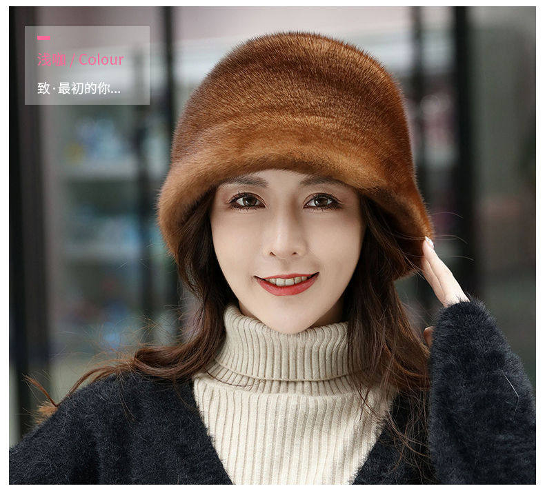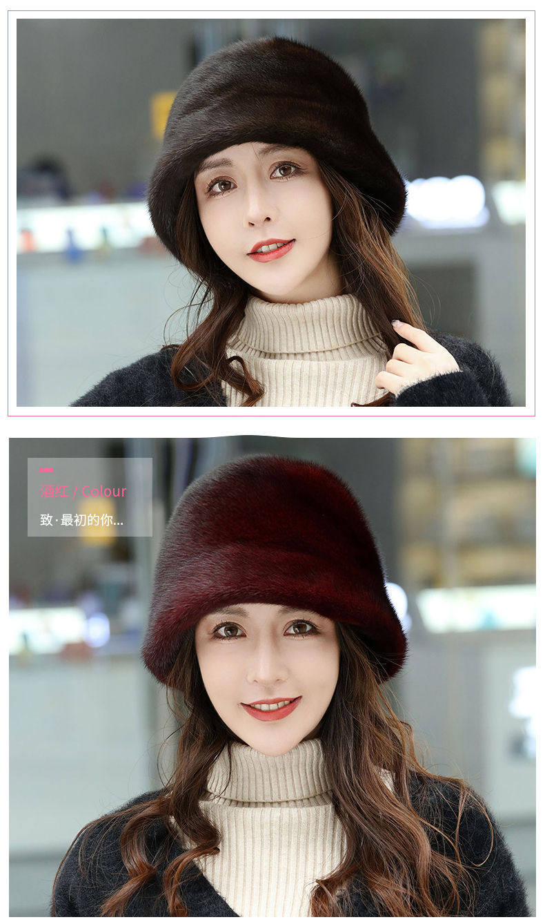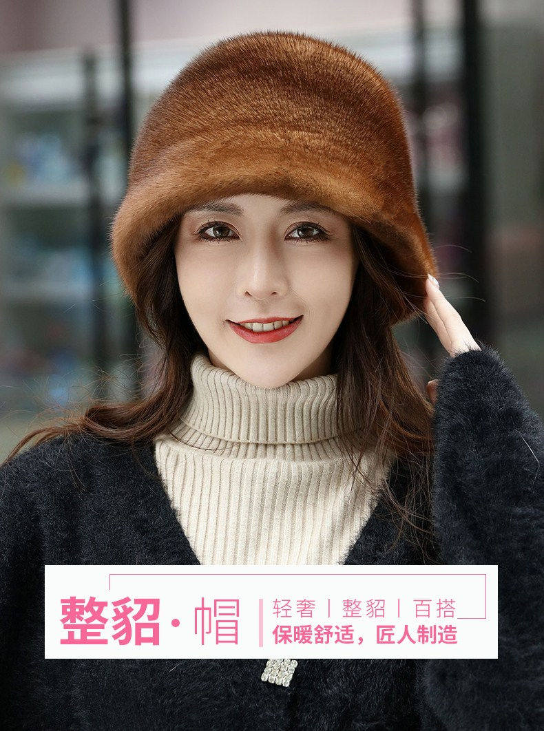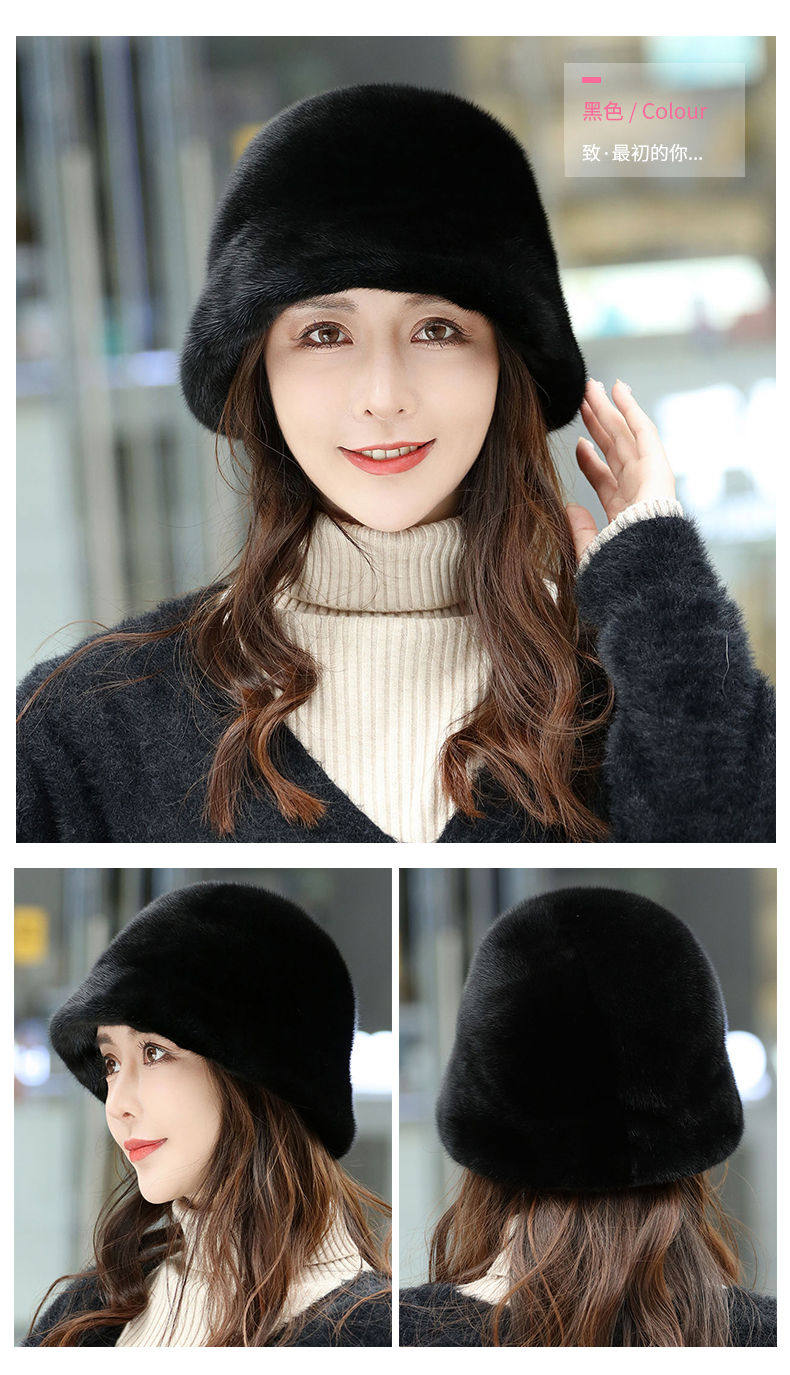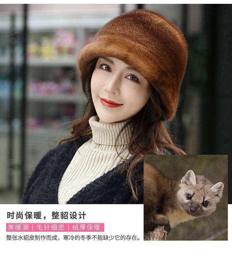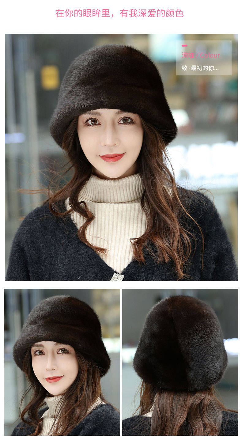 Mink Fur Hat for Women in Winter, Middle-Aged and Elderly, Full Mink Fur Ear Protection, Warm and Fashionable Mink Velvet Mother's Fur Cotton Hat