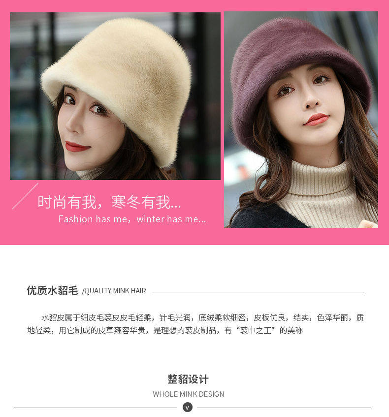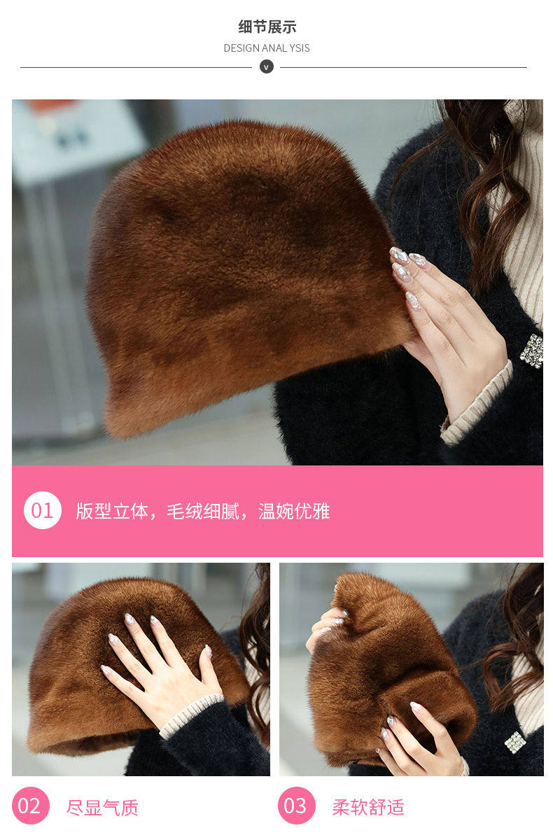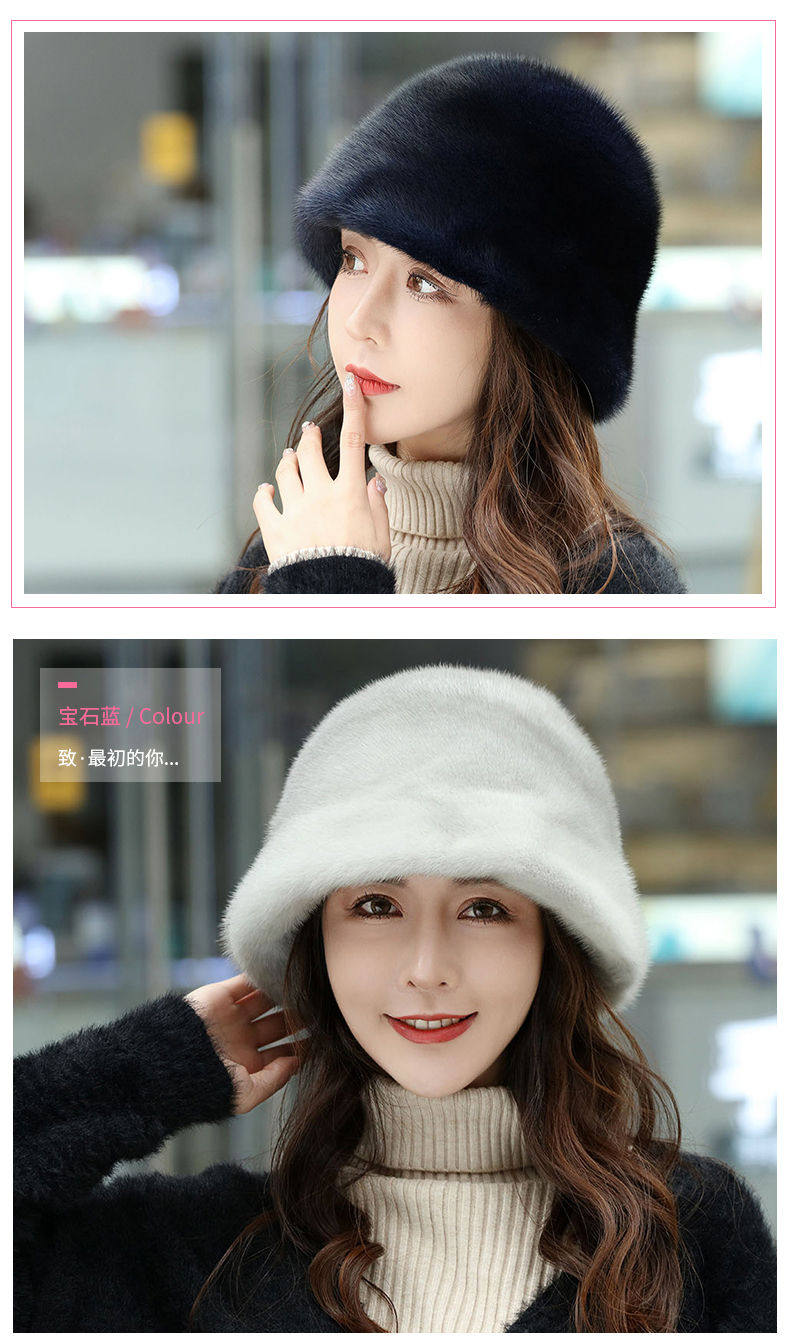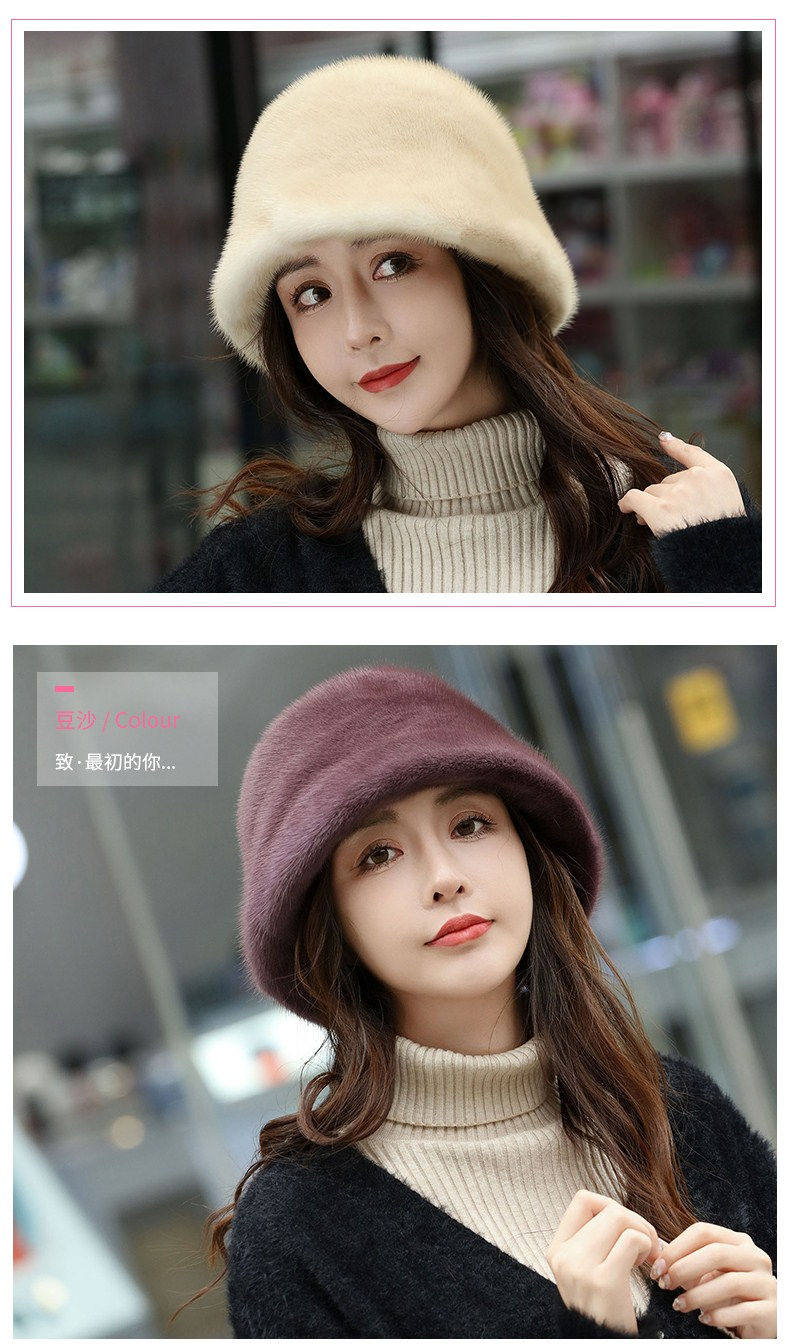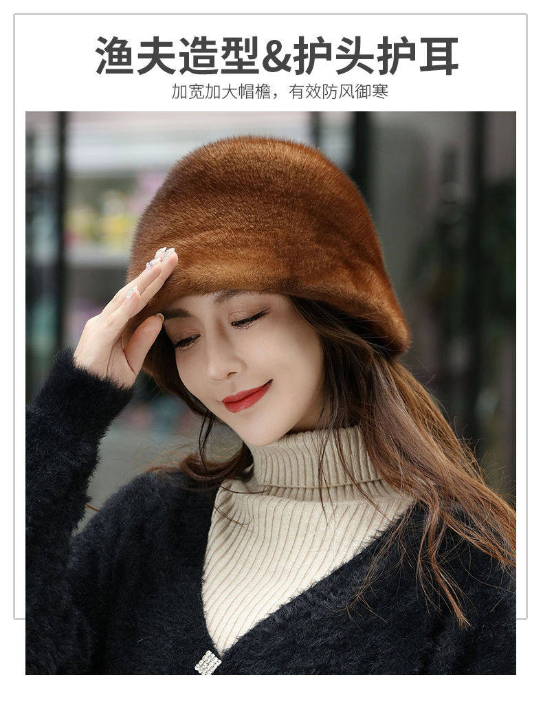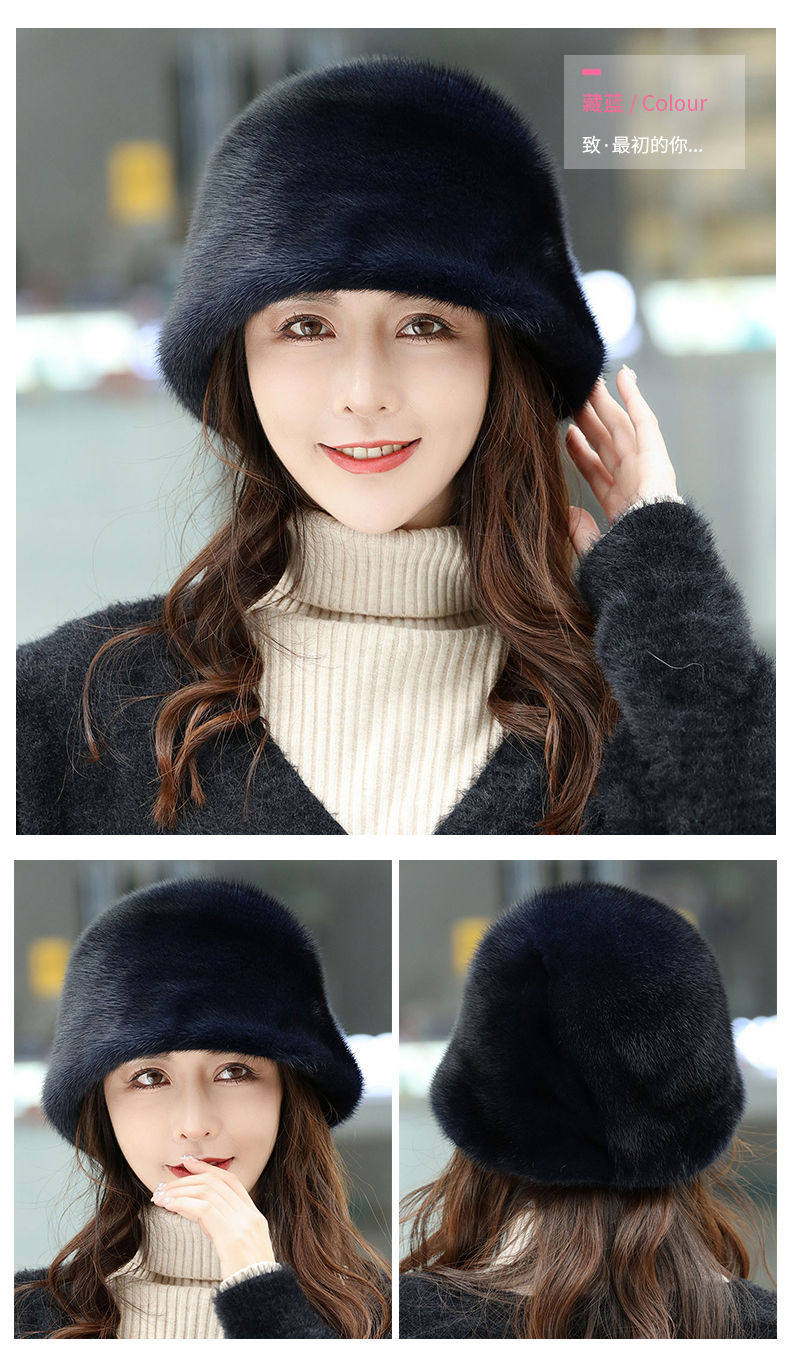 Mink Fur Hat for Women in Winter, Middle-Aged and Elderly, Full Mink Fur Ear Protection, Warm and Fashionable Mink Velvet Mother's Fur Cotton Hat