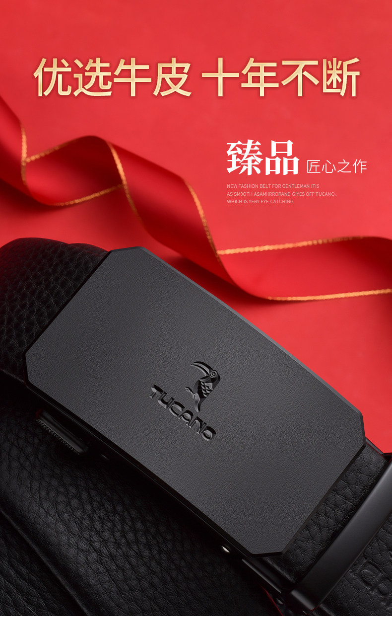 Woodpecker Men's Belt Cowhide Middle-aged Youth Belt Automatic Buckle Genuine Leather Business Casual Men's Pants Belt Genuine