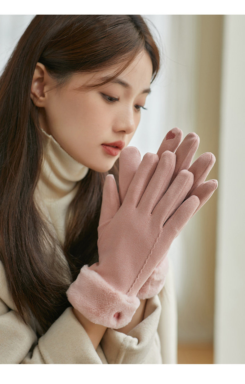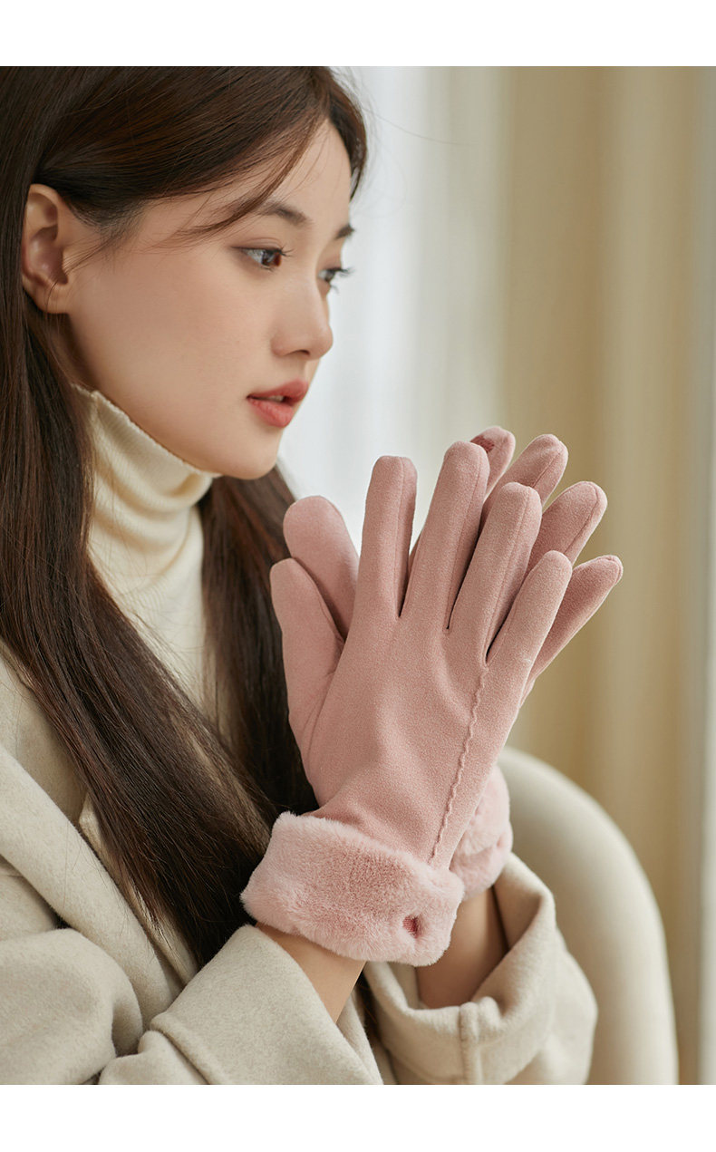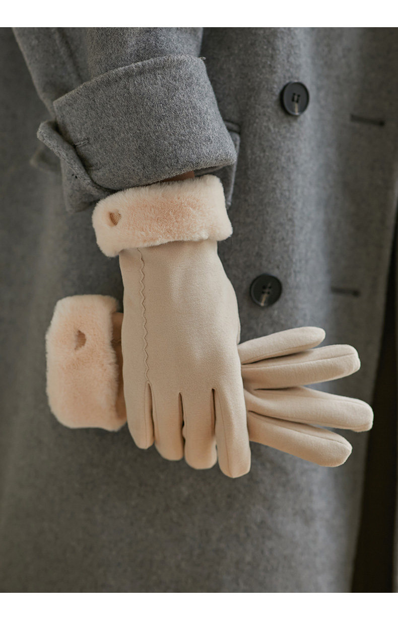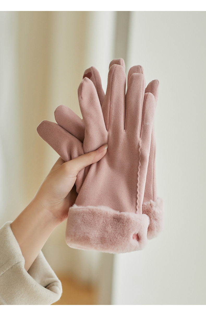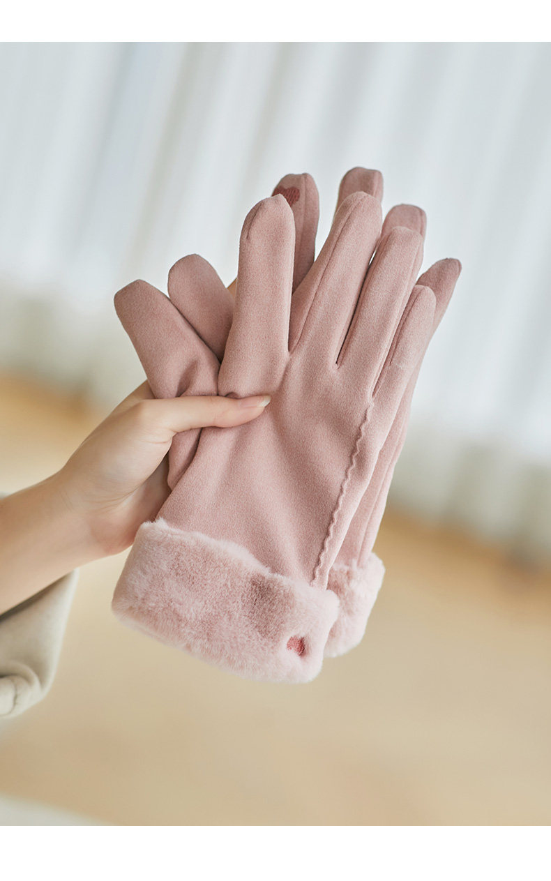 Coso Fleece-Lined Thick Gloves for Women in Winter ins Cute Warm Anti-Cold Touchscreen Gloves for Cycling Students in Autumn and Winter