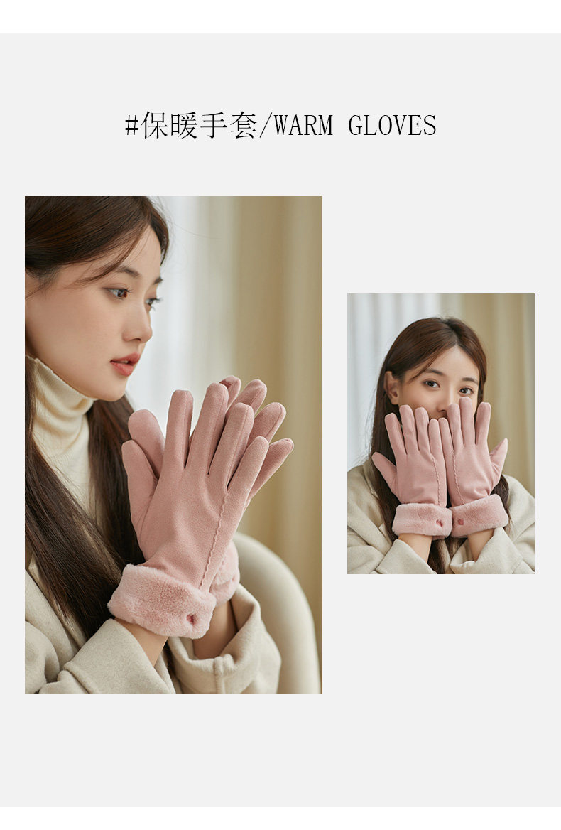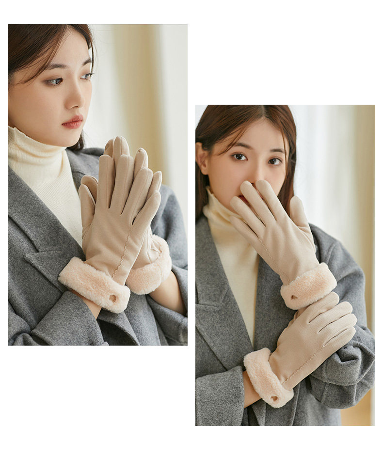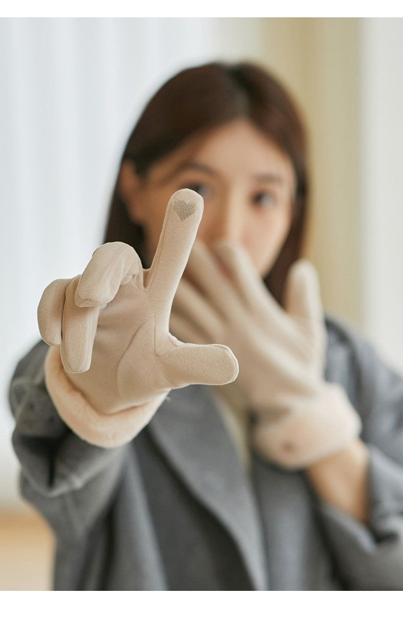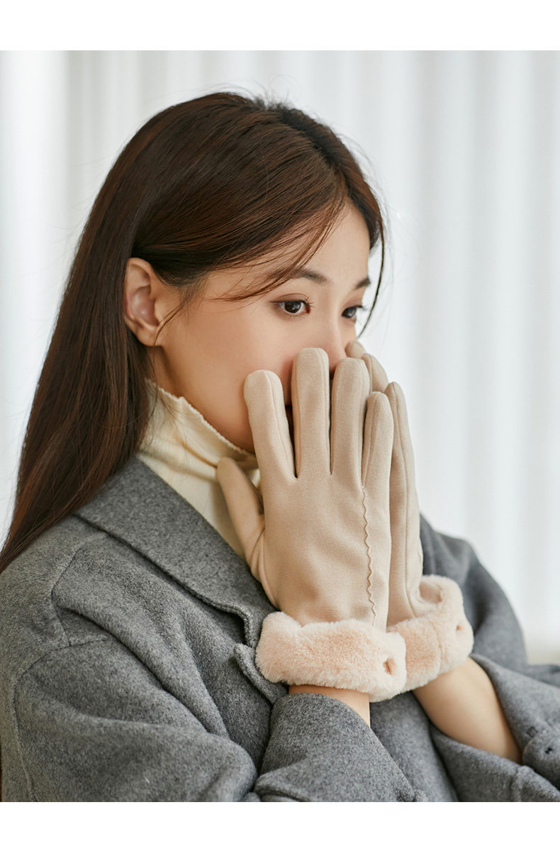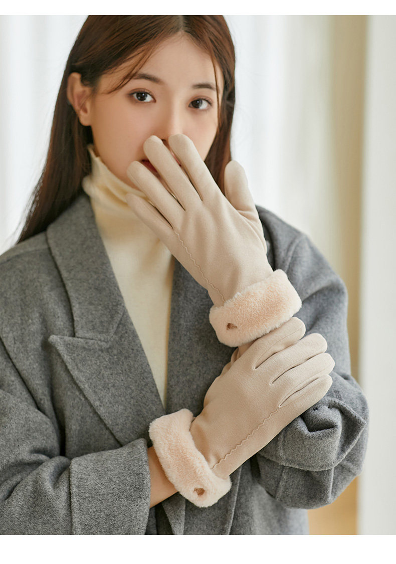 Coso Fleece-Lined Thick Gloves for Women in Winter ins Cute Warm Anti-Cold Touchscreen Gloves for Cycling Students in Autumn and Winter