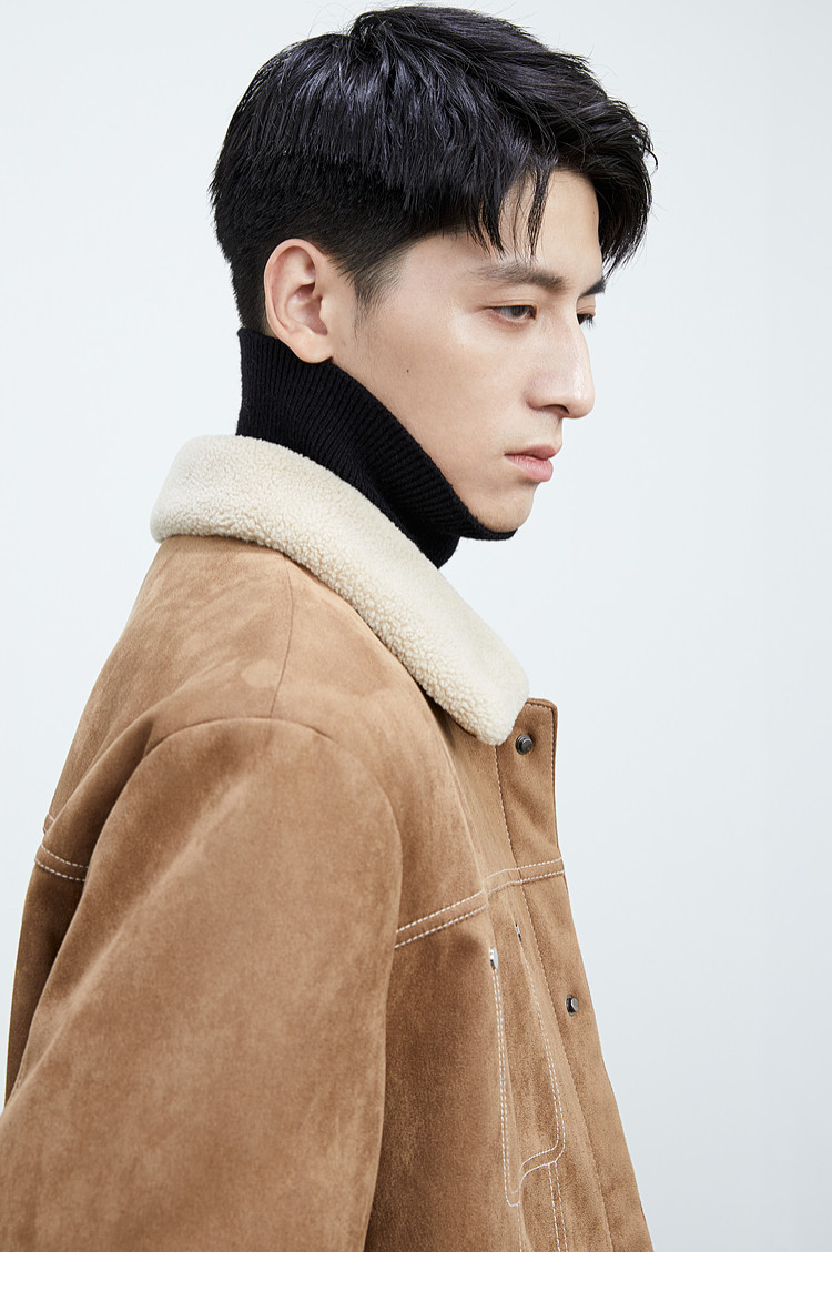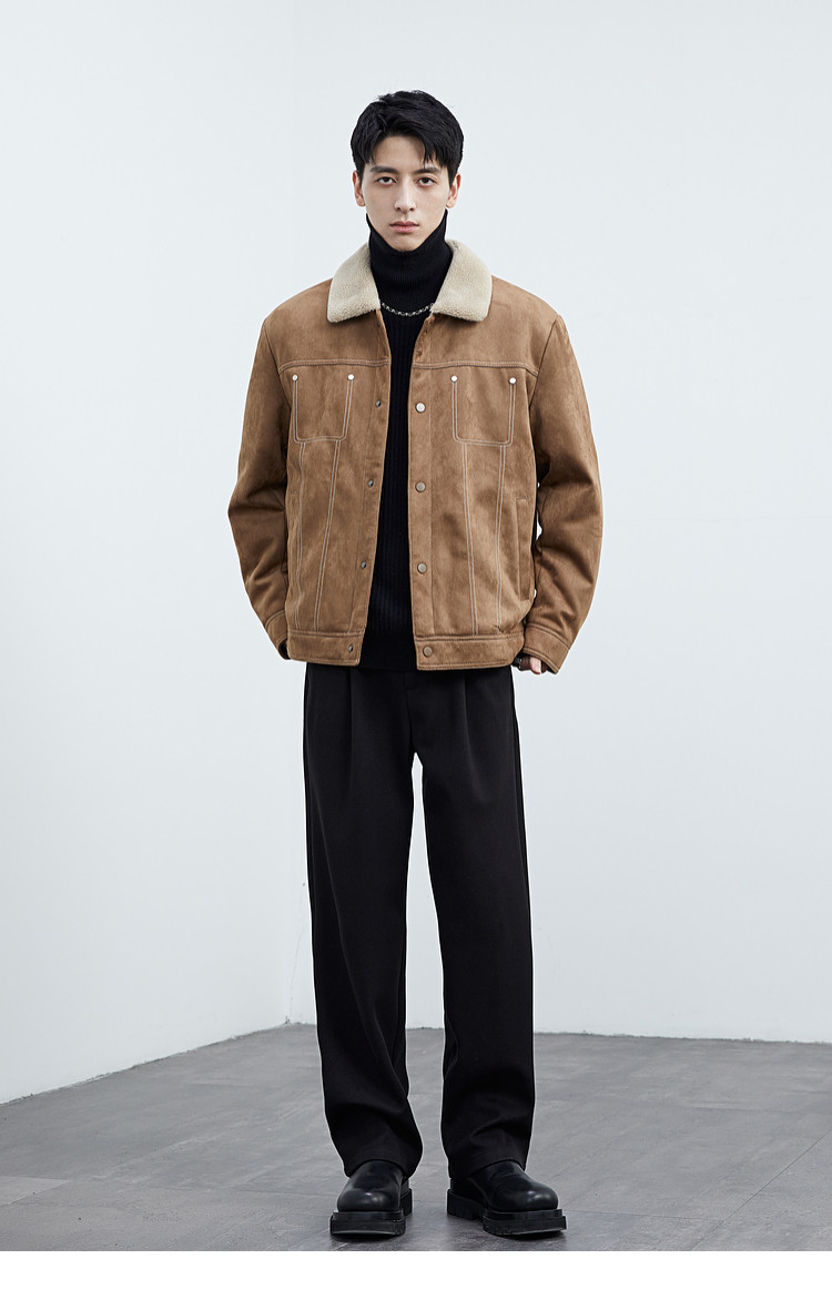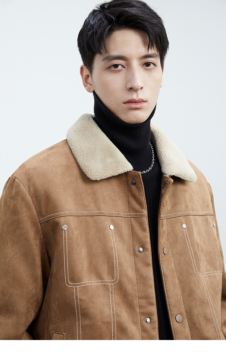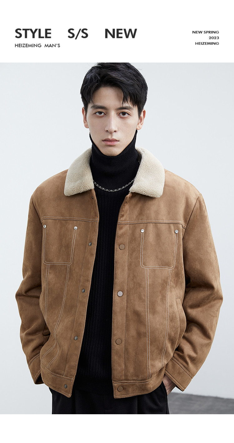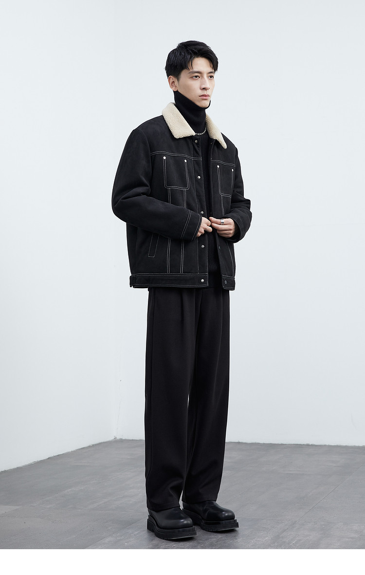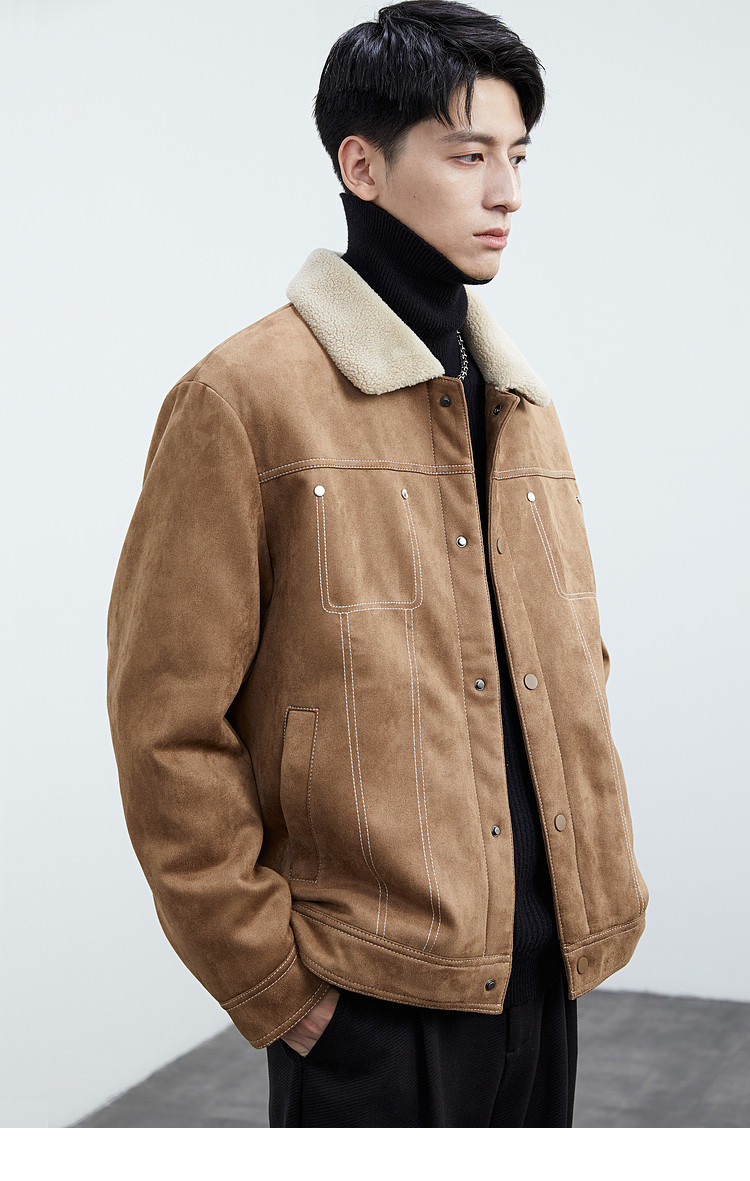 Black Zeming Men's Faux Suede Short Jacket Winter Commuting Loose Casual Thickened Cotton Jacket