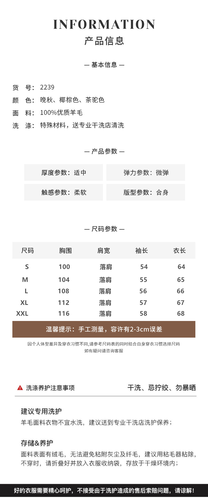 Color Classification Black,Coconut Brown,Oatmeal,Late Autumn Camel,Tea Camel Color