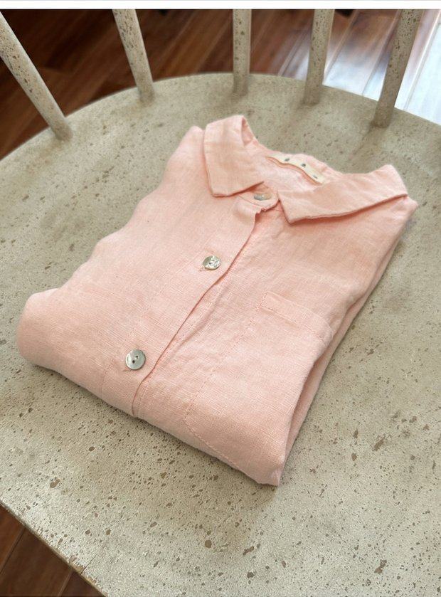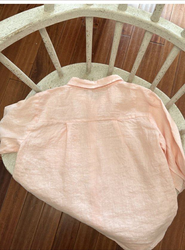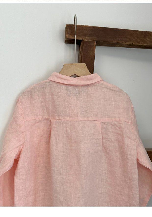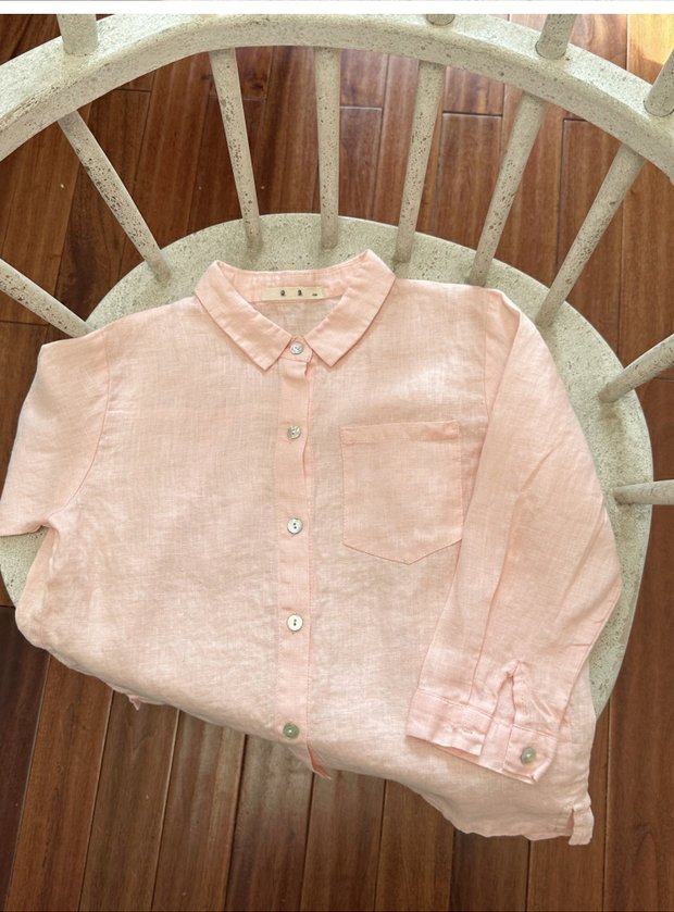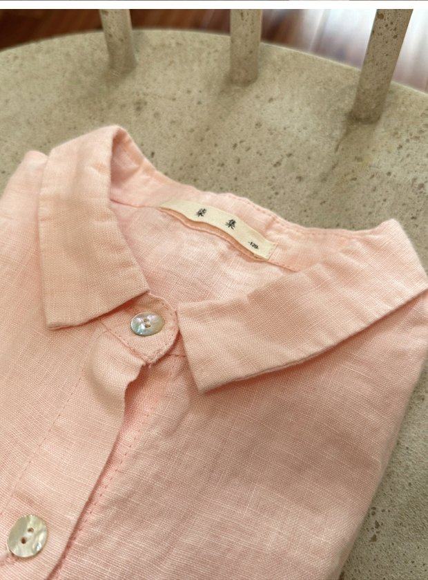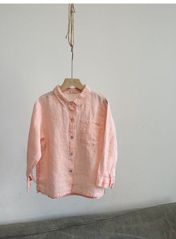 Qiji spring and autumn new children's clothing medium and large children's linen casual long-sleeved shirts girls Japanese pink shirts parent-child
