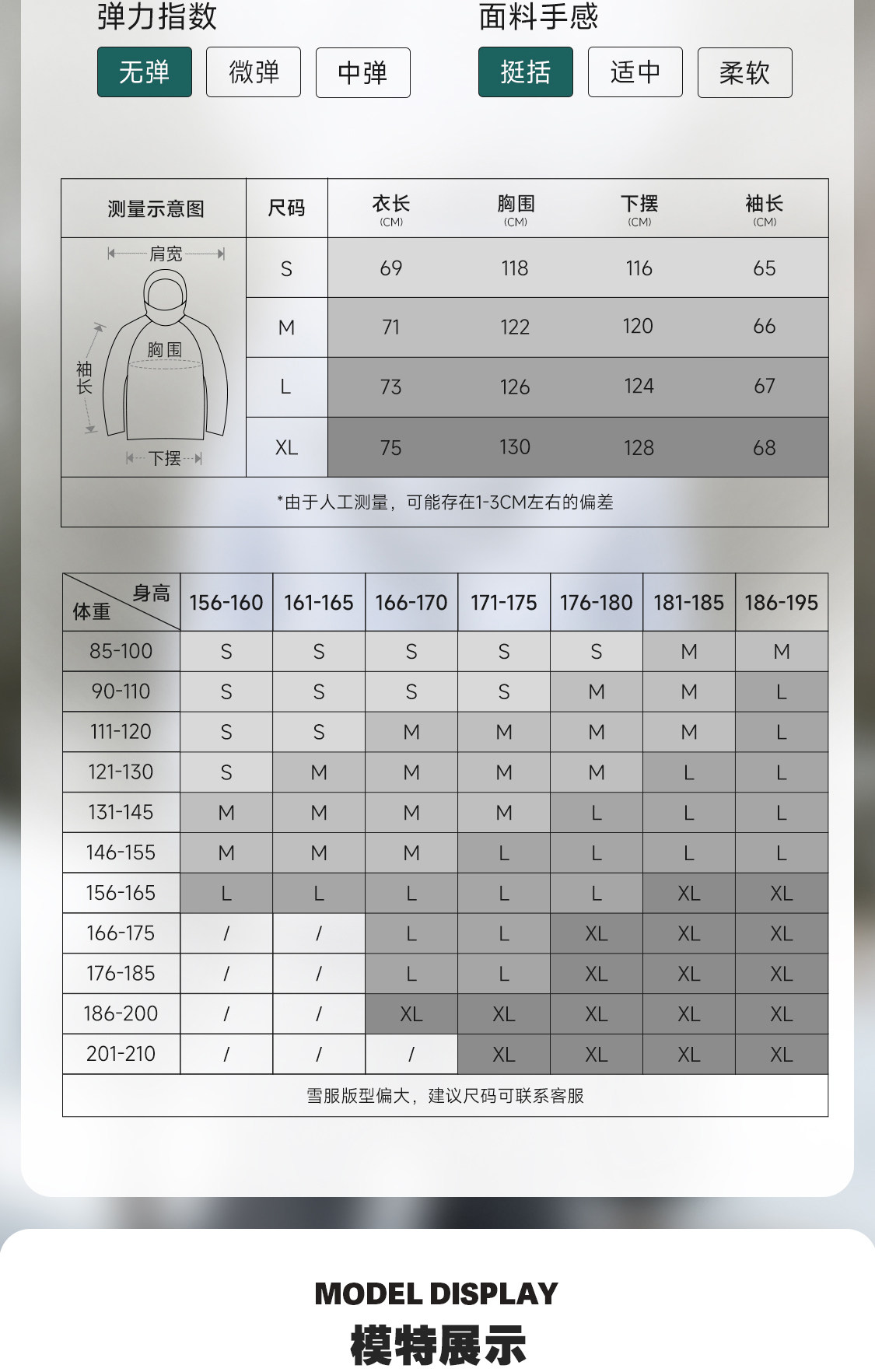 China (cm) 160-165/84-86 165-170 / 88-90 167-172 / 92-96 168-173 / 98-102 170-176 / 106-110