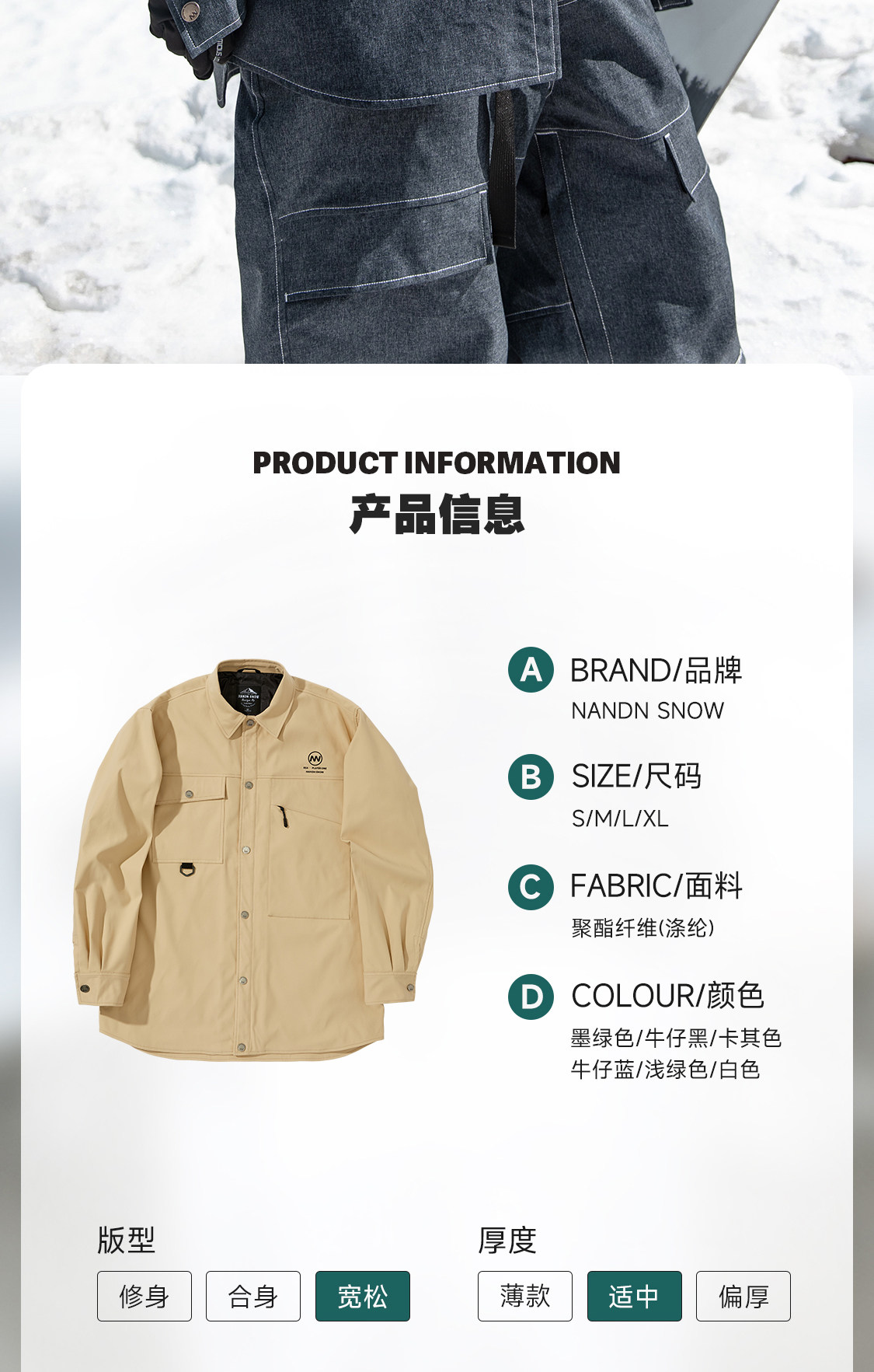 Nandn Ski Clothing for Men and Women, Single Board and Double Board Outdoor Waterproof New Ski Instructor Jacket Nc418 Snow Clothing