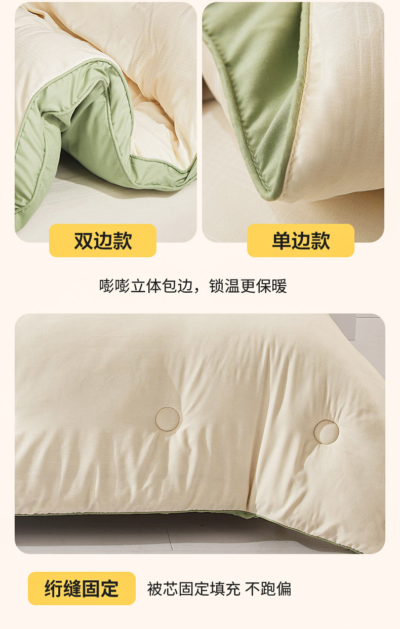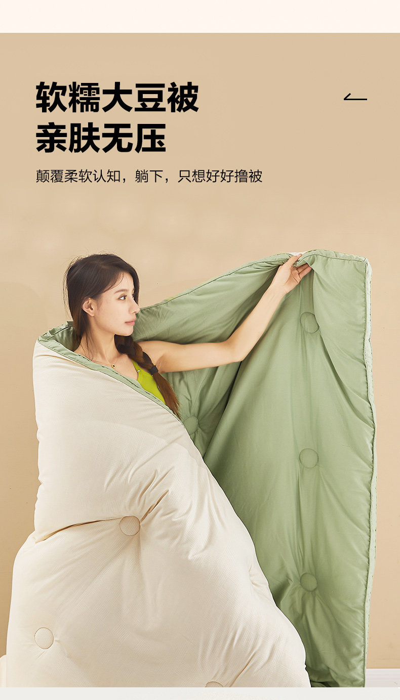 Sort by color Soy Quilt Lemon Green,Soy Quilt Camellia Coffee,Soybean Quilt Milky White,Upgraded bilateral soybean quilt Lemon Green,Upgraded bilateral soybean quilt Shanchaka,Upgraded bilateral soy quilt, milky white