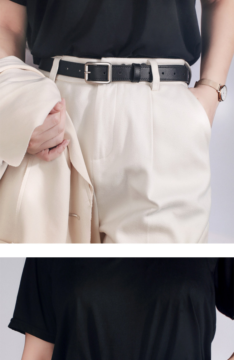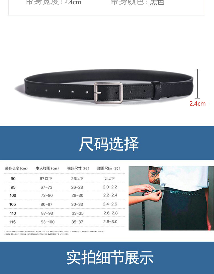 Chic Belt for Women, Genuine Leather, Black, Silver Buckle, High-End Feel, Cowhide Belt for Jeans, Women's Belt, 2025 New Model