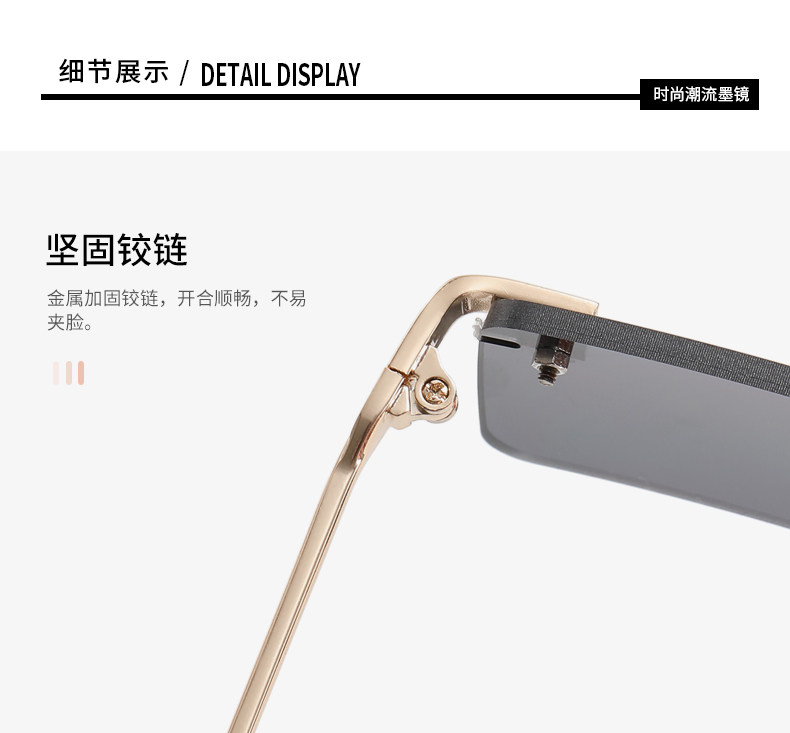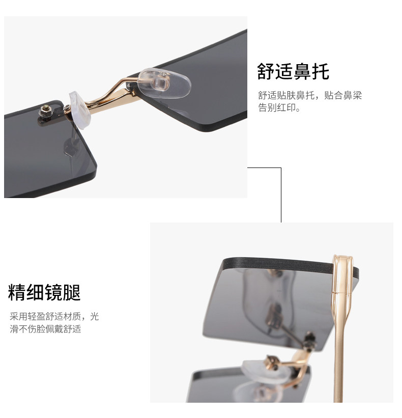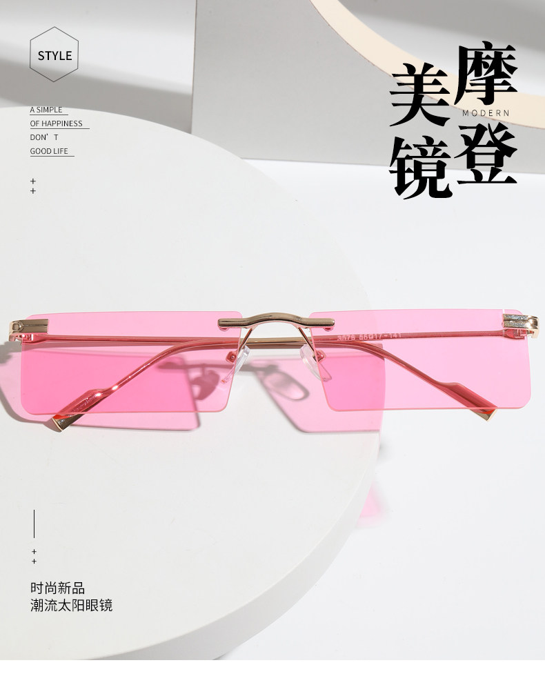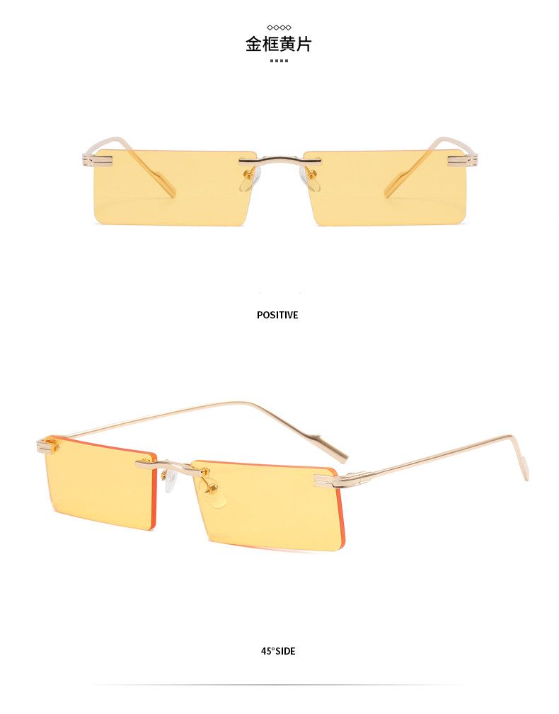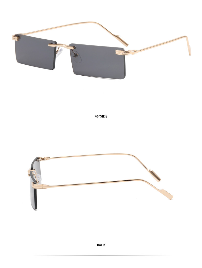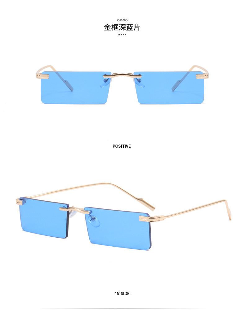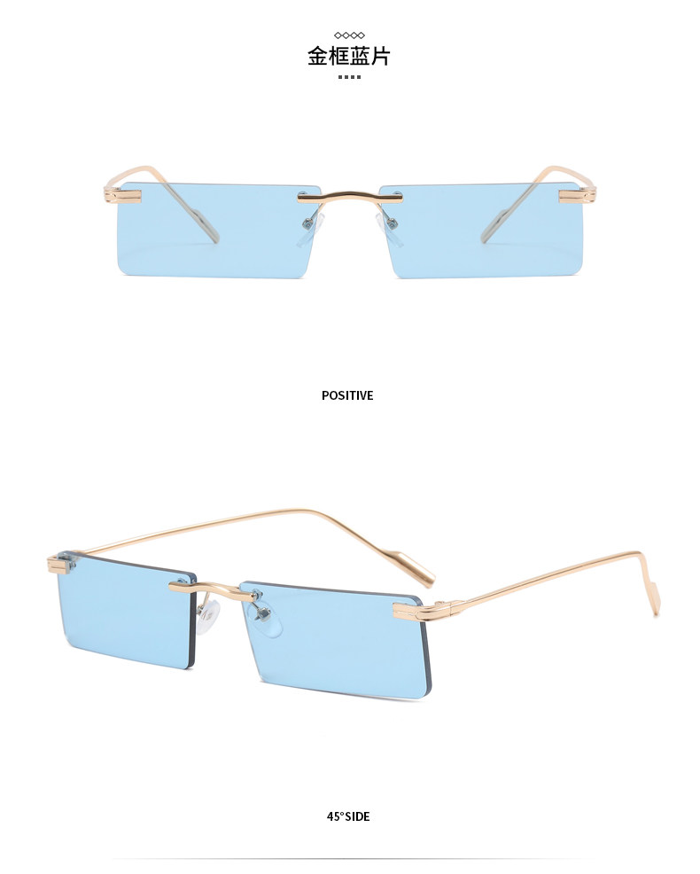 Hip-Hop Rimless Tinted Sunglasses for Women, High-End ins Blue Narrow-Frame Small Face Sunglasses, Trendy Brand for Men