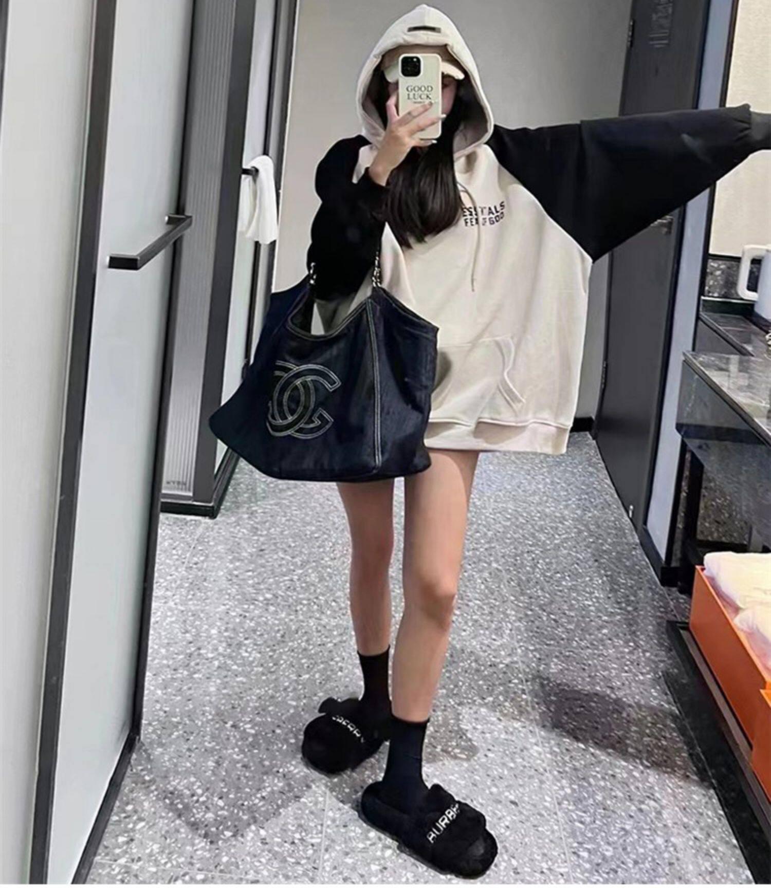 Fog Multi-Line Essentials High Street Flocked Letter Stitching on the Chest Contrasting Loose Hoodie Couple Sweatshirt