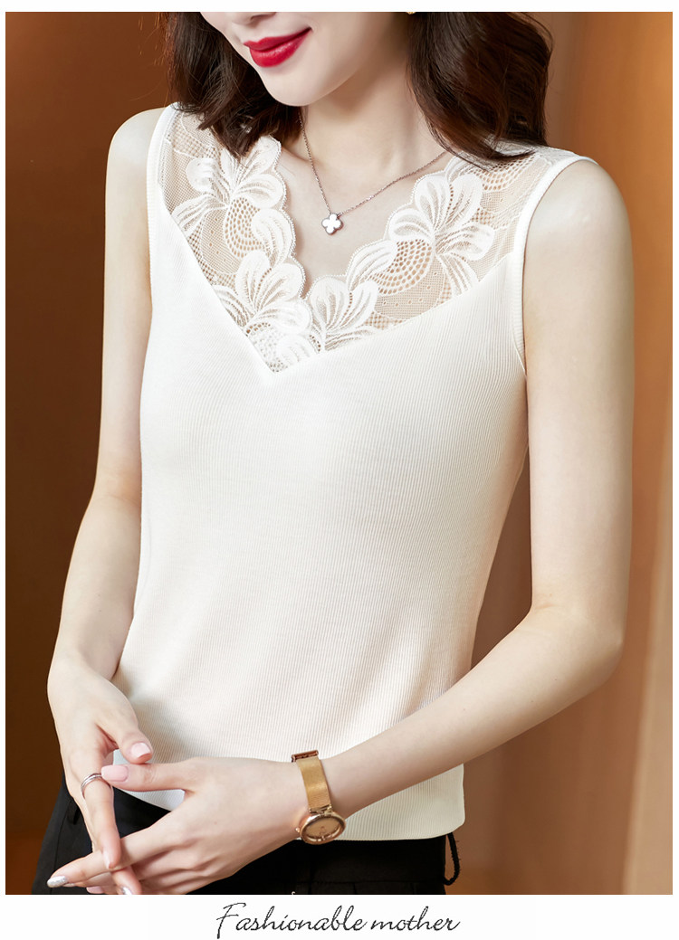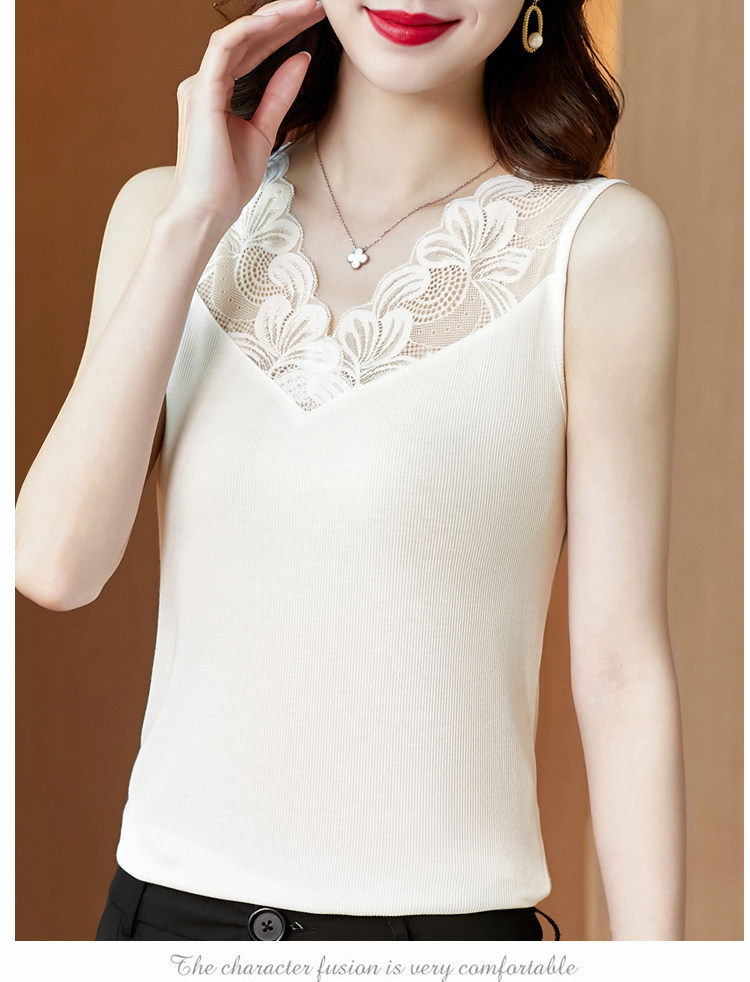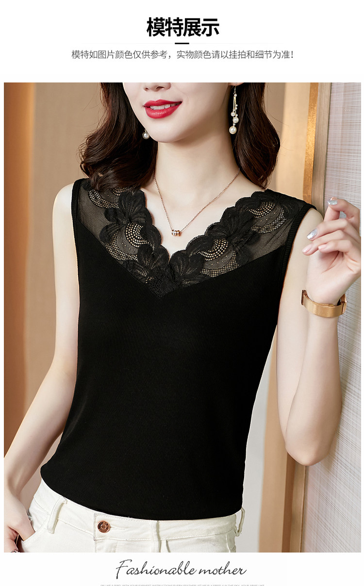 Black modal camisole women's spring and summer top with lace trim V-neck sleeveless suit bottoming shirt