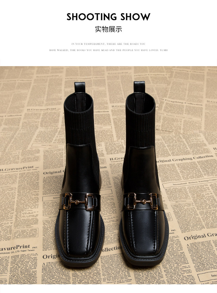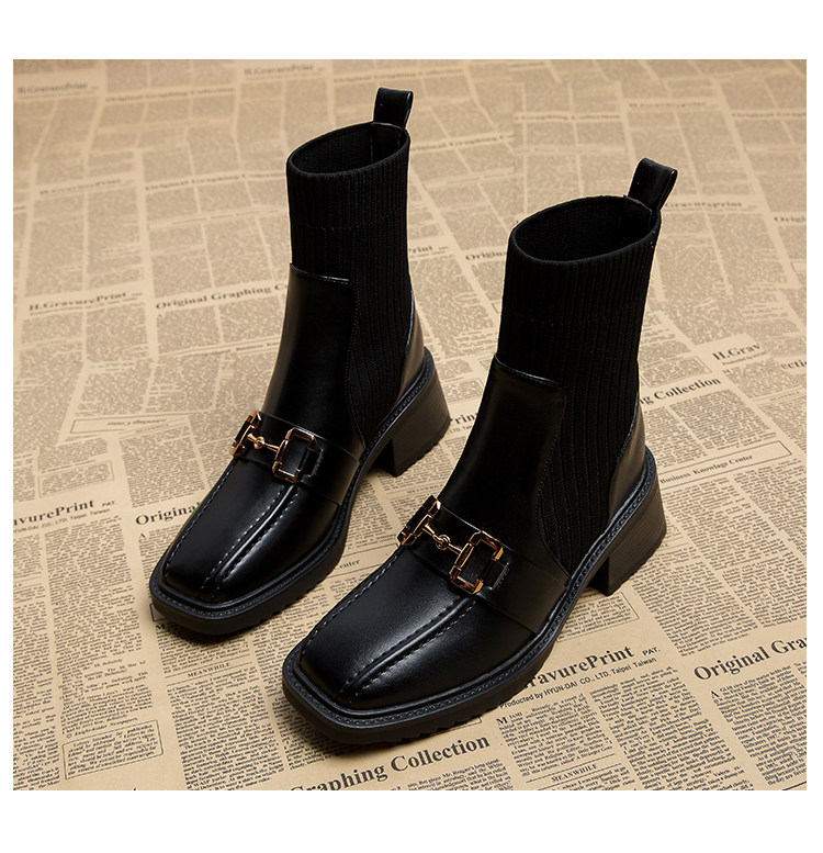 弹力瘦瘦韩系早秋短靴秋冬袜子鞋女2025春秋新款秋季英伦风马丁靴