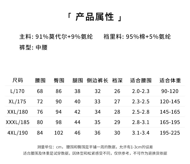Body Material Composition Modal Fiber (Modal) 91% Polyurethane Elastic Fiber (Spandex) 9%