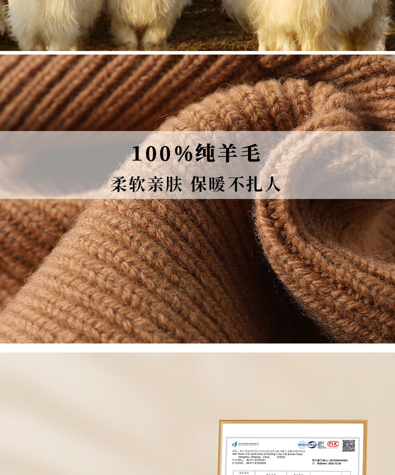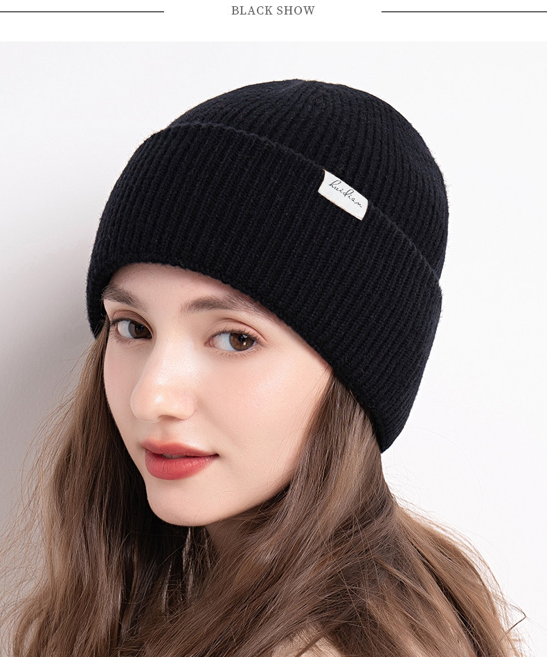 100% pure wool knitted hat for women, autumn and winter versatile large hat with cold protection, ear protection and warm woolen cap