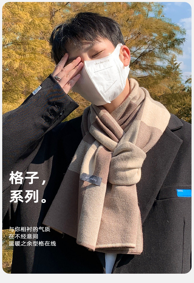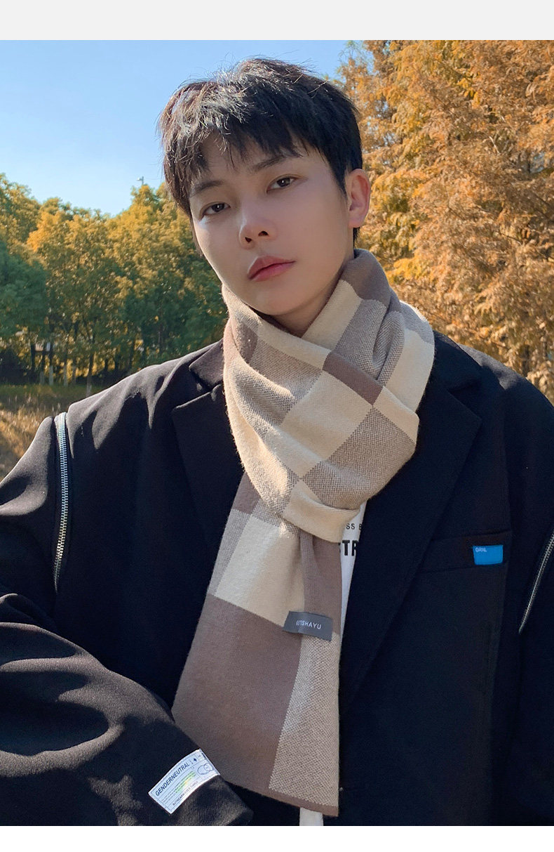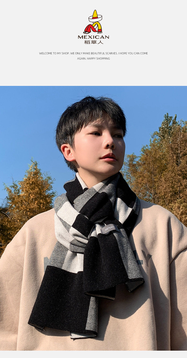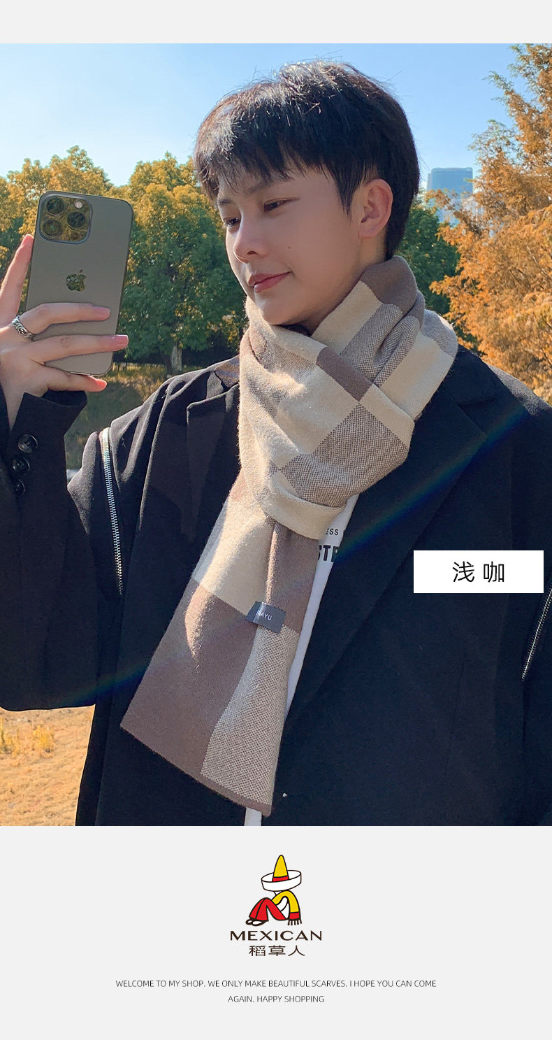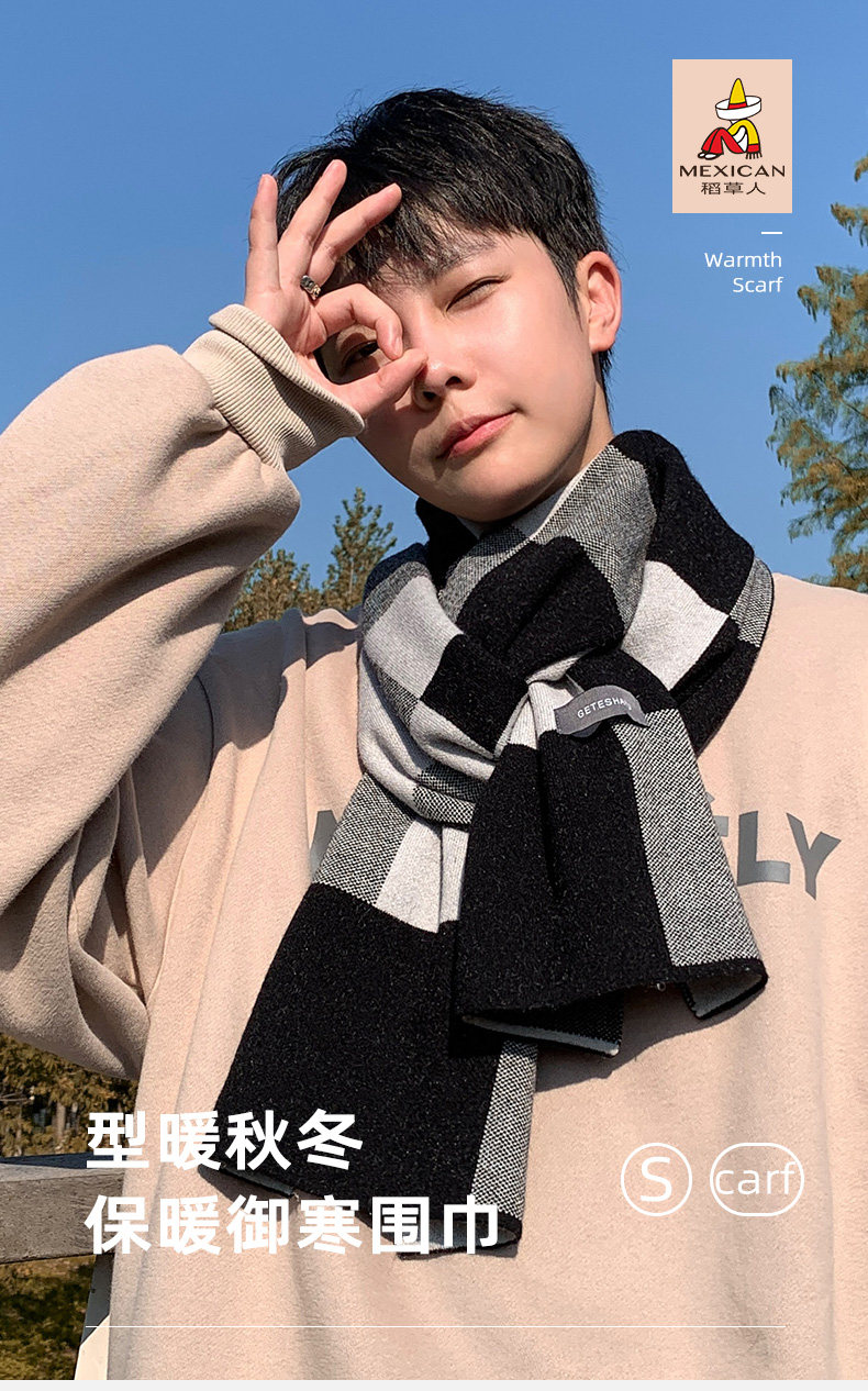 Scarecrow Scarf Men's Autumn and Winter New High-end Versatile Scarf Korean Style Fashion Casual Warm Plaid Shawl
