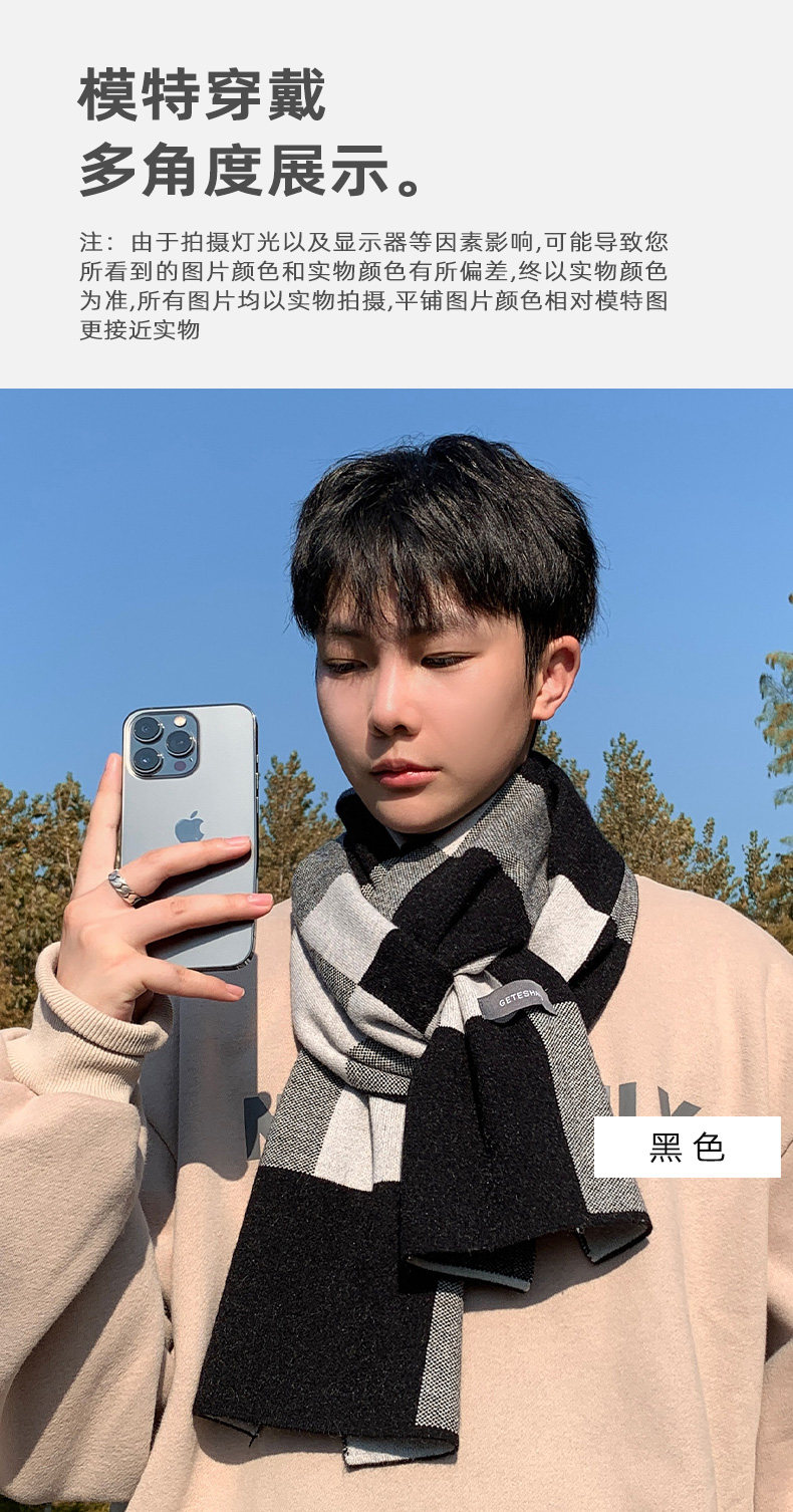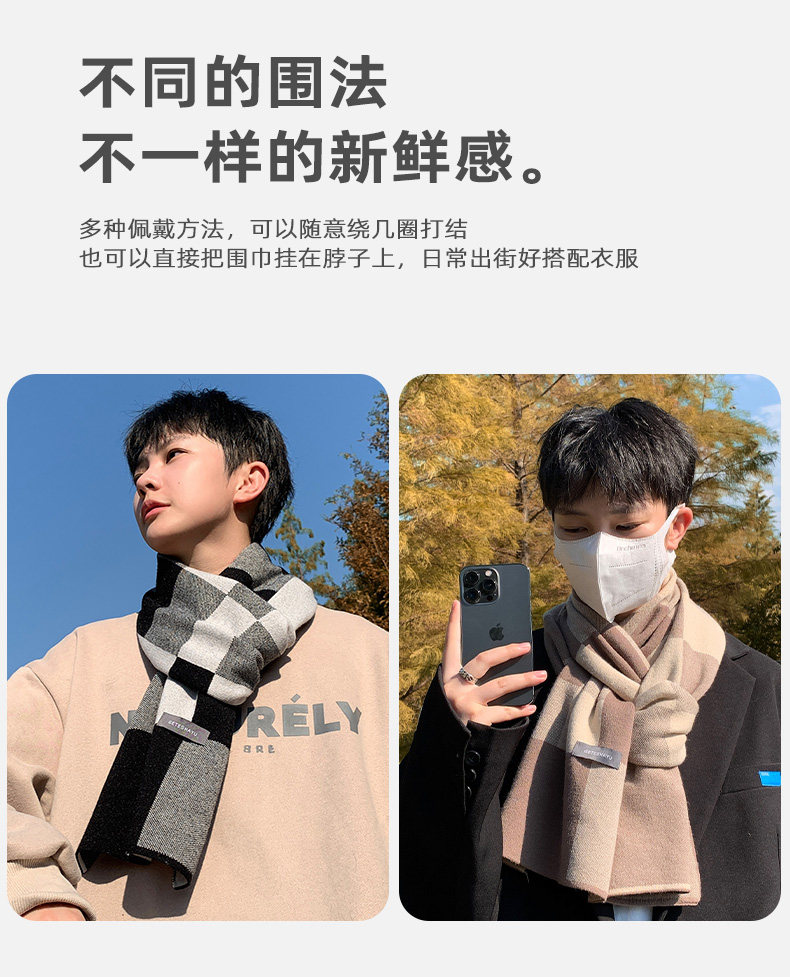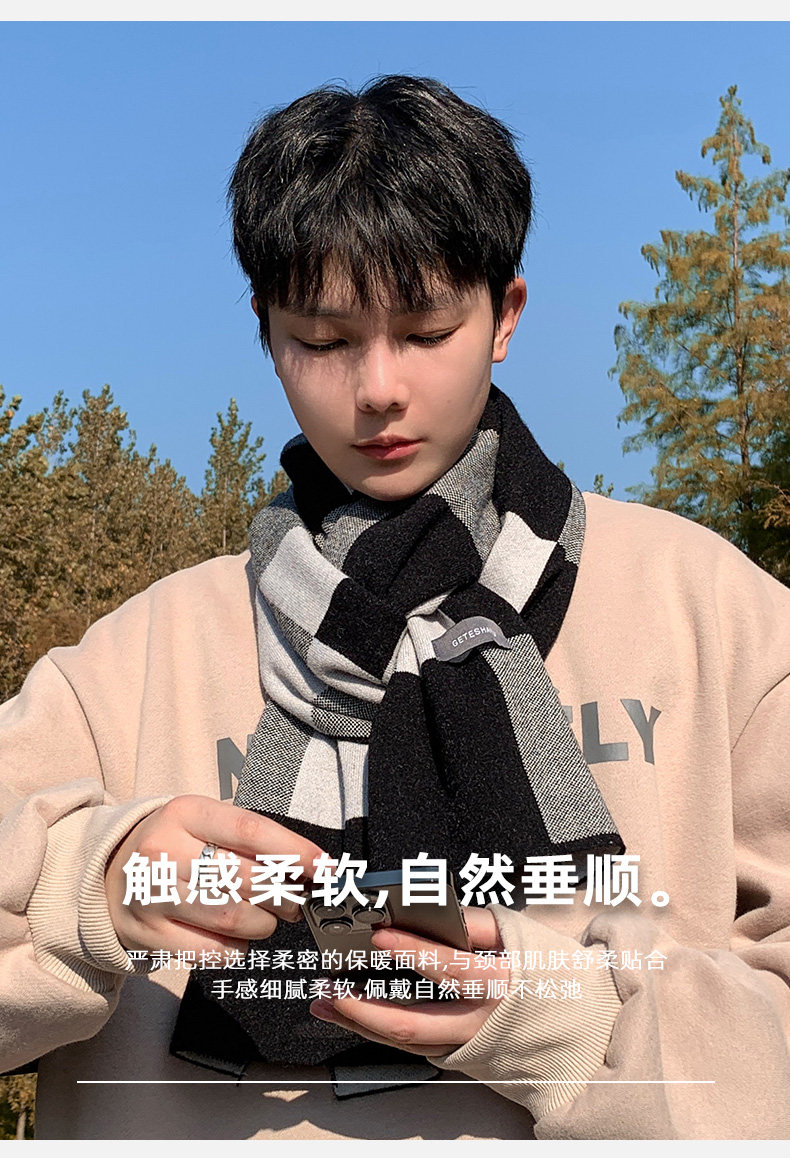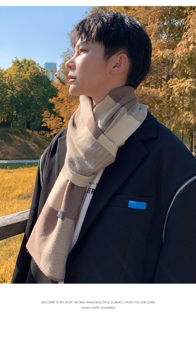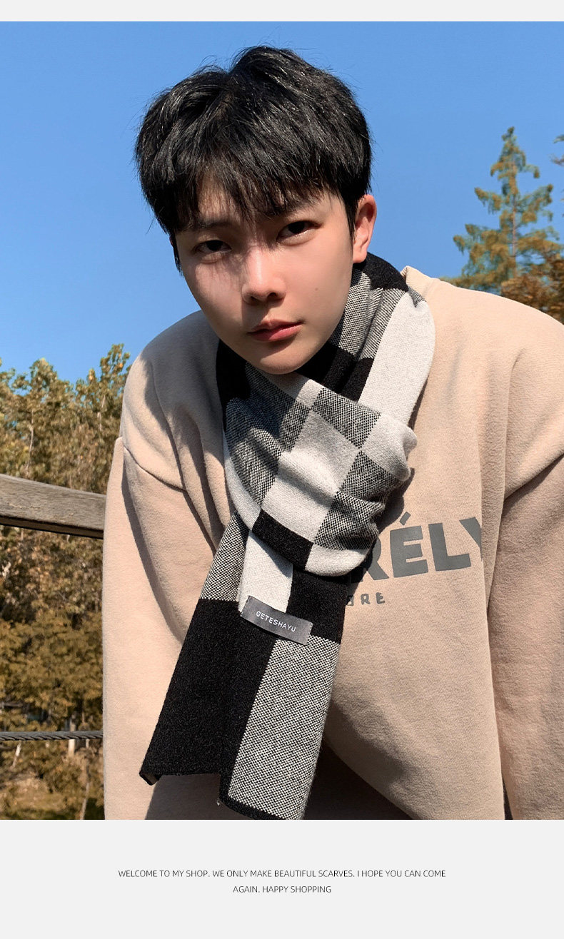 Scarecrow Scarf Men's Autumn and Winter New High-end Versatile Scarf Korean Style Fashion Casual Warm Plaid Shawl