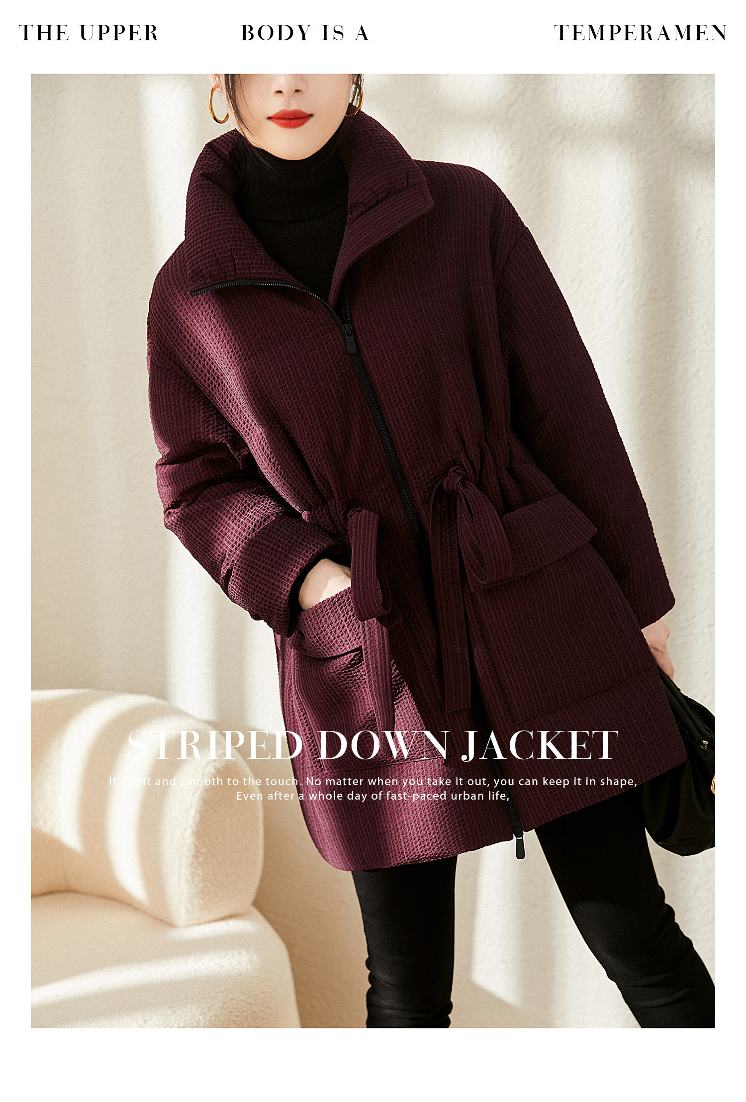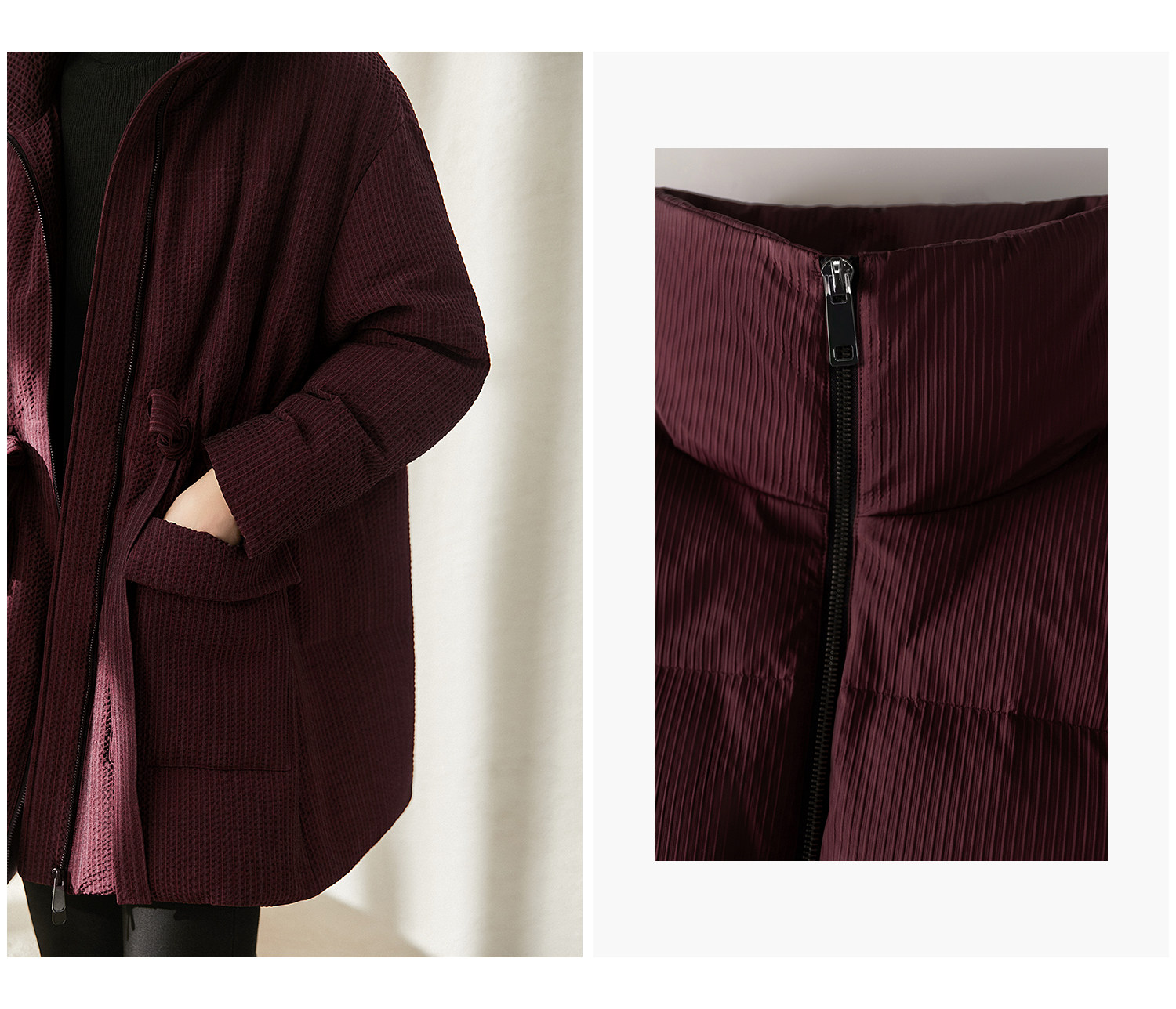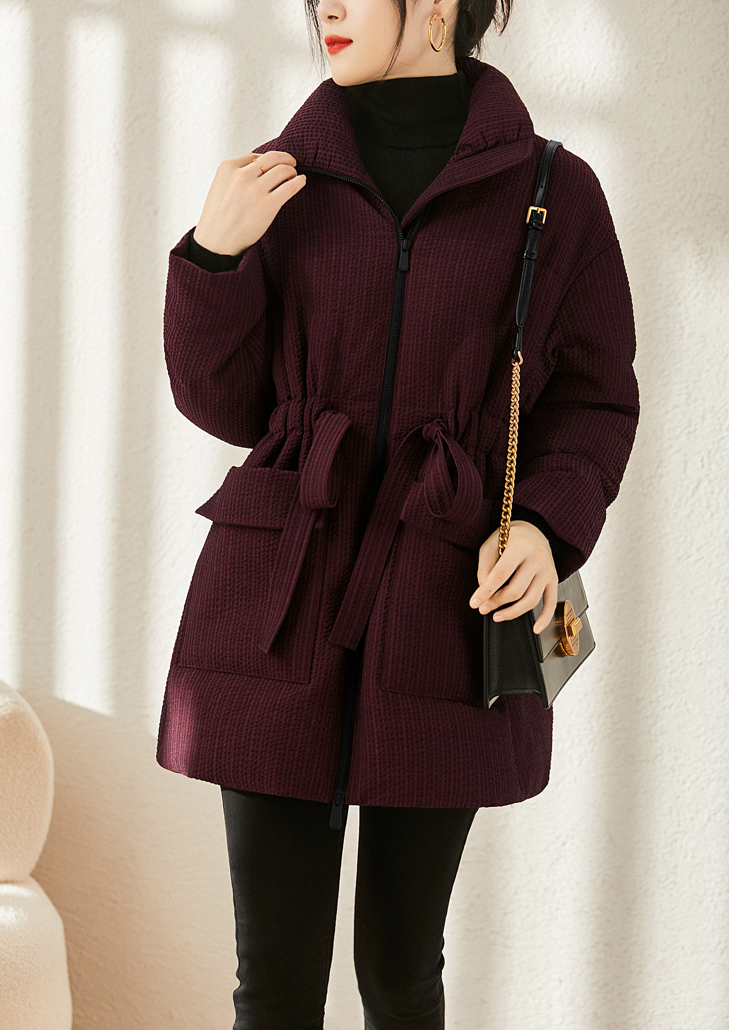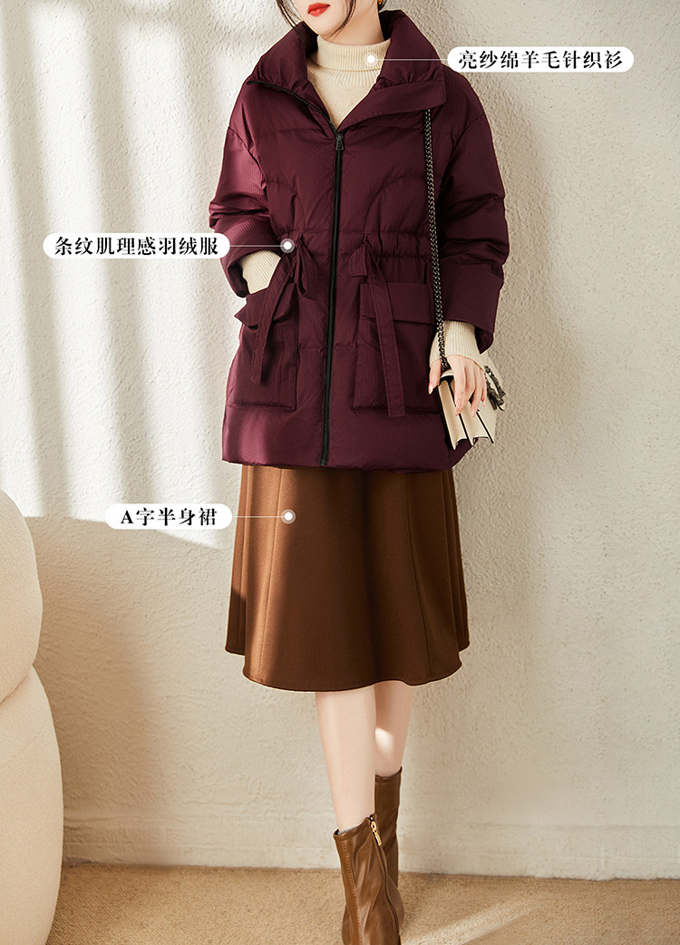 Real 90 white goose down striped textured velvet down jacket warm lace-up jacket for women winter