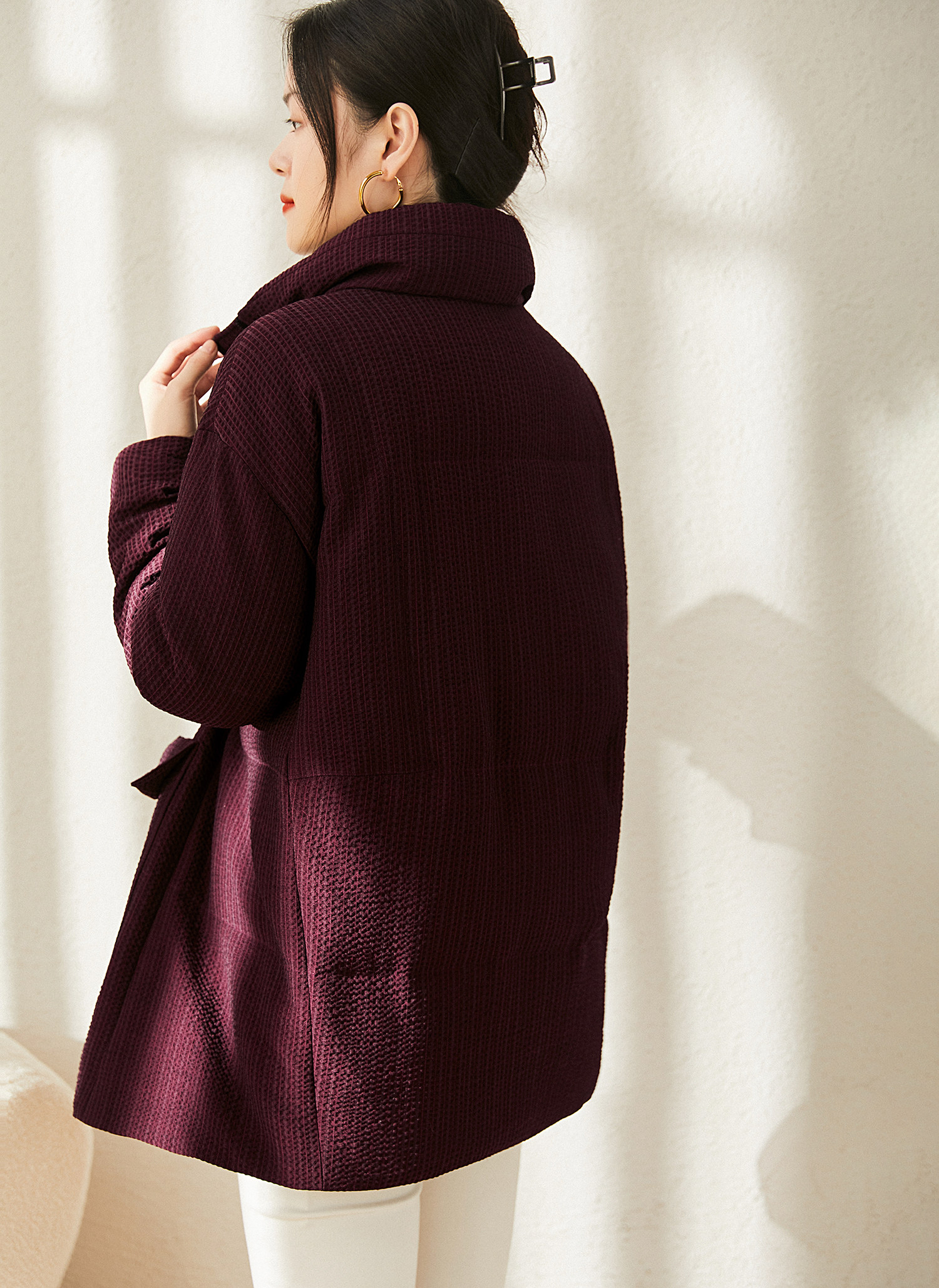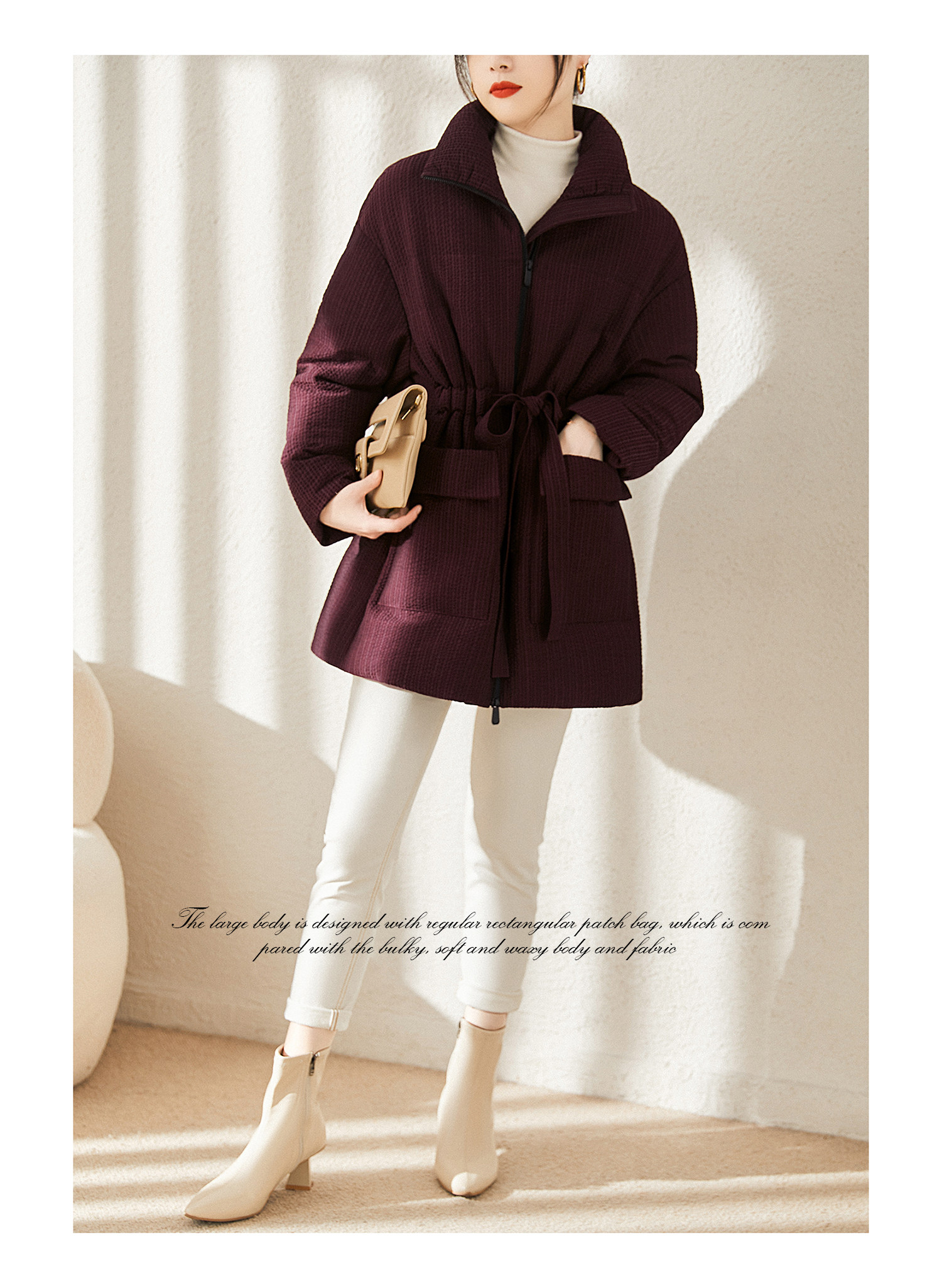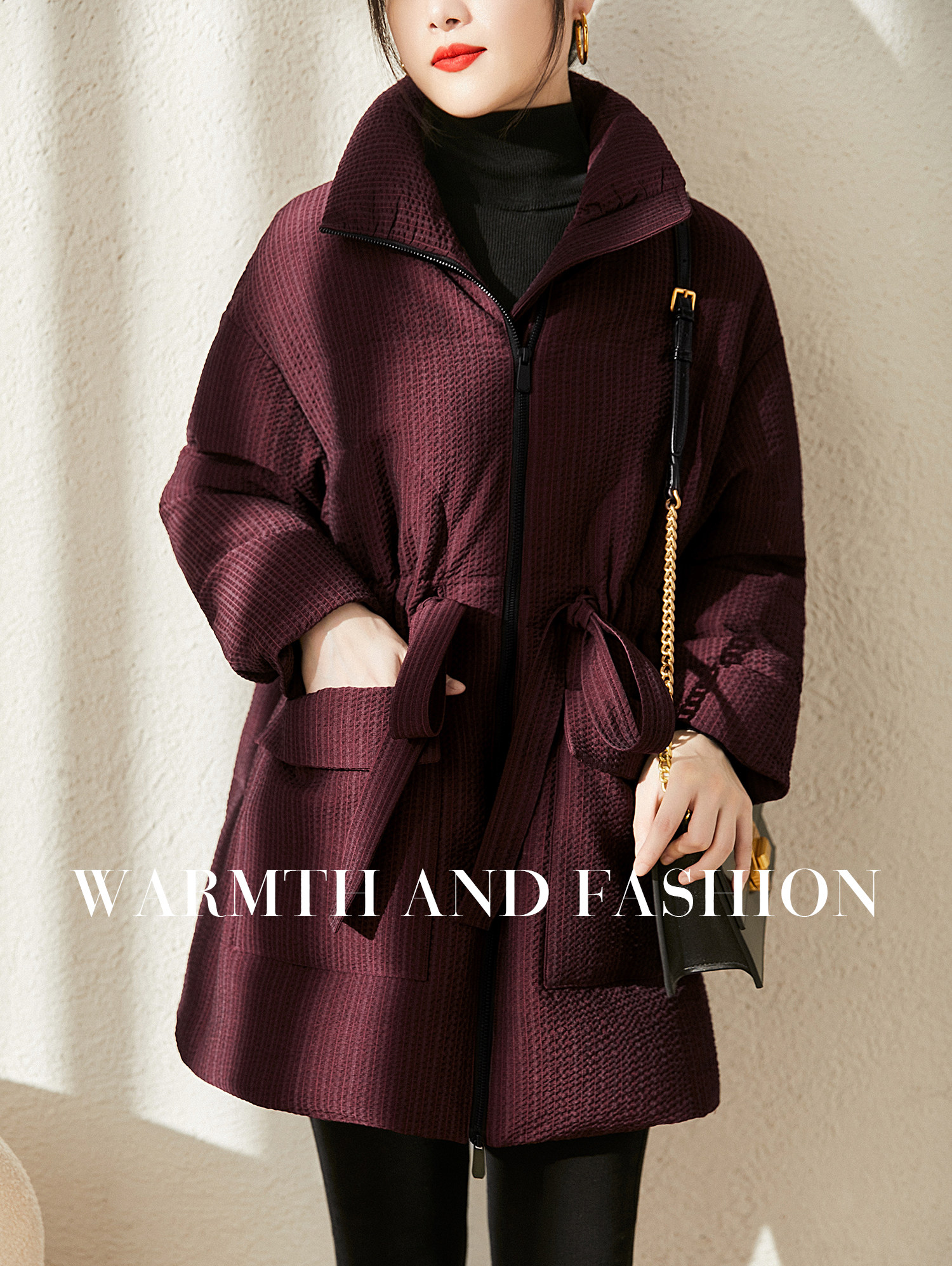 Real 90 white goose down striped textured velvet down jacket warm lace-up jacket for women winter