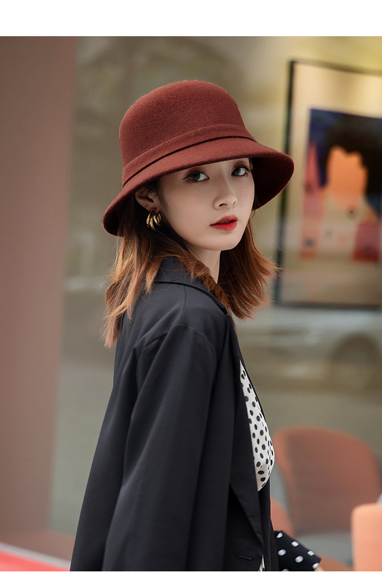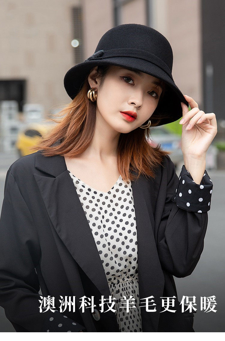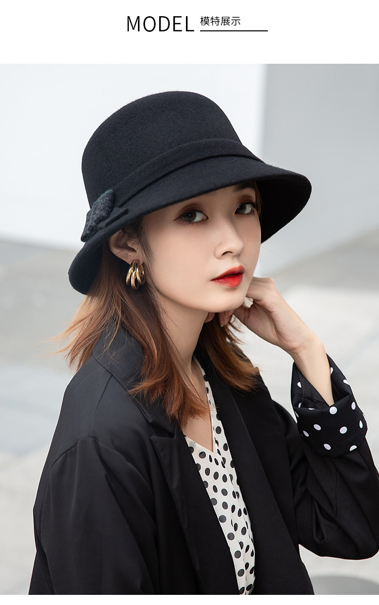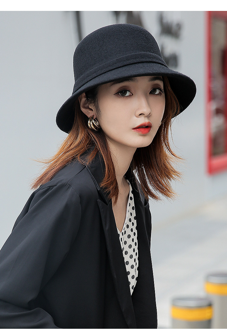 CalbouKimct winter hat women's wool face-showing small warm versatile hat elegant autumn and winter fisherman hat