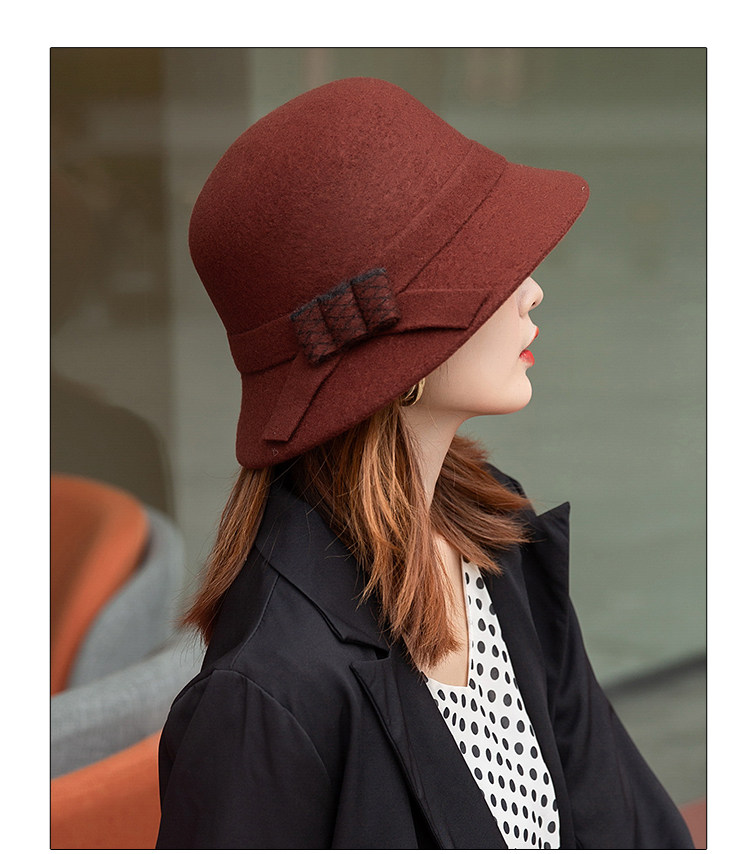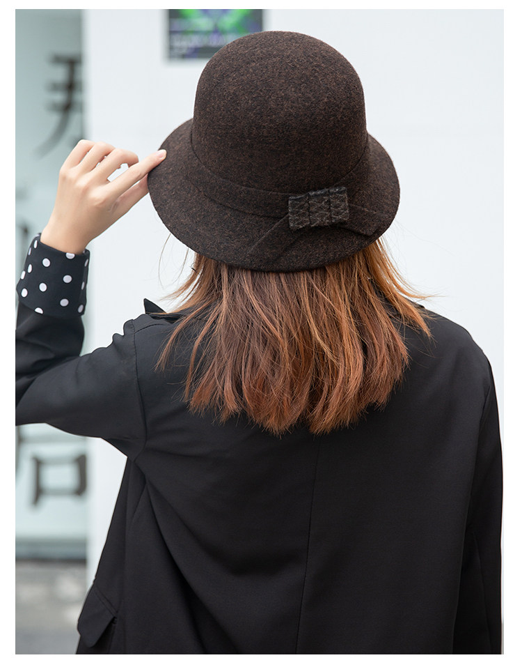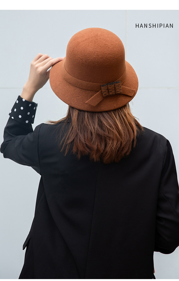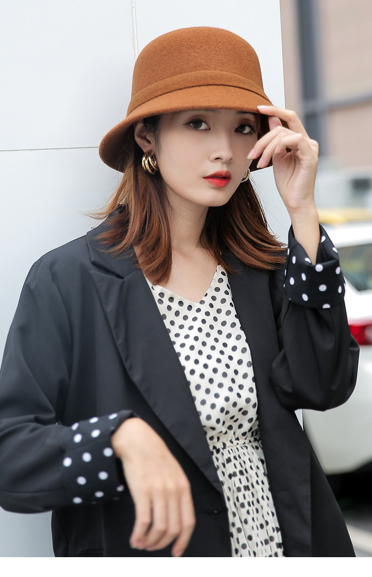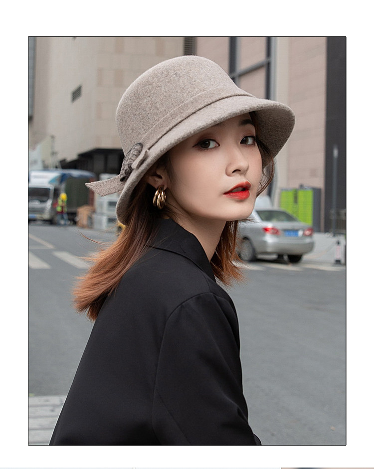 CalbouKimct winter hat women's wool face-showing small warm versatile hat elegant autumn and winter fisherman hat