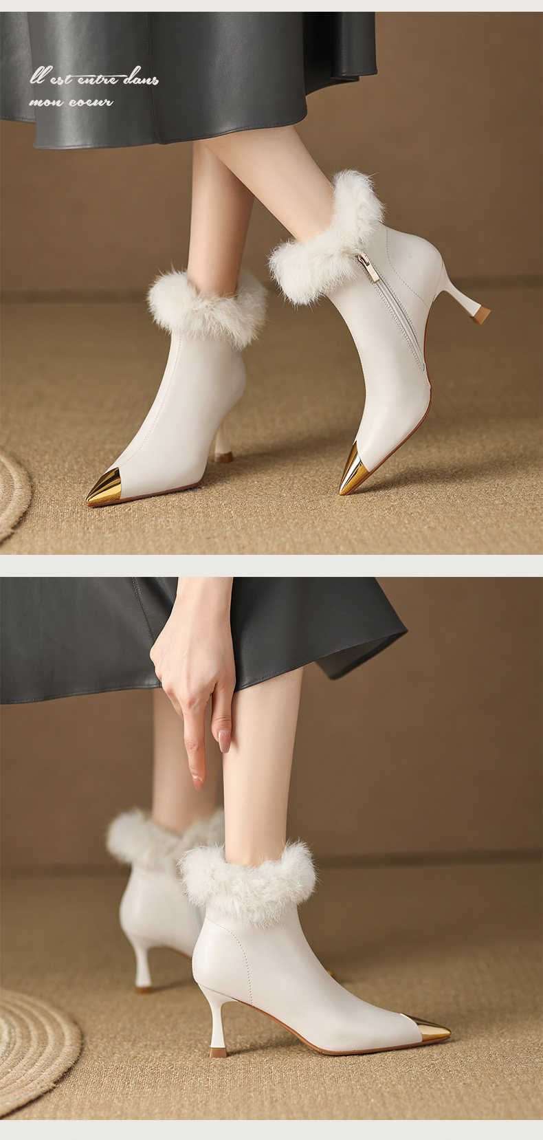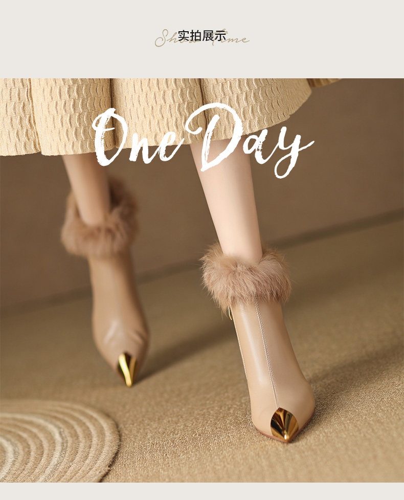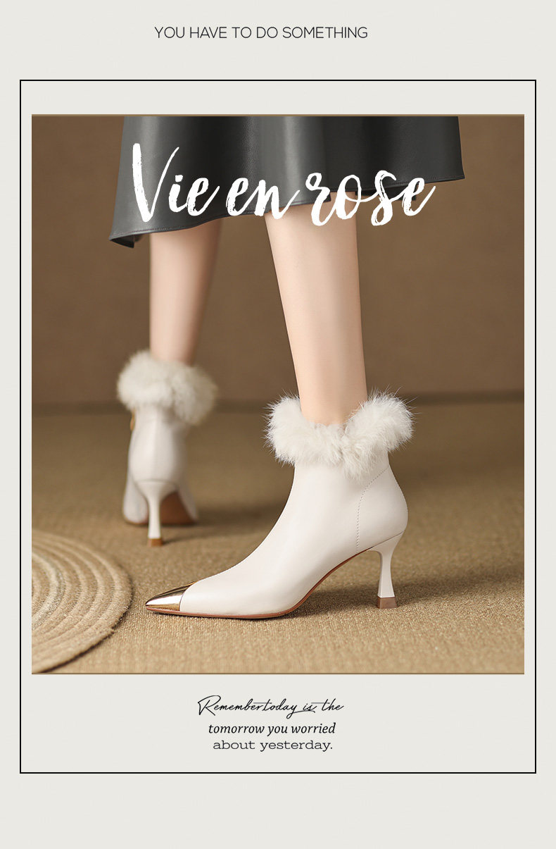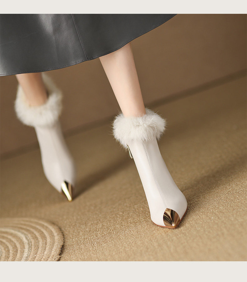White short boots, high-end winter high heels, women's stiletto fur shoes, rabbit fur boots, temperament, French ankle boots
