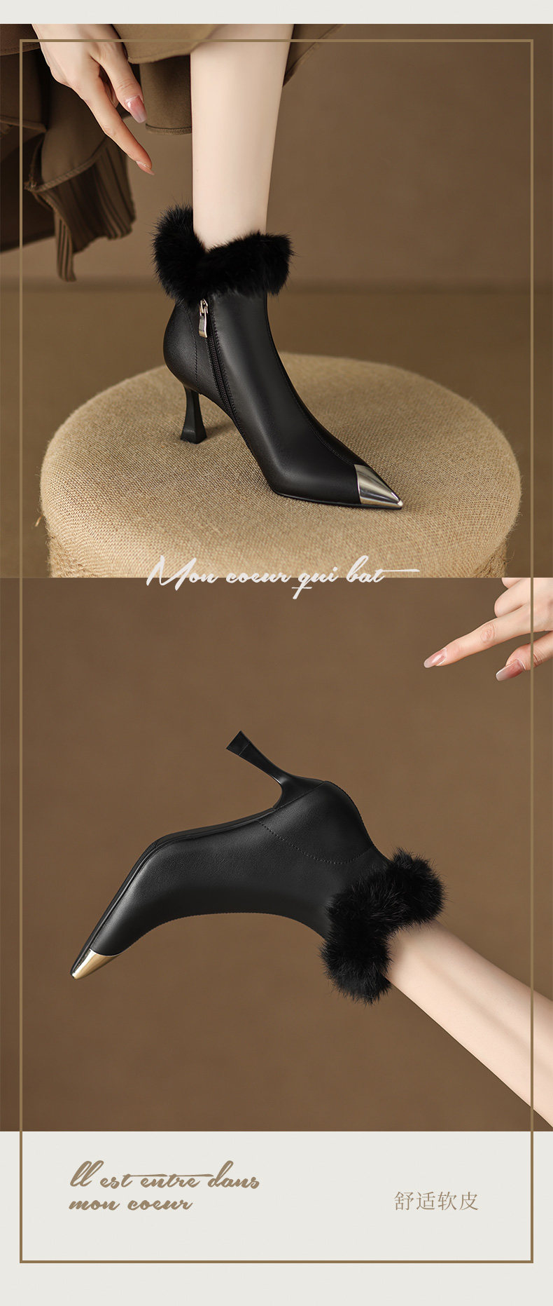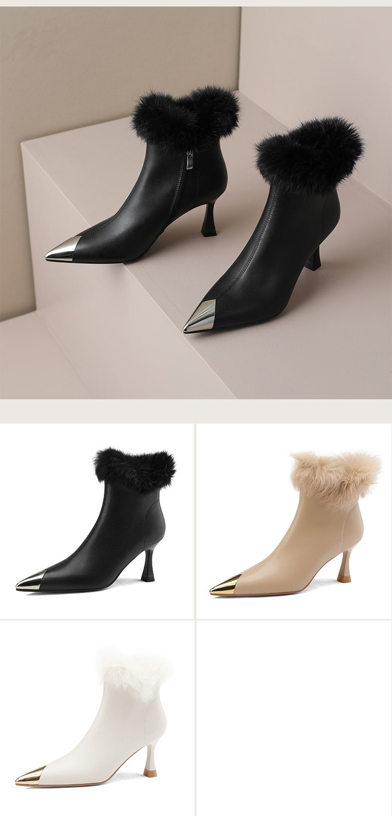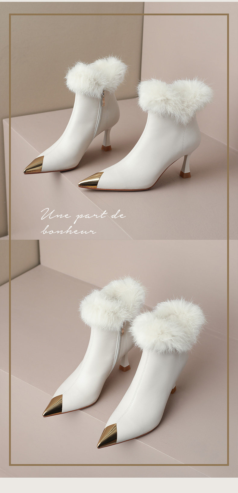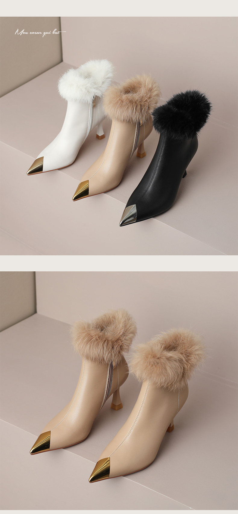 White short boots, high-end winter high heels, women's stiletto fur shoes, rabbit fur boots, temperament, French ankle boots