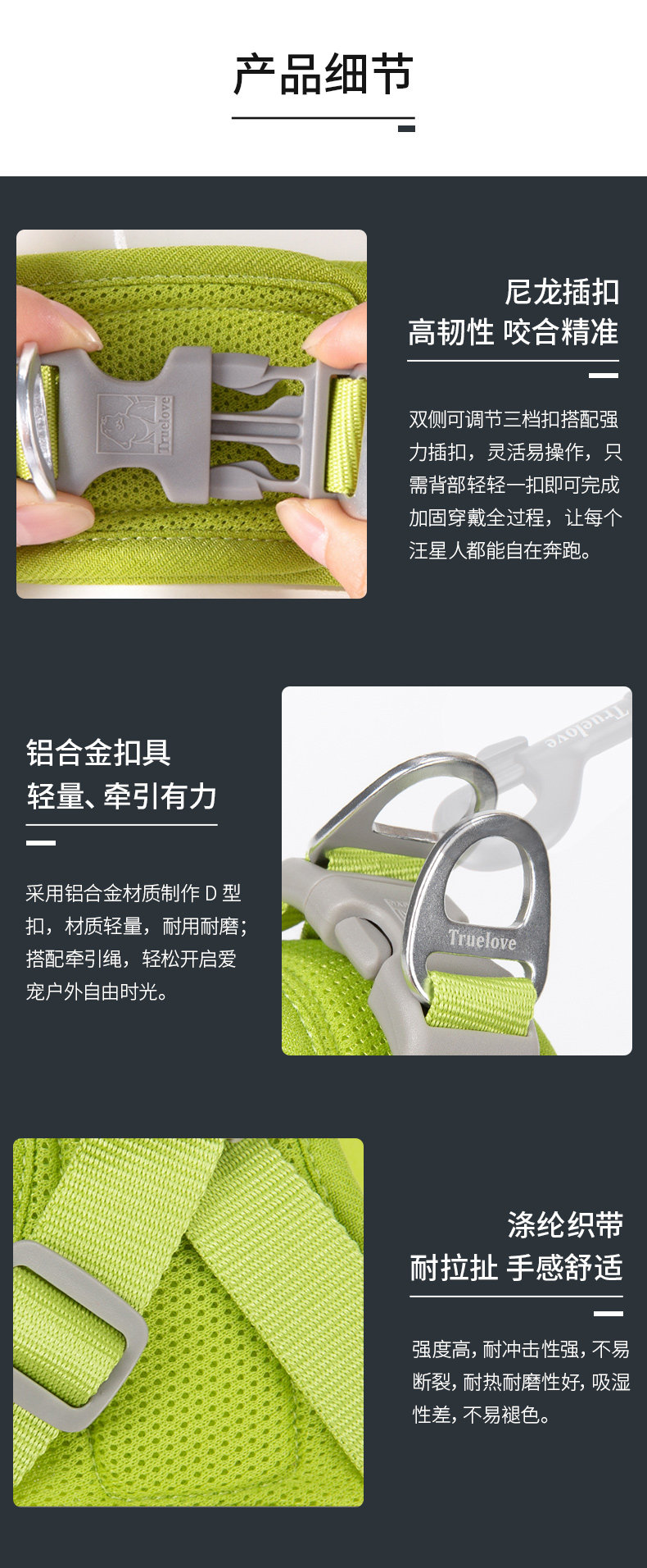 Truelove vest type dog leash chest harness dog chain medium and large dog golden retriever anti-breakaway dog walking