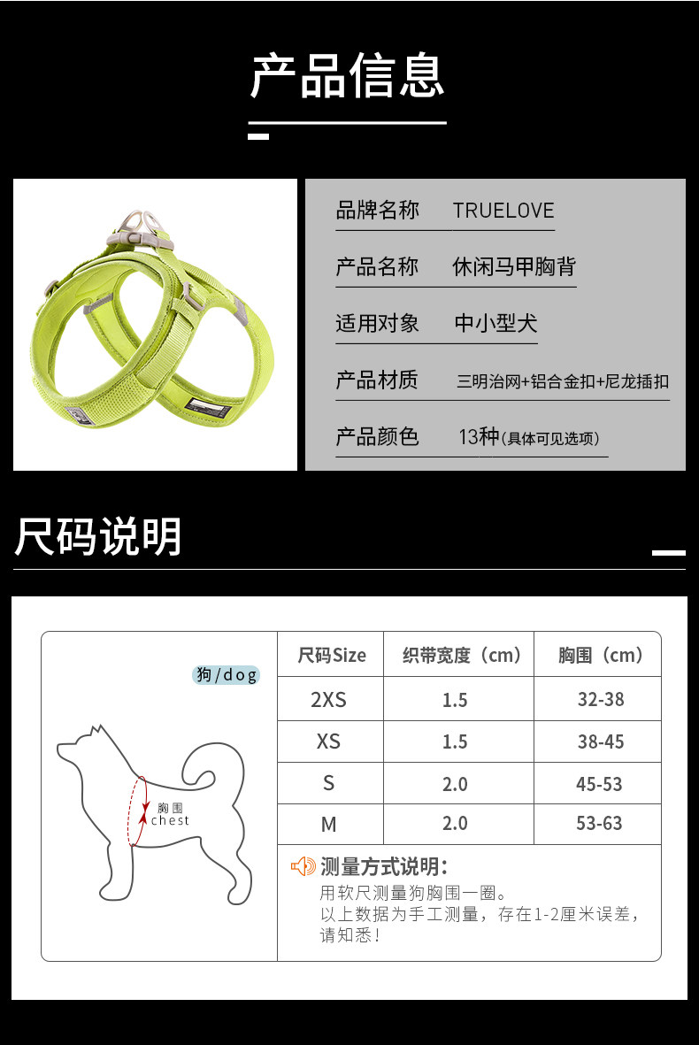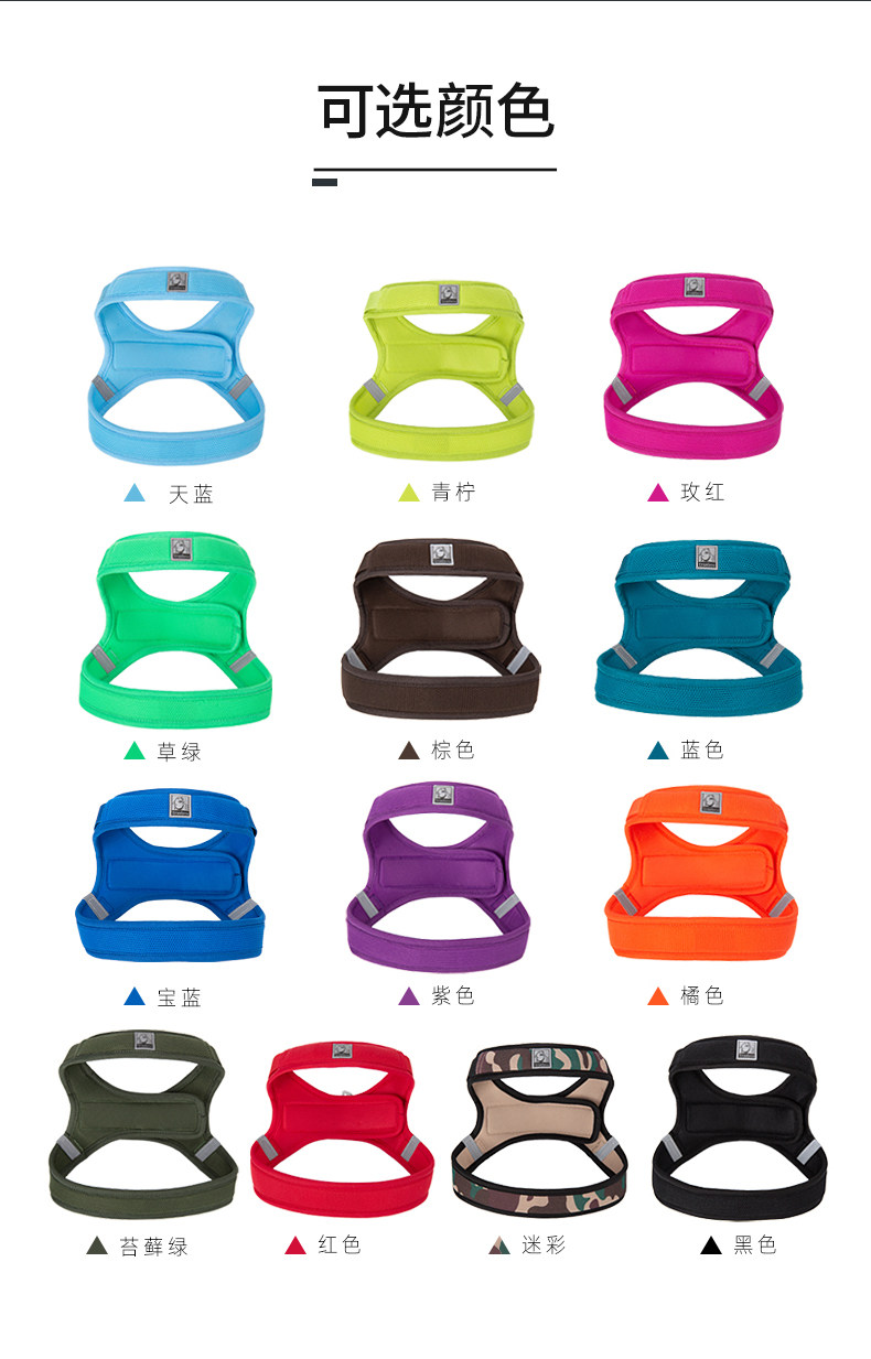 Applicable size 2XS bust 32-38cm, recommended 6-10Jin Jin is equal to 0.5kg,XS bust 38-45cm, recommended 10-13 Jin Jin equals 0.5 kg,S bust 45-53cm, recommended 13-18 Jin Jin equals 0.5 kg,M bust 53-63cm, recommended 18-30 Jin Jin equals 0.5 kg