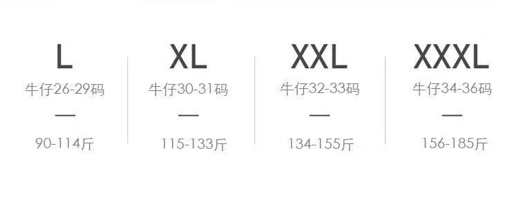 USA(inch) 28-30 30-32 32-34 34-38 38-42