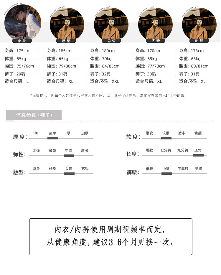 China (cm) 165 / 88-90 170 / 96-98 175 / 108-110 180 / 118-122 185 / 126-130