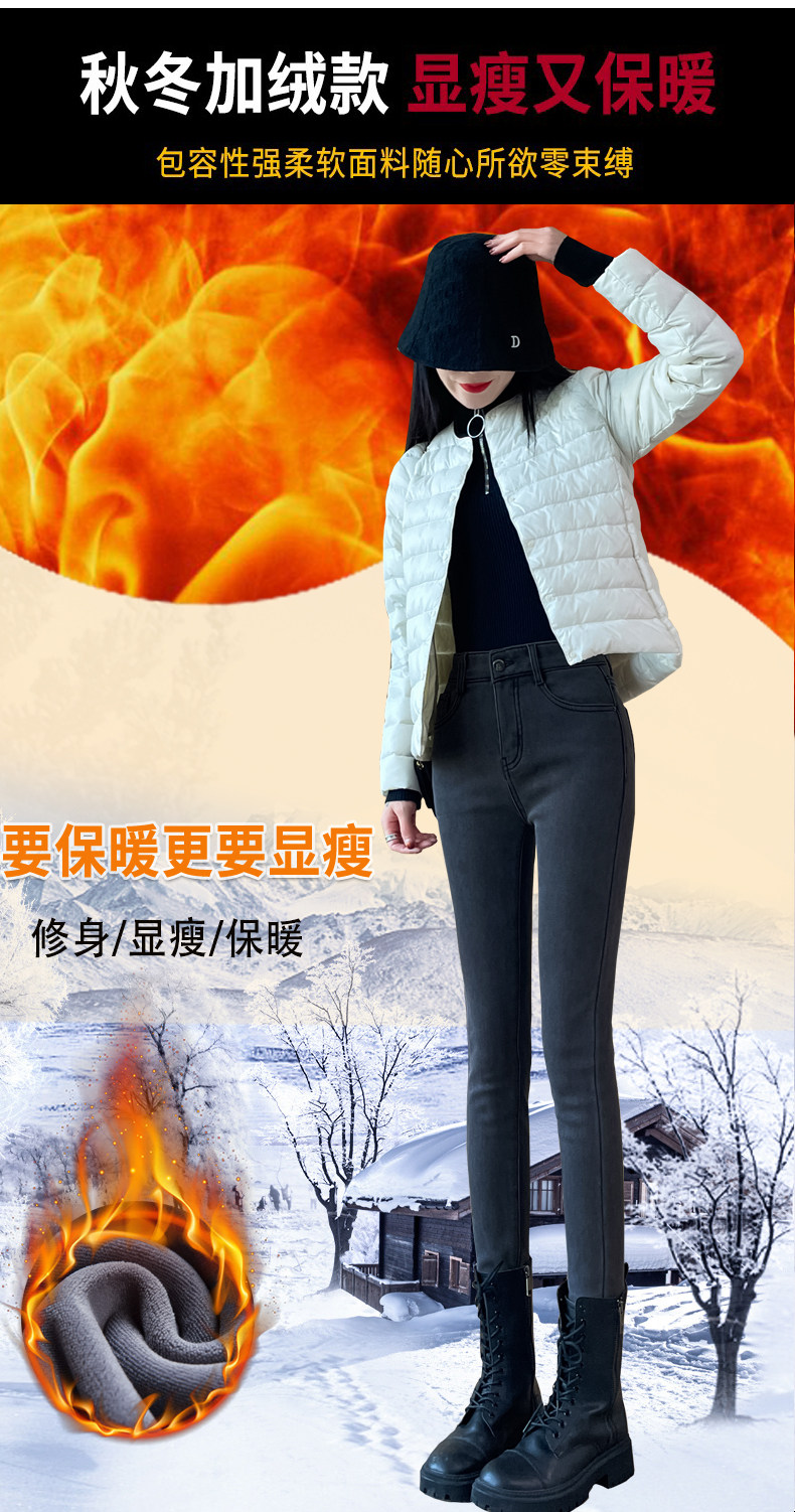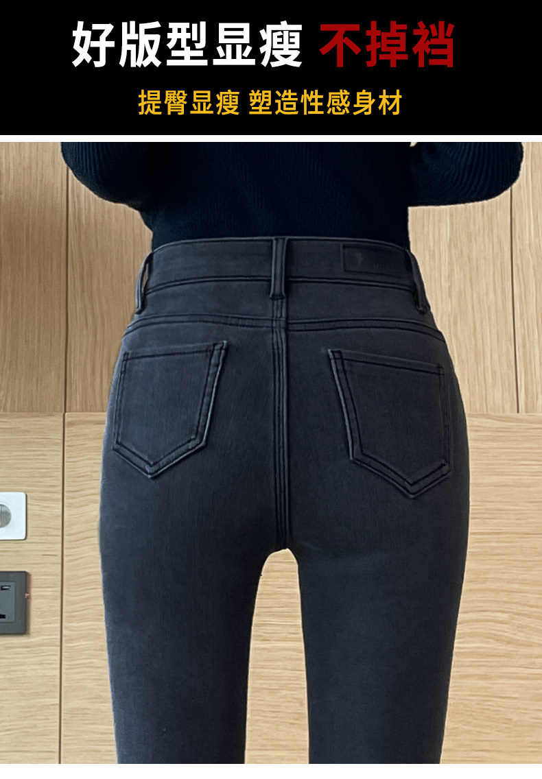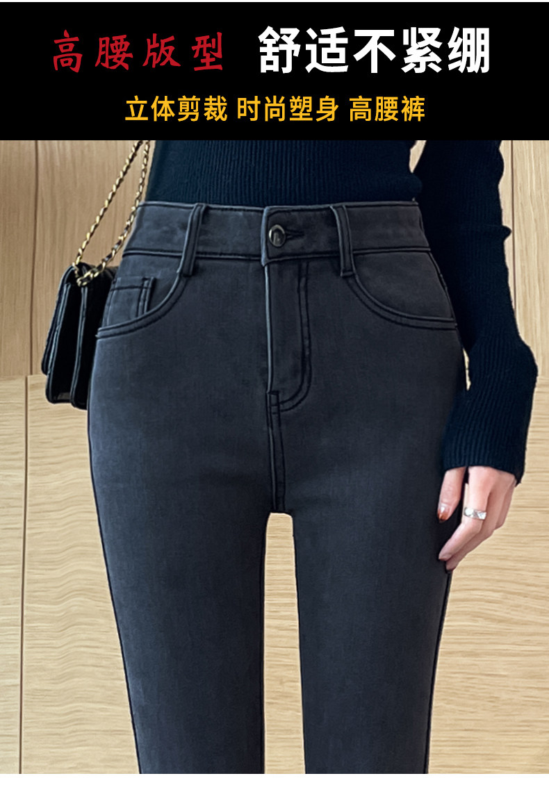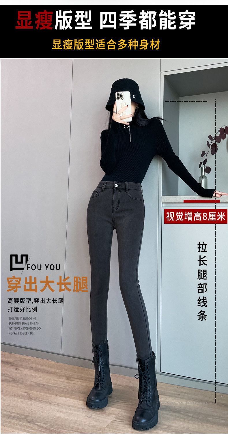 High-Waisted Smoky Gray Jeans for Women, 2025 Autumn and Winter New Style, Stretchy, Slimming, Skinny Pants, Tight-Fitting, Fleece-Lined Long Pants
