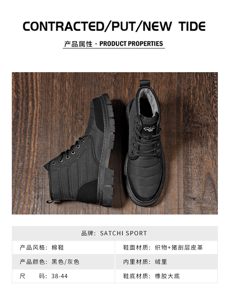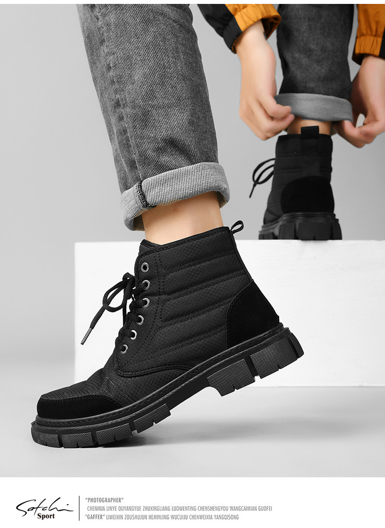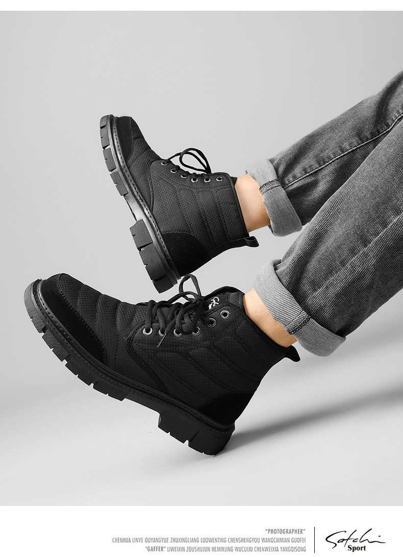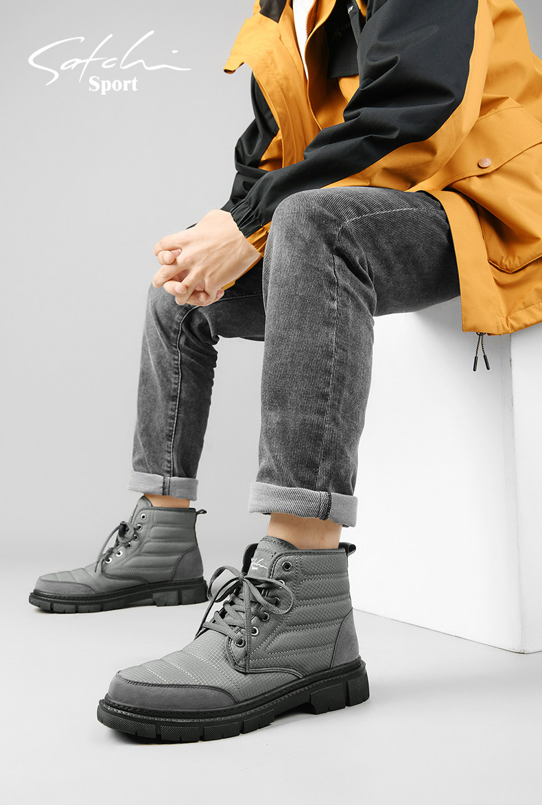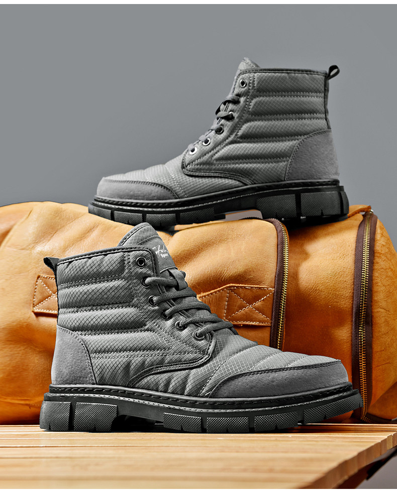 Satchi Men's Winter Martin Boots Trendy Versatile High-Top Shoes with Fleece Lining Warm Work Boots