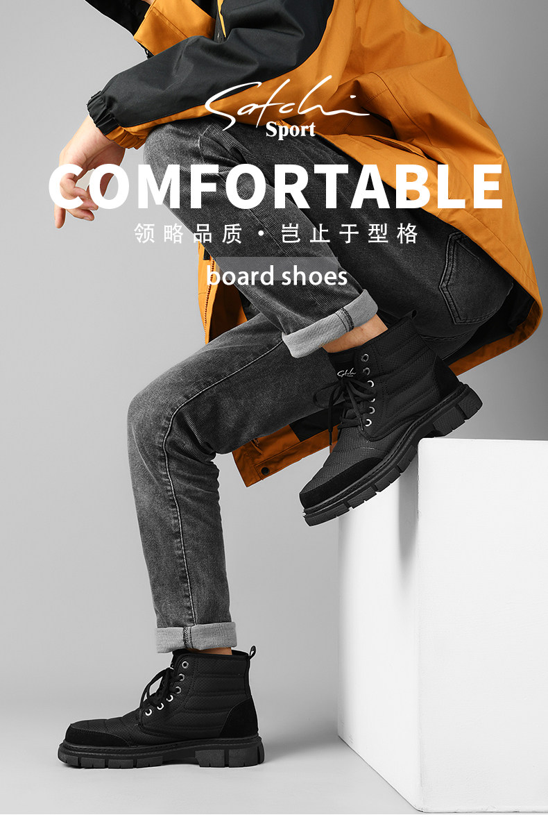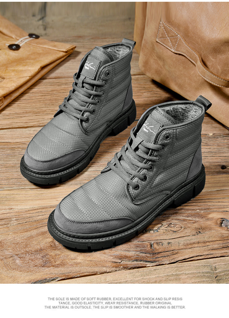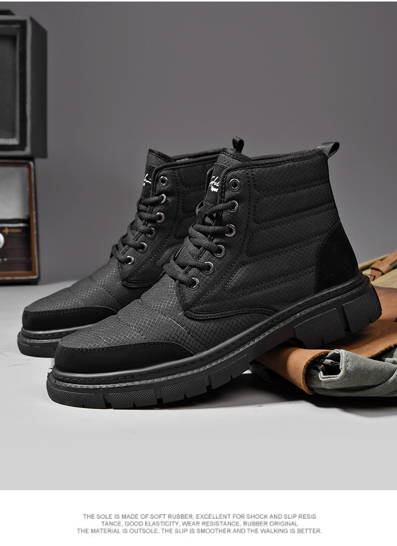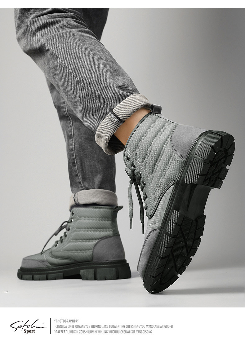 Satchi Men's Winter Martin Boots Trendy Versatile High-Top Shoes with Fleece Lining Warm Work Boots