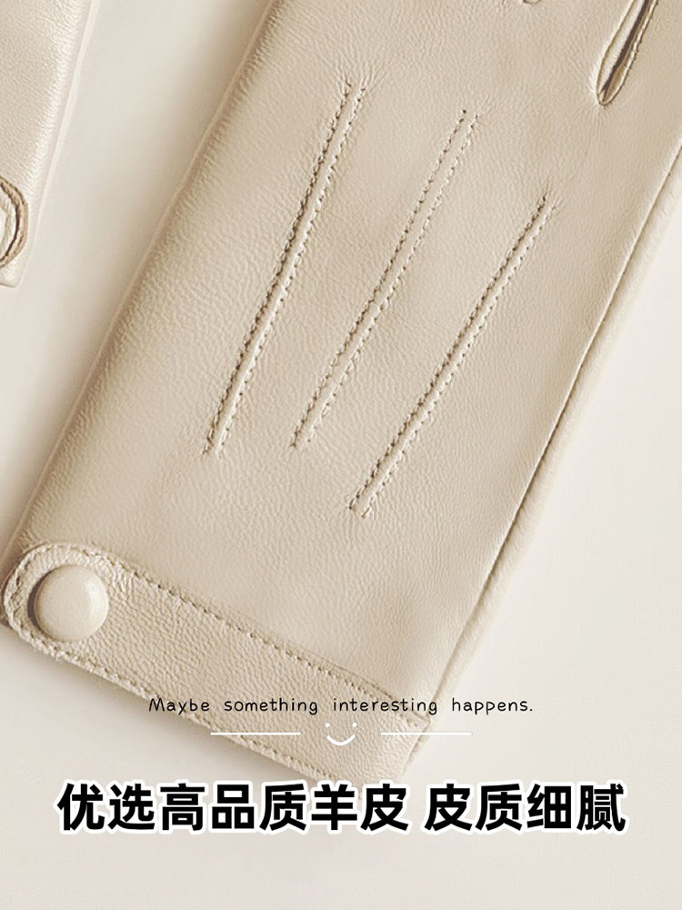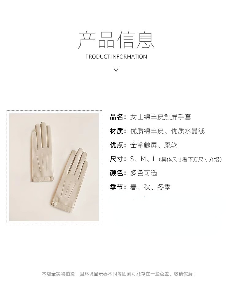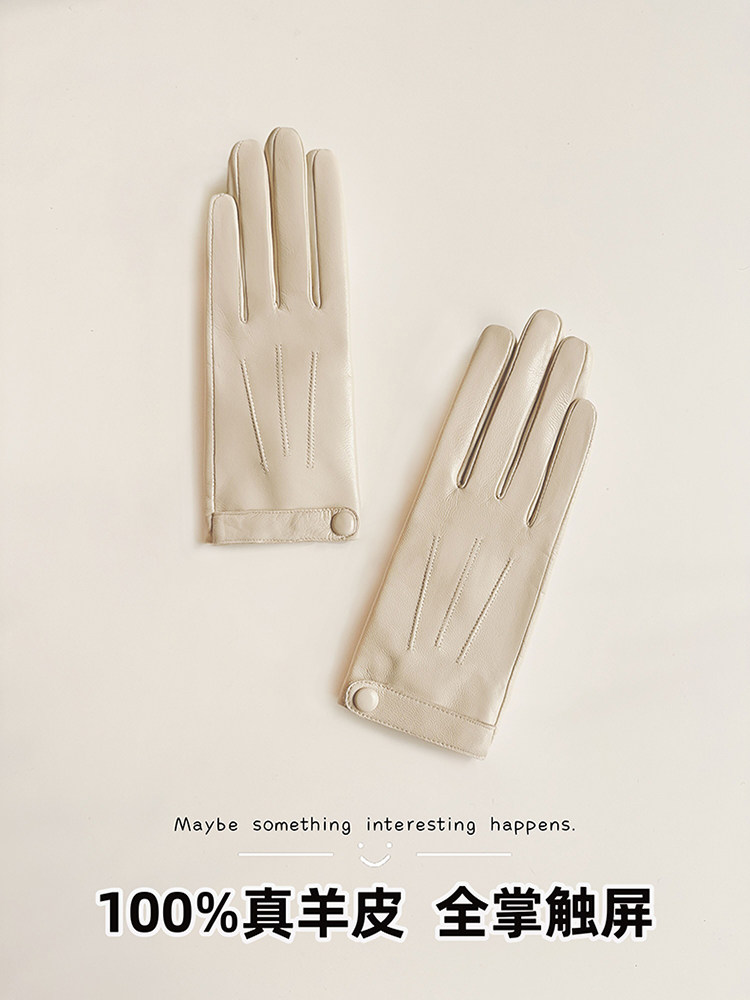 Genuine Sheepskin Gloves for Women, Winter Touchscreen Driving Gloves, Spring and Autumn Thin Short Style, Motorcycle Riding Gloves, Fleece-Lined, Thickened, Warm, Men's Windproof