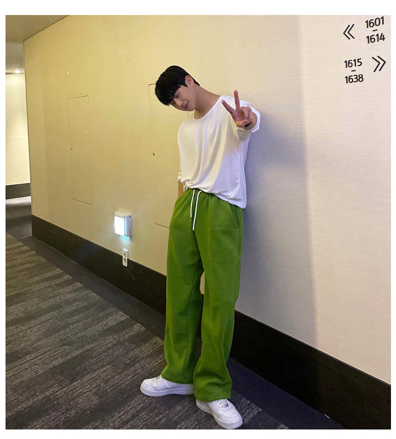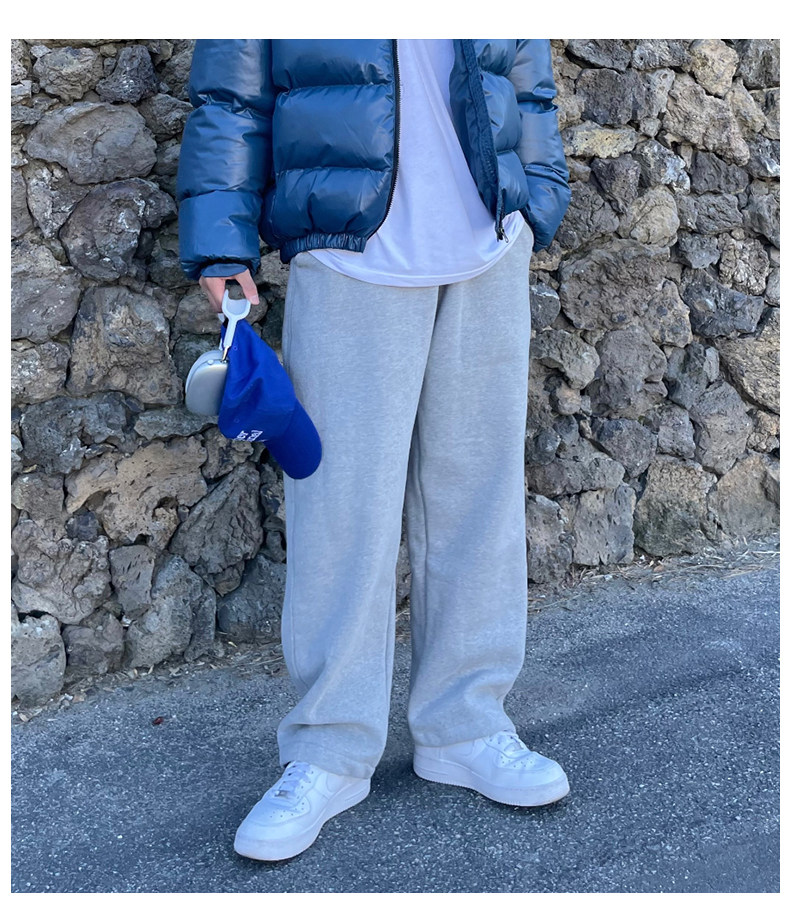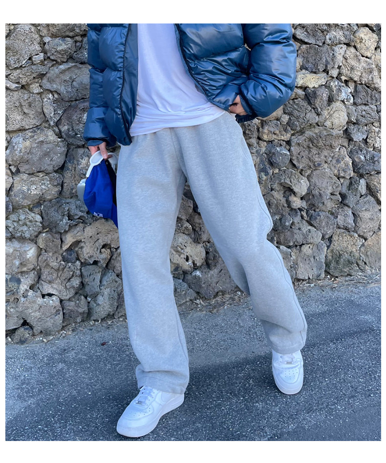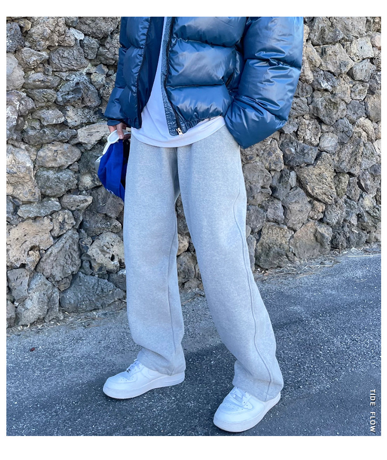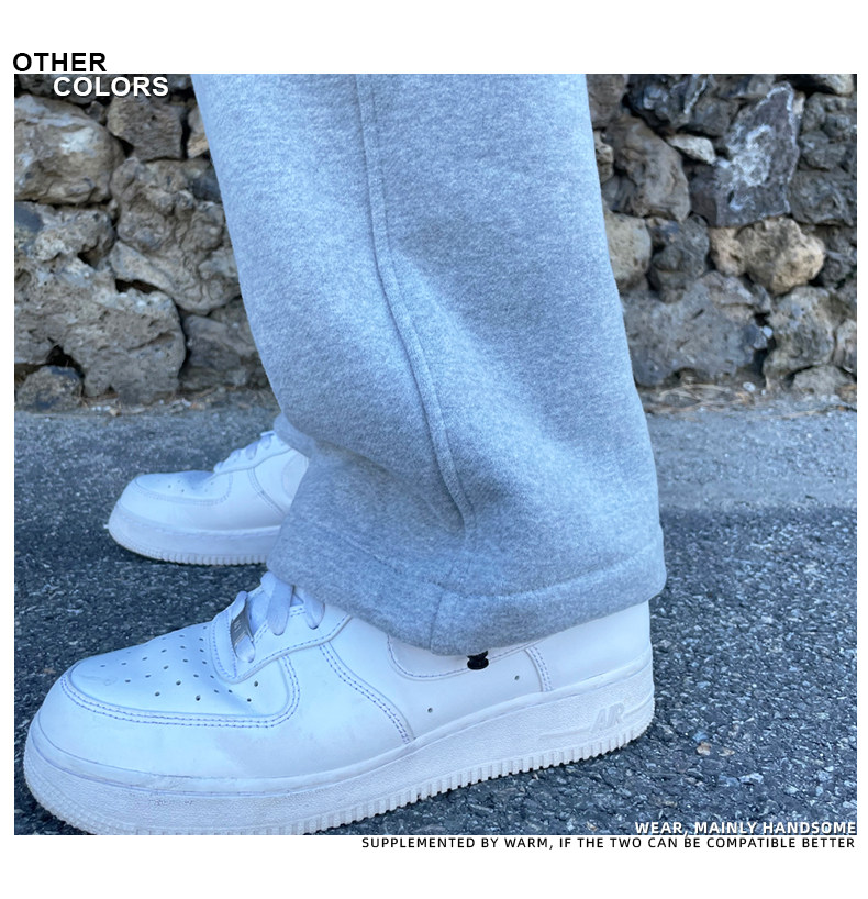 Fleece-Lined Men's Sweatpants 2026 Popular Casual Versatile Loose Jogger Pants Korean Style Simple Straight Solid Color Casual Pants