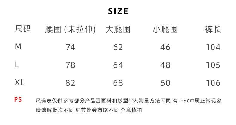 Outseam (cm) 99 cm 101.5 cm 104 cm 106.5 cm 109 cm