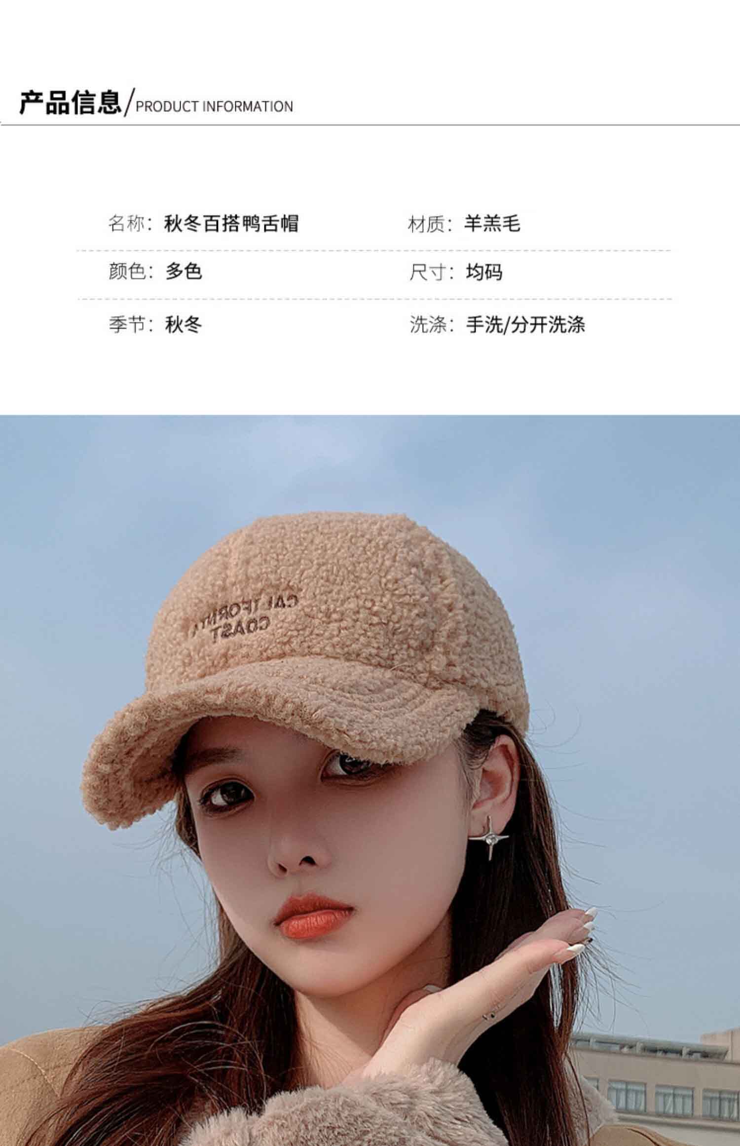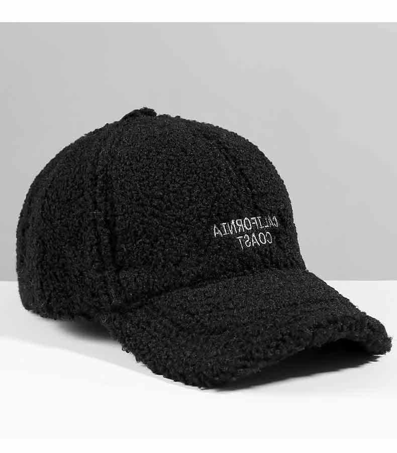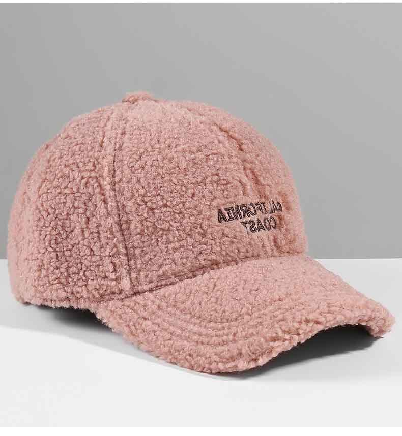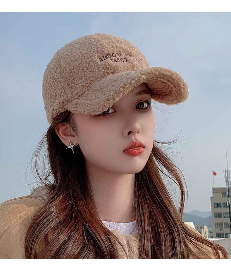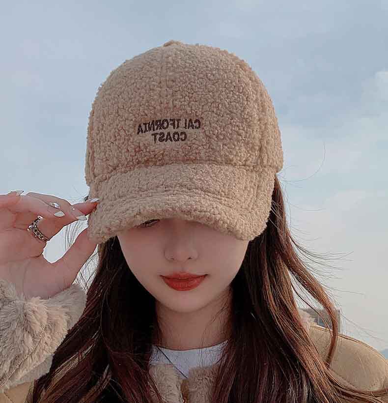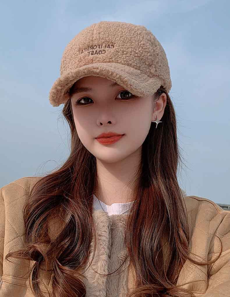 Mqvq Lamb Wool Duckbill Cap for Women, Winter 2026, Korean Style, Large Head Circumference, Thickened, Warm, Lettered Plush Baseball Cap