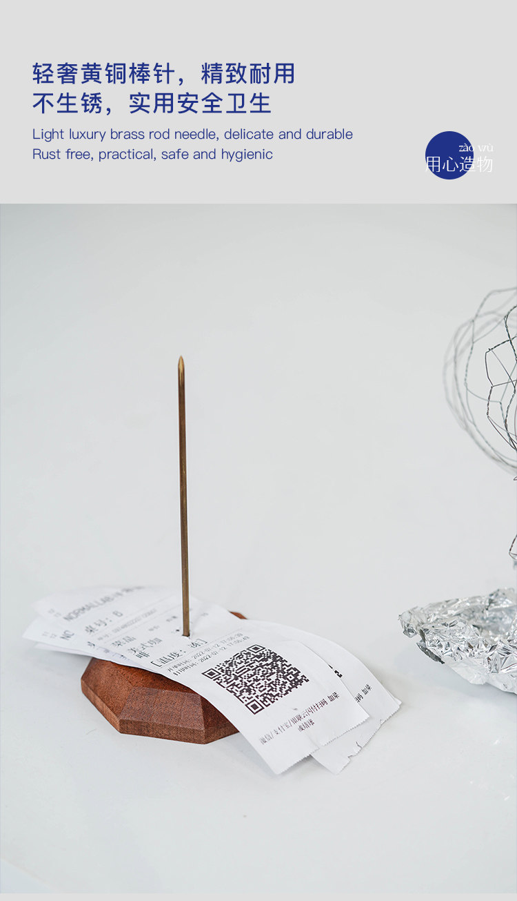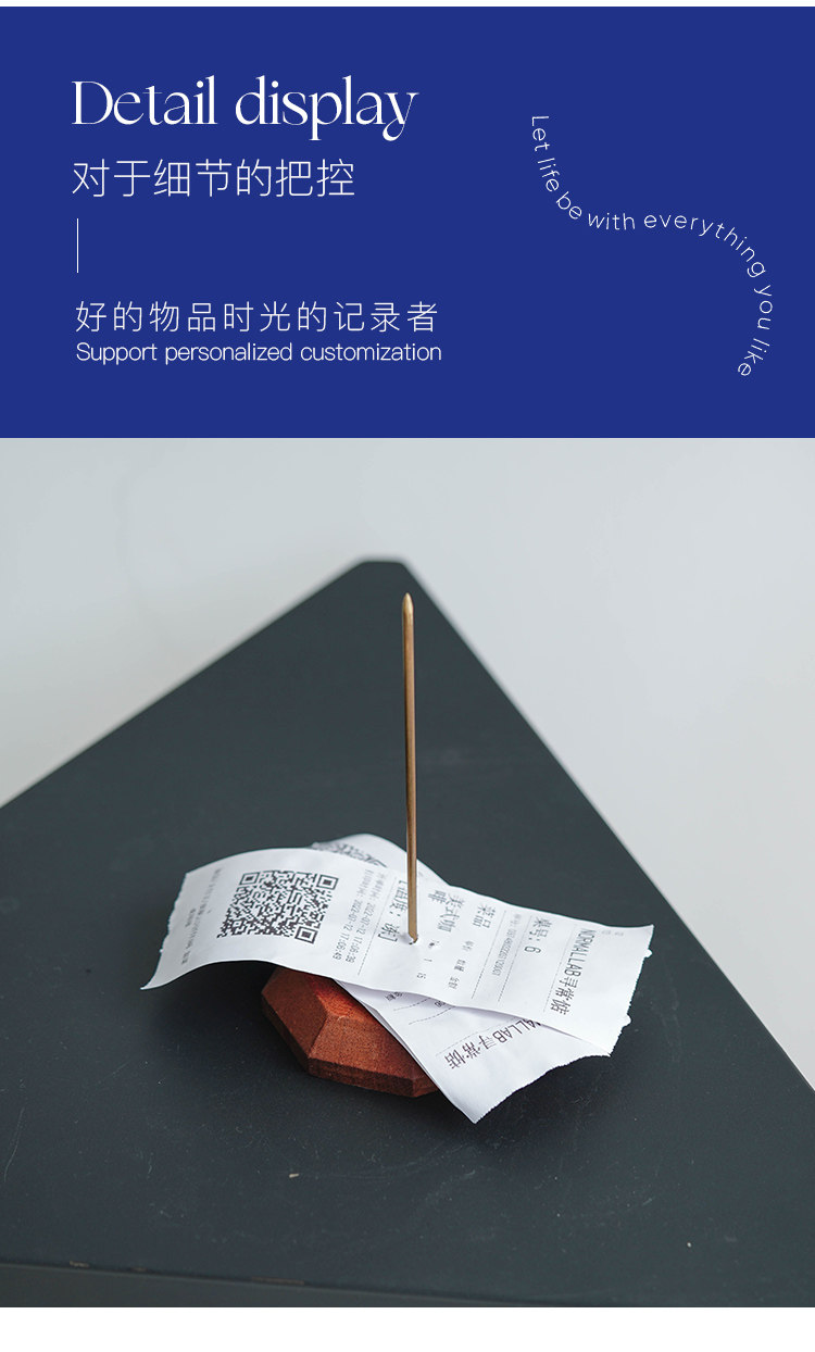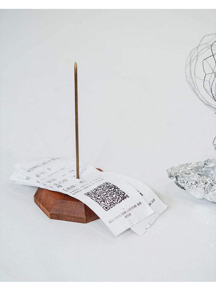 Solid wood point single plug single device fork receipt restaurant cashier receipt note face single brass nail seat storage pin