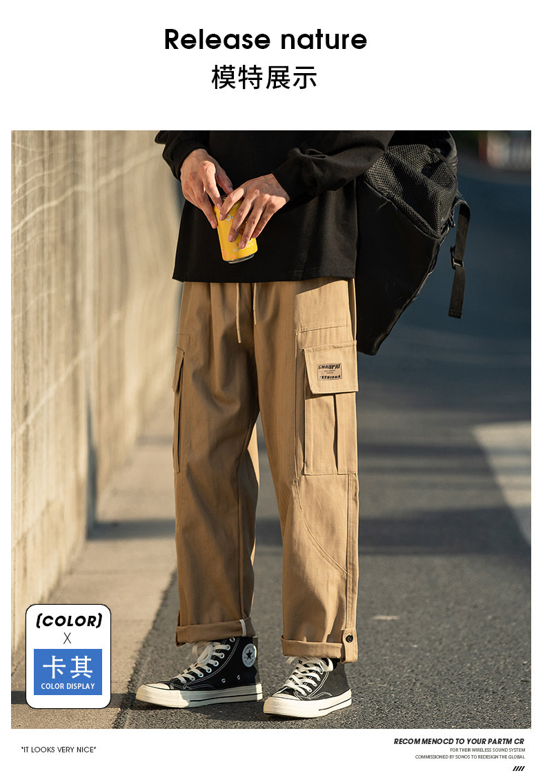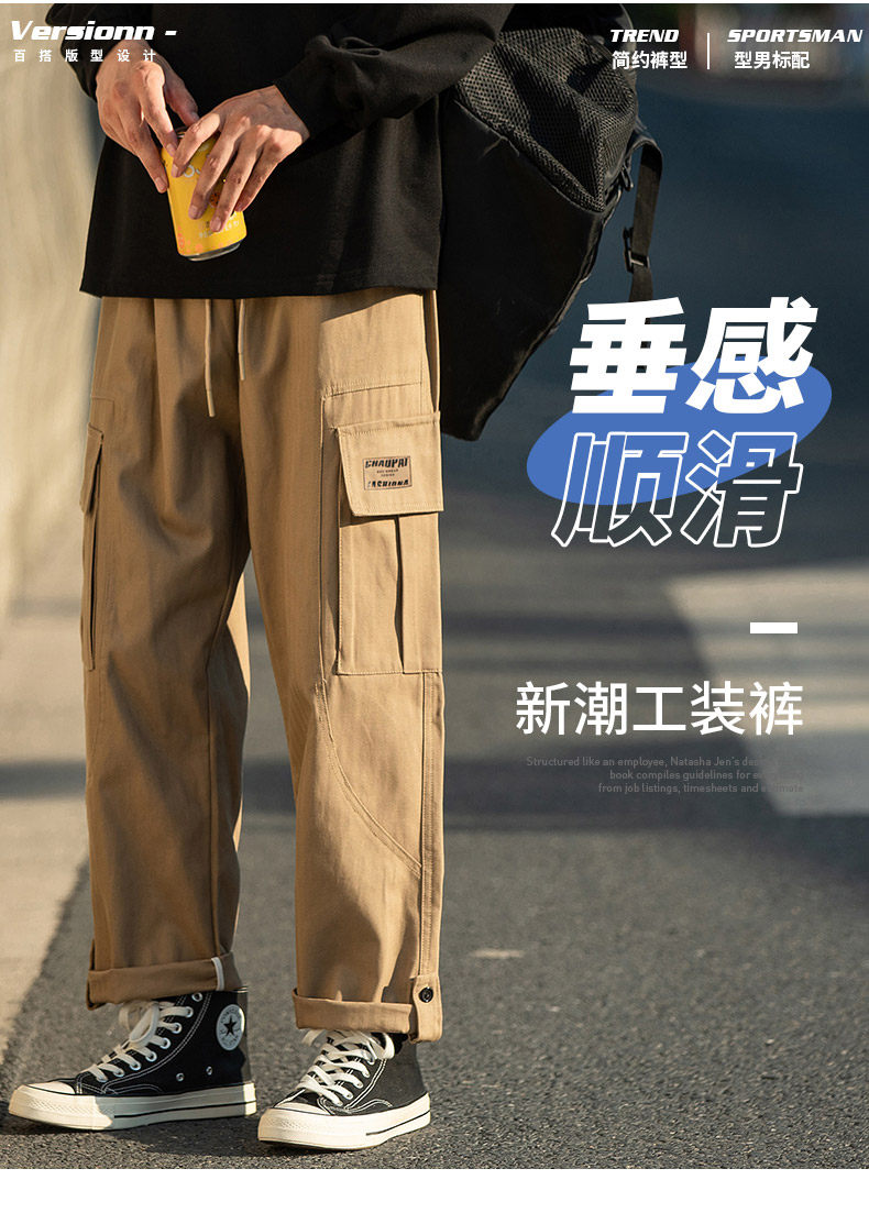 Men's overalls for spring and autumn new style American fashion brand high street wear-resistant wide-leg khaki straight casual long pants