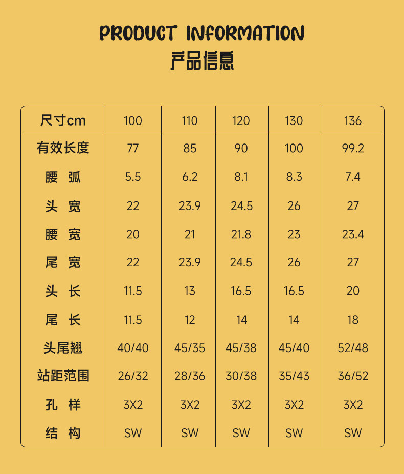 Length 120cm,130cm,136cm,140cm,145cm,80cm,90cm,100cm,110cm