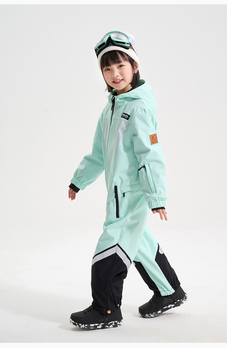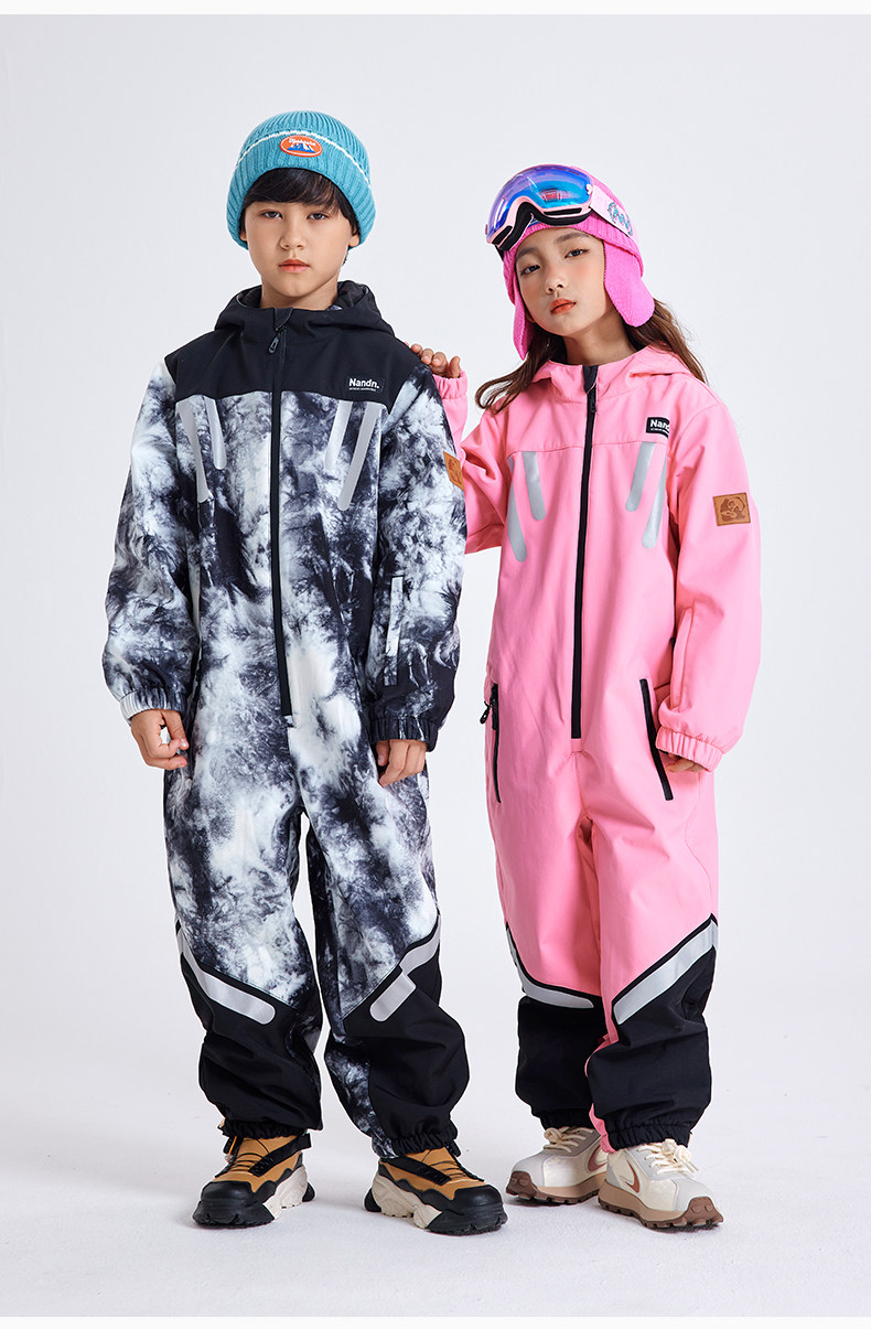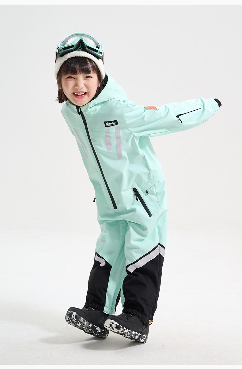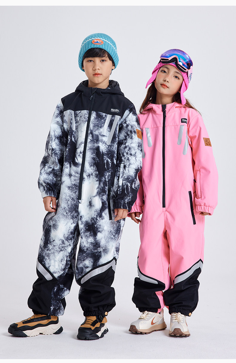 Nandn Children's Ski Suit for Boys, Professional Girls' Ski Equipment Set, Full Set of Snow Suit, One-Piece Style