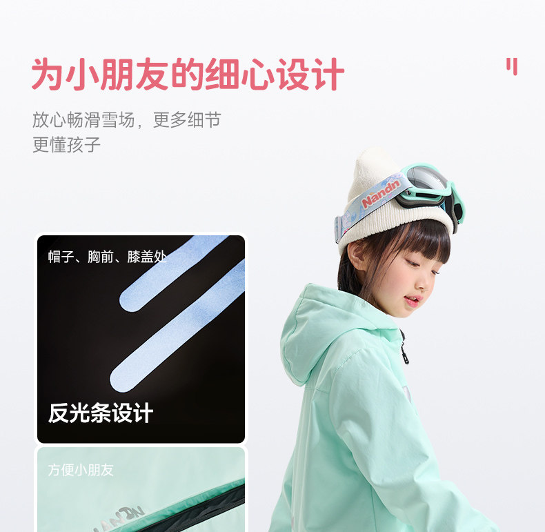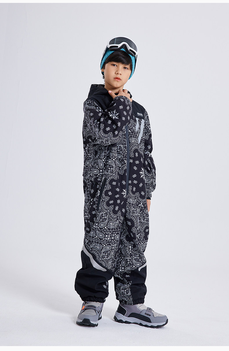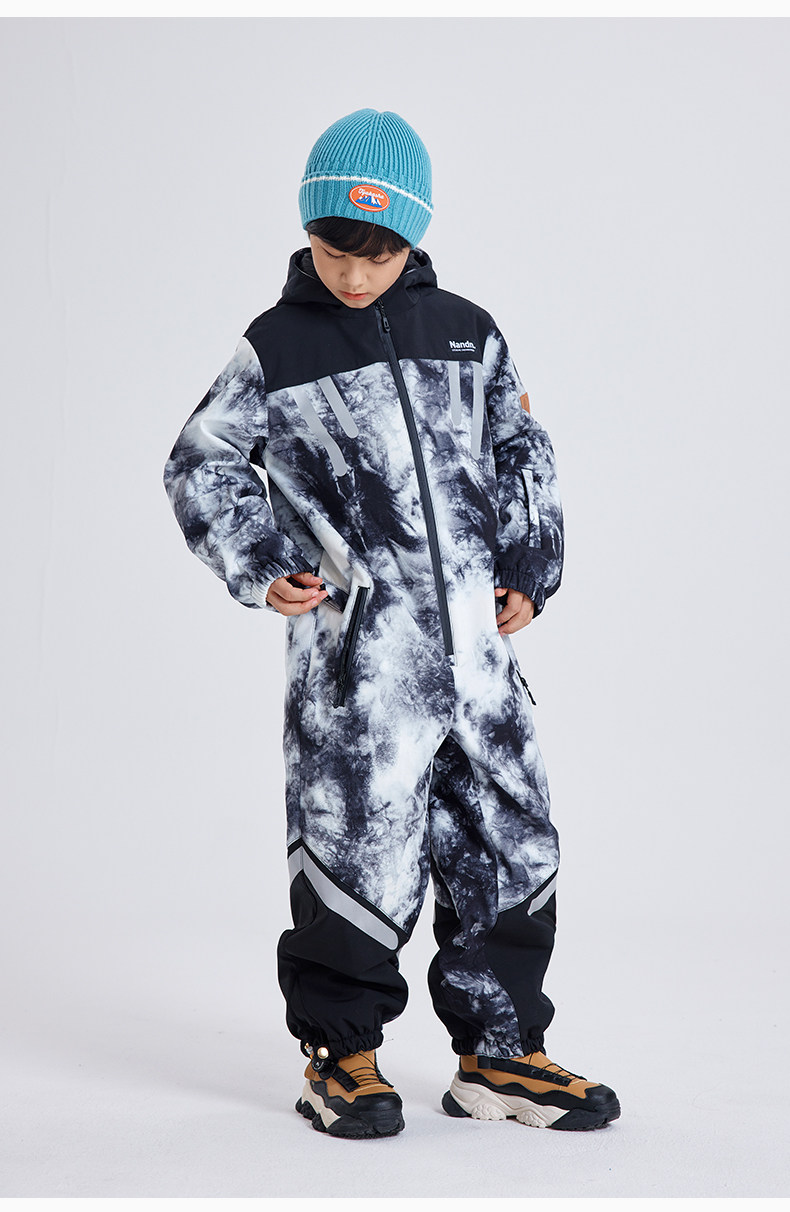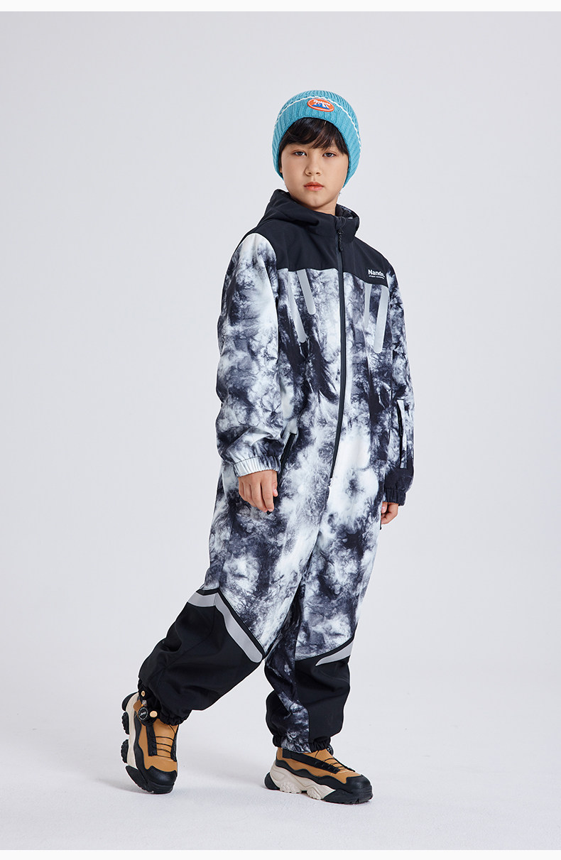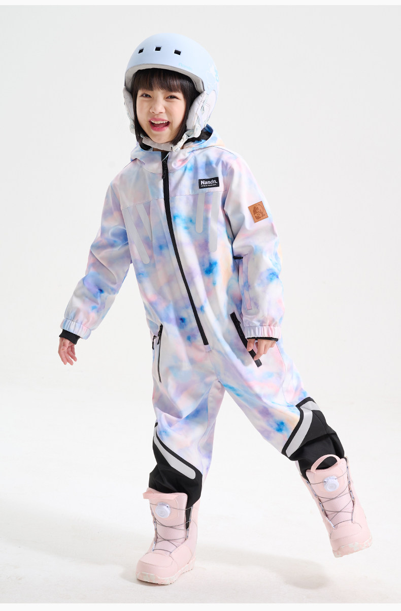 Nandn Children's Ski Suit for Boys, Professional Girls' Ski Equipment Set, Full Set of Snow Suit, One-Piece Style