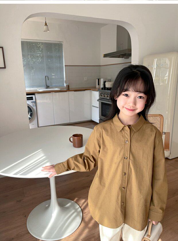 Qiji spring, summer and autumn new children's clothing medium and large children's pure cotton long-sleeved shirts for boys and girls cotton shirts Japanese tops