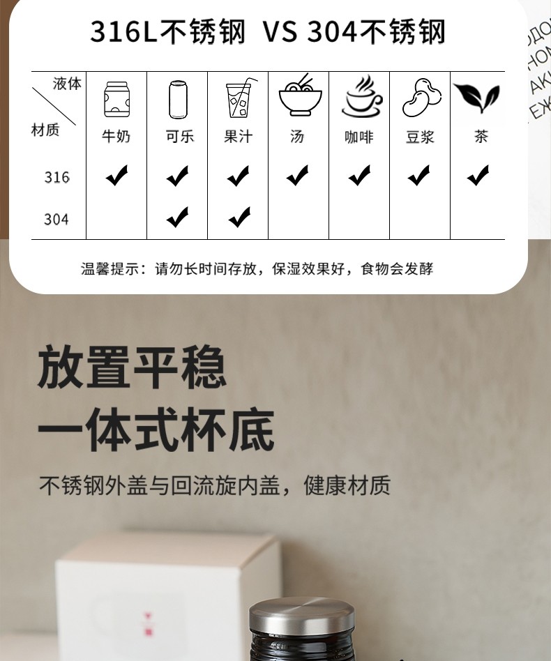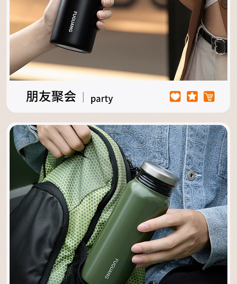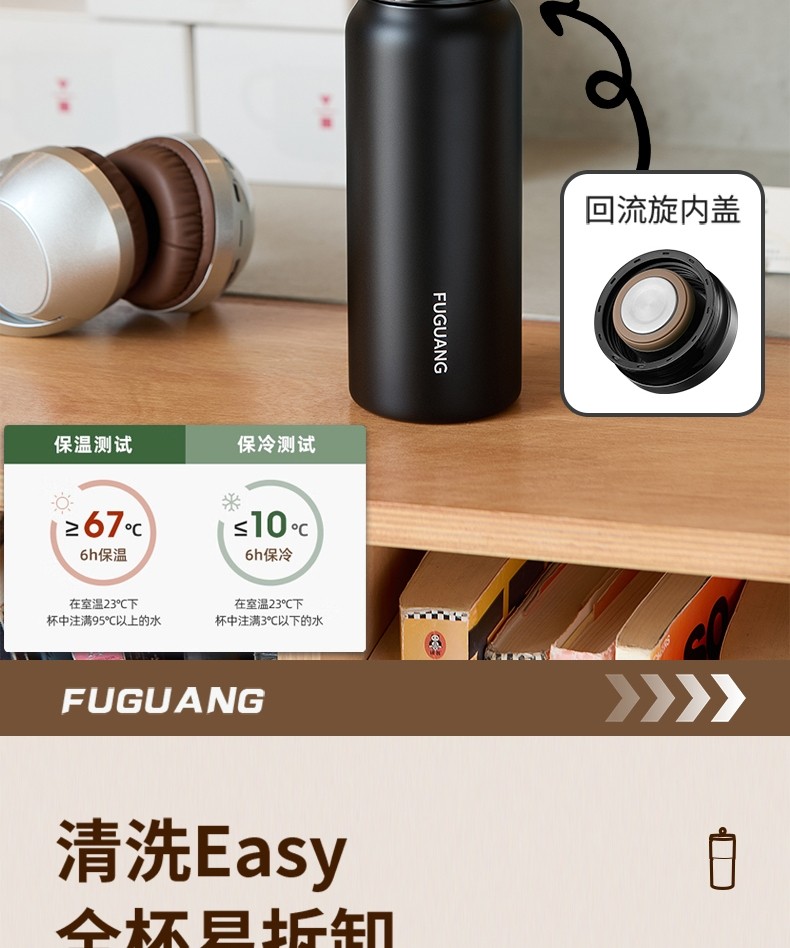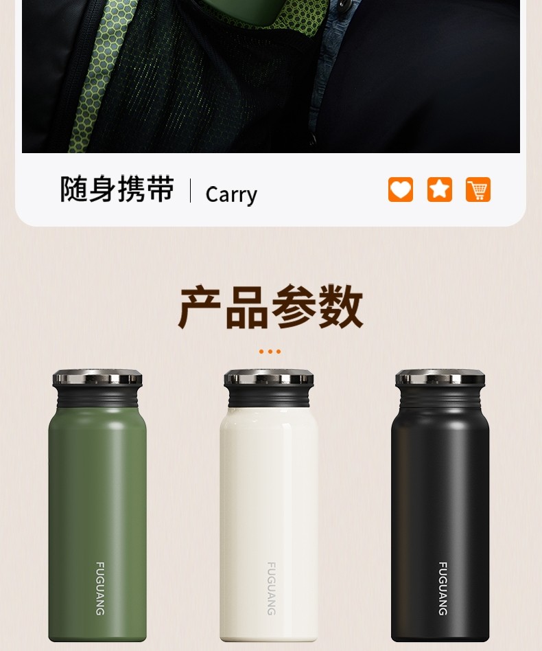 Fuguang Thermos Cup for Boys and Girls, High-Looking Portable 316 Stainless Steel Compact Portable Water Cup, Student Simple Cup