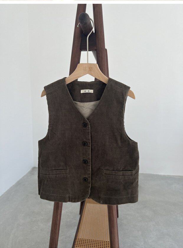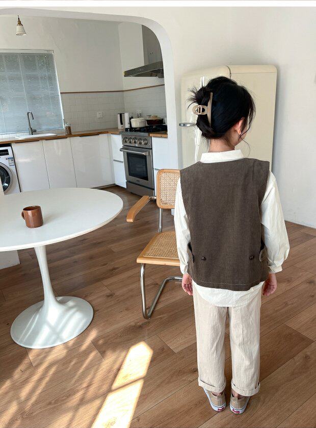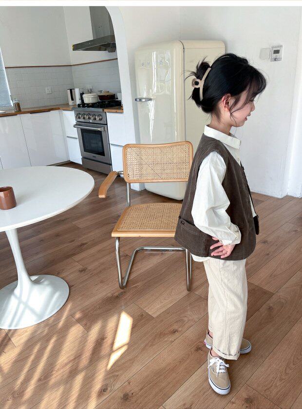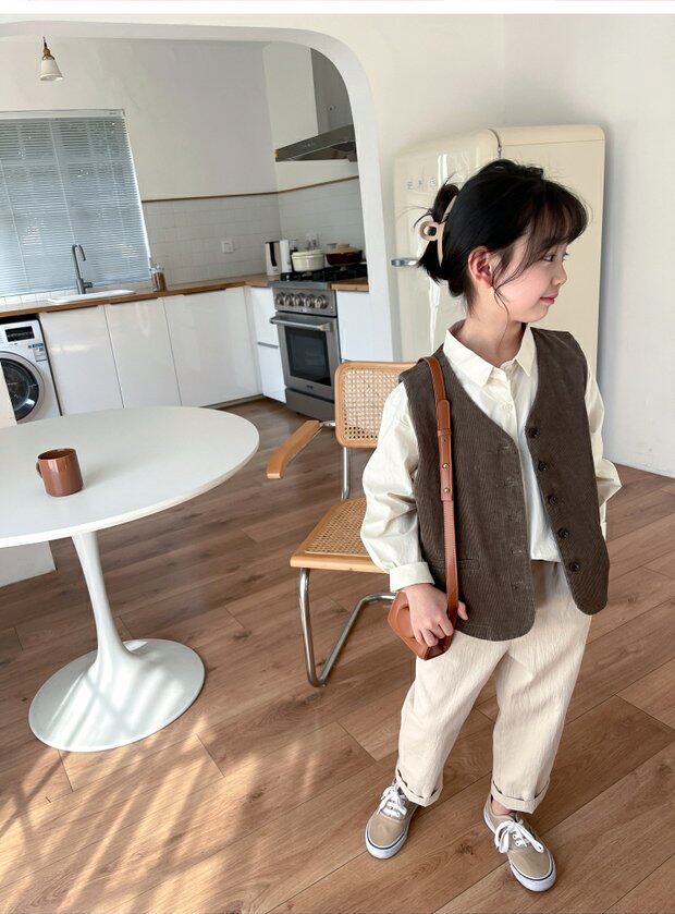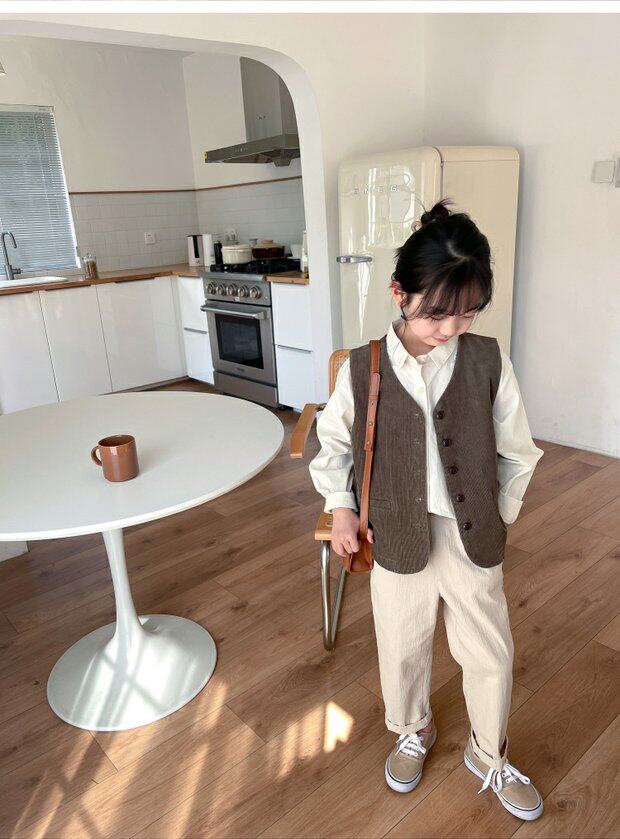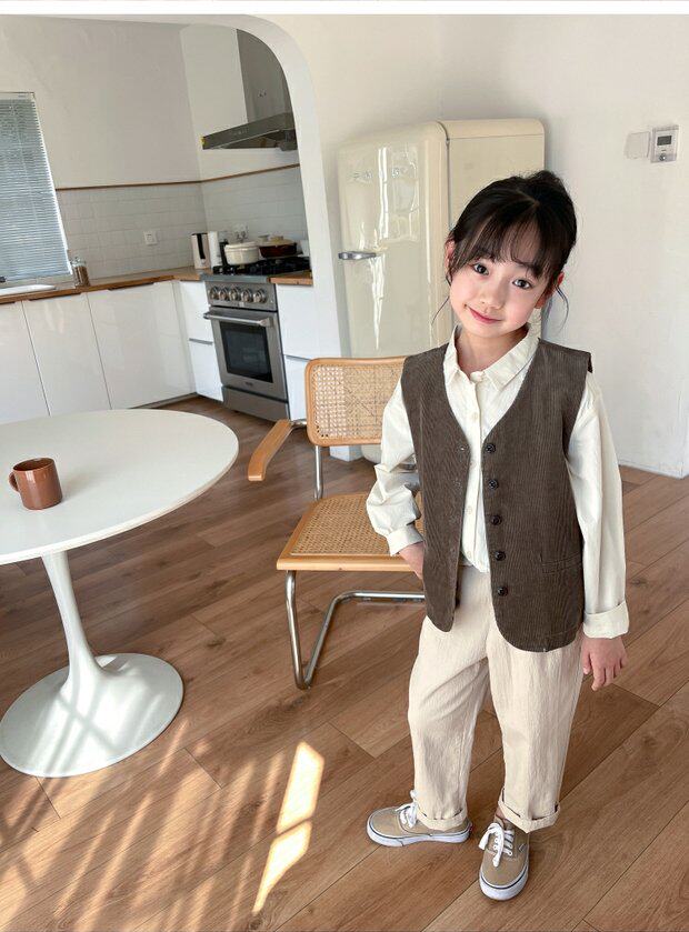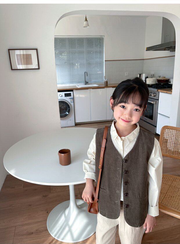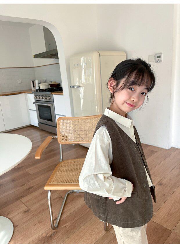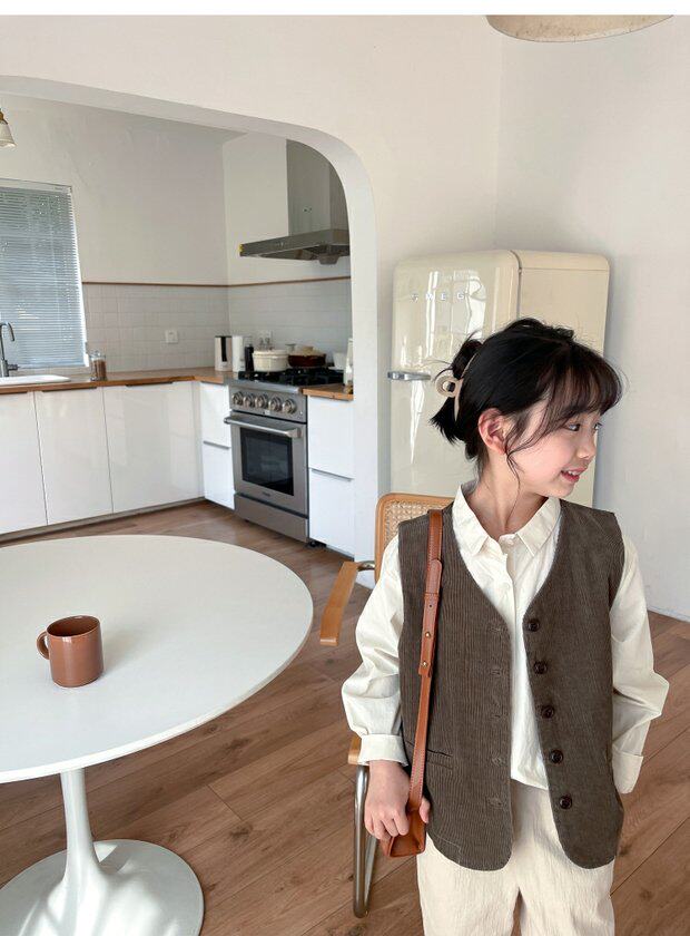 Qiji spring and autumn new children's clothing medium and large children's pure cotton casual threaded vests for boys and girls Japanese corduroy tops
